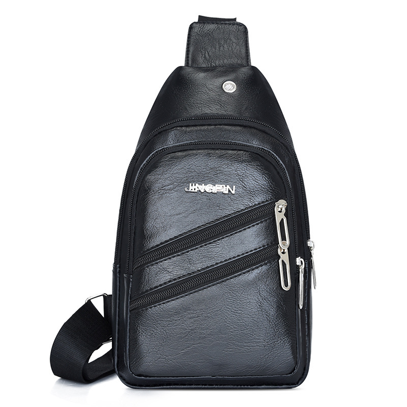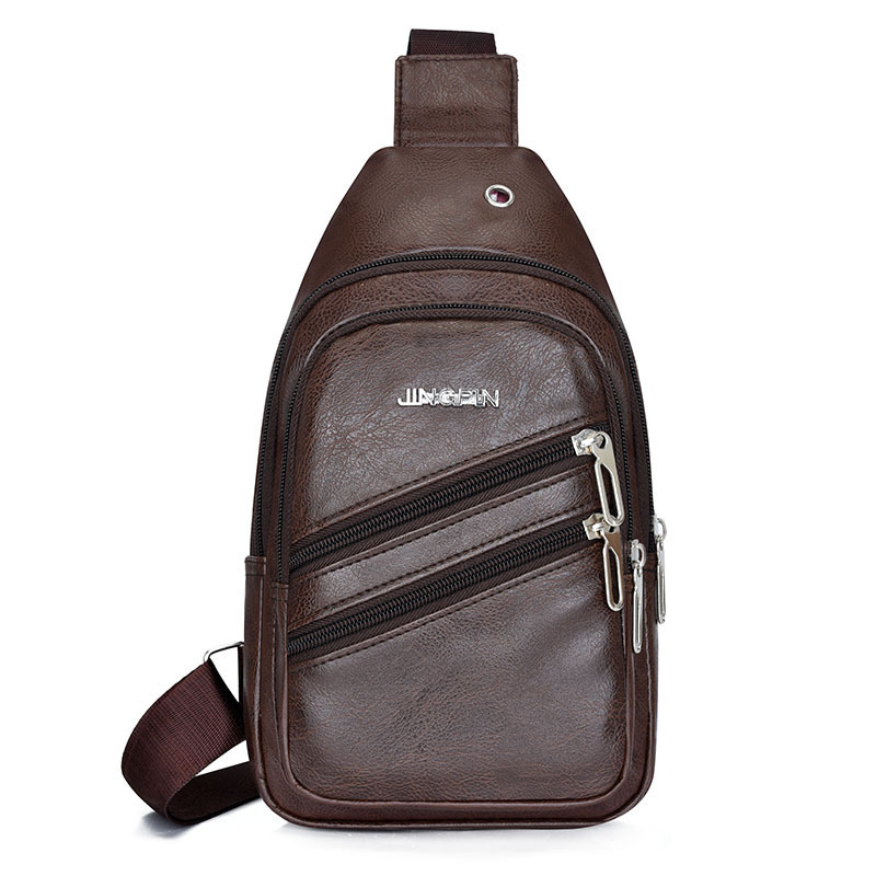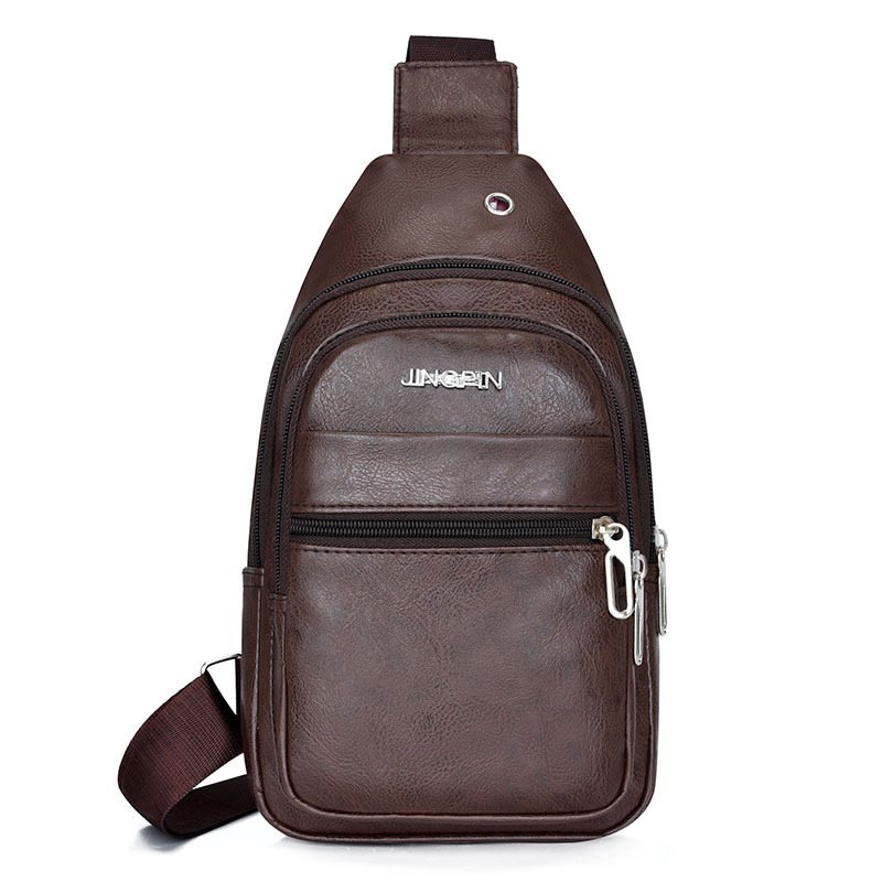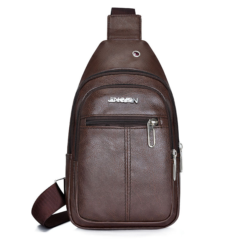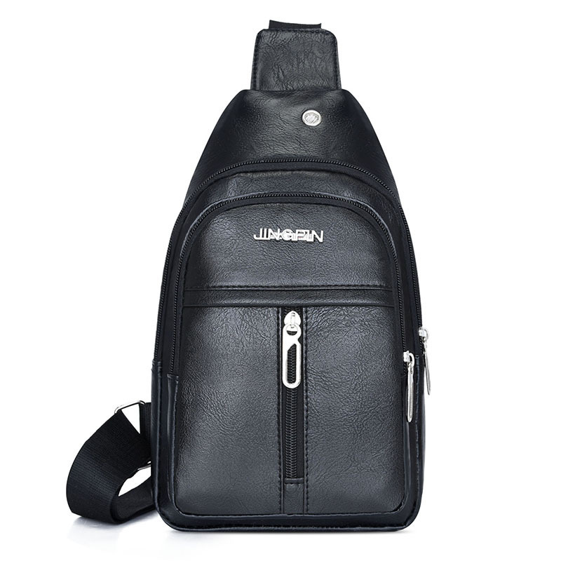 复古皮纹软PU斜挎包 简约百搭男士胸包 新款时尚便宜小包