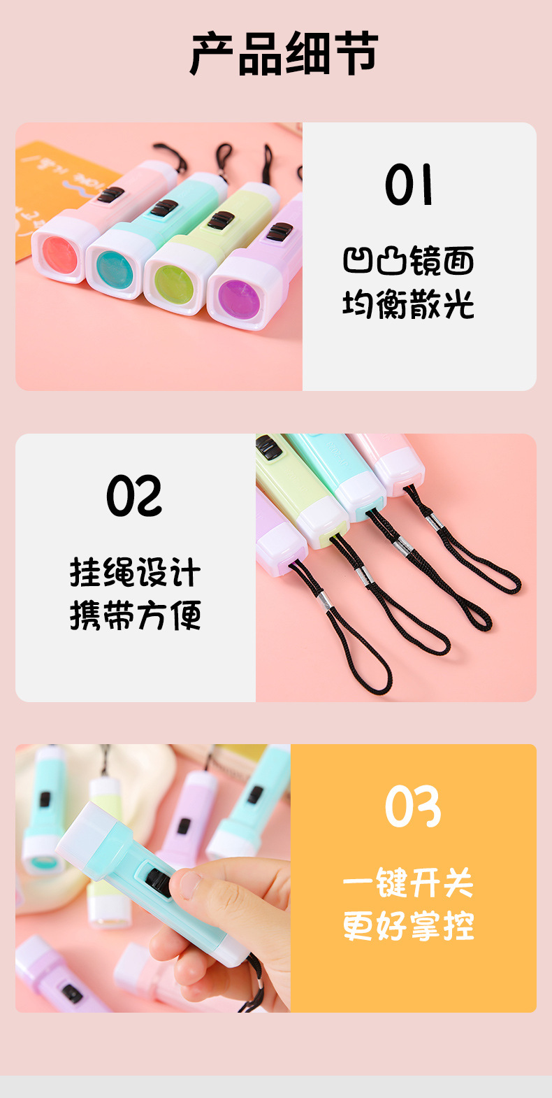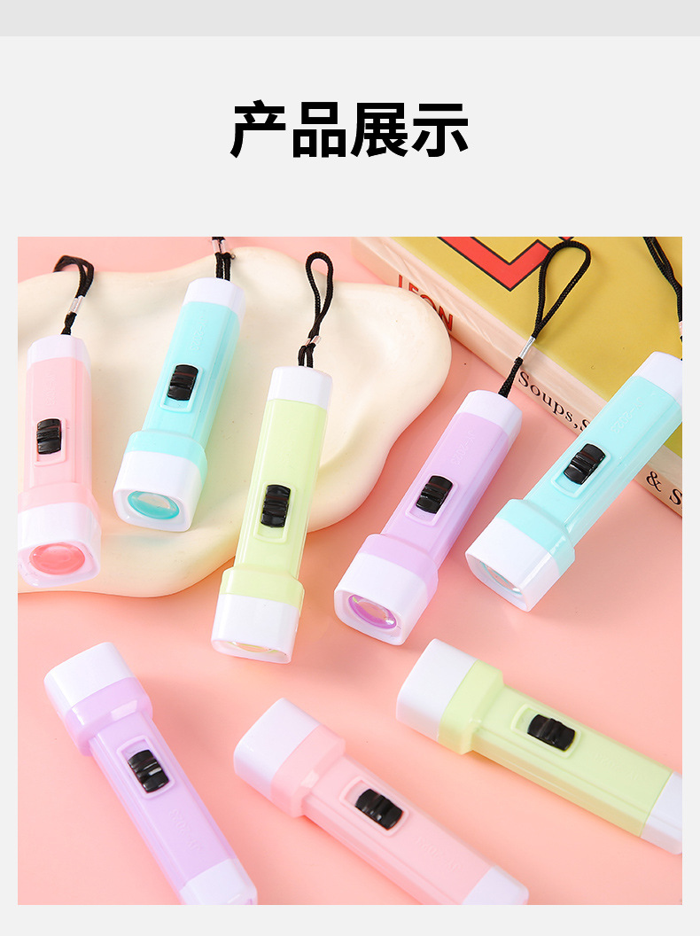 马卡龙色小手电筒强光电筒照明灯LED地摊实用玩具礼品幼儿园奖品