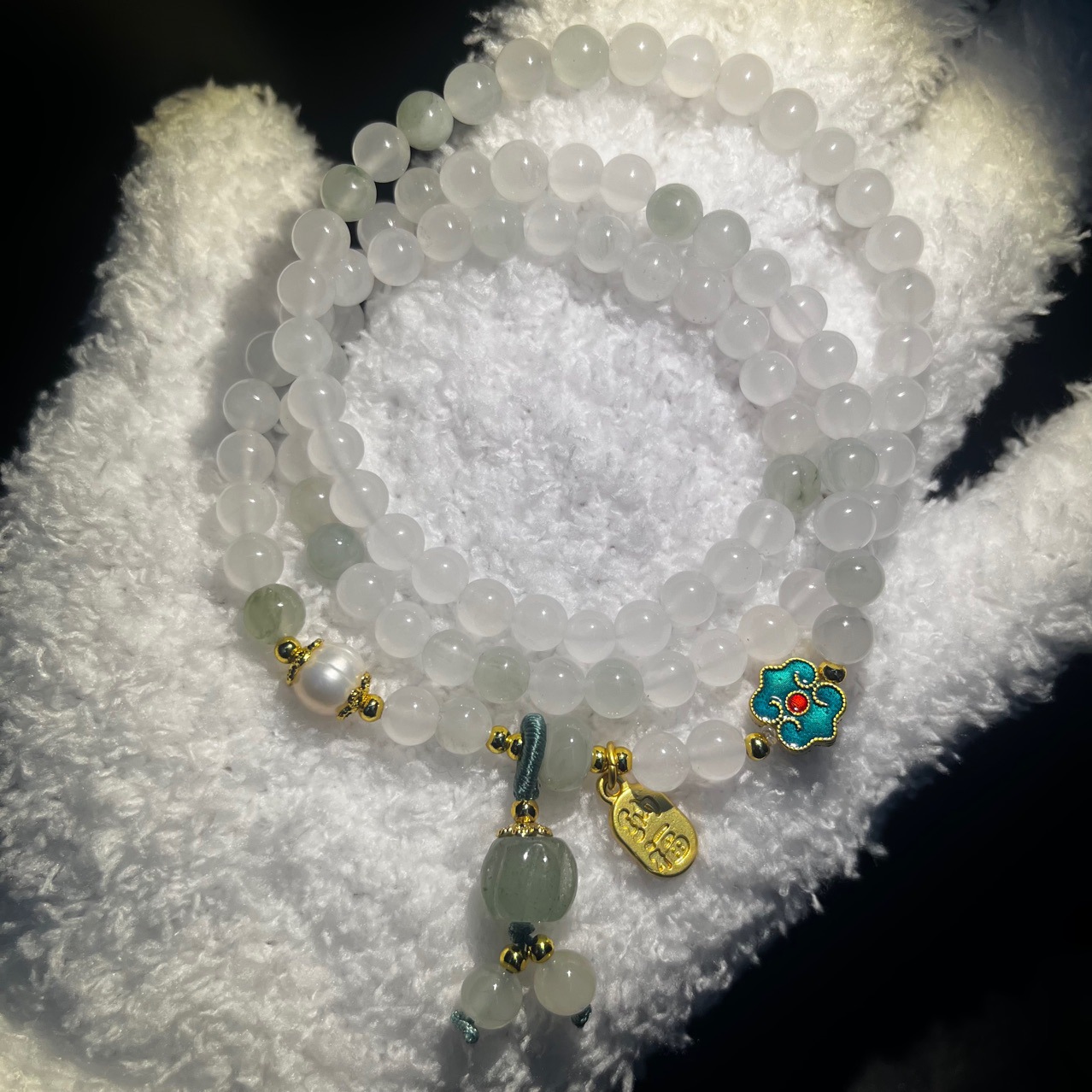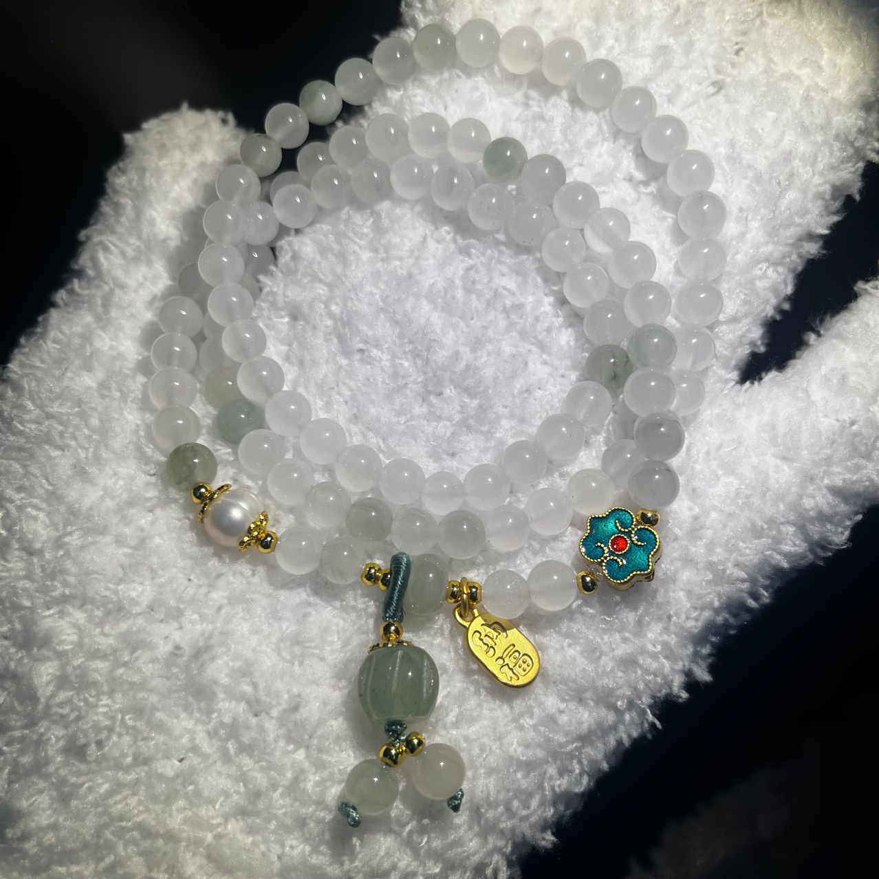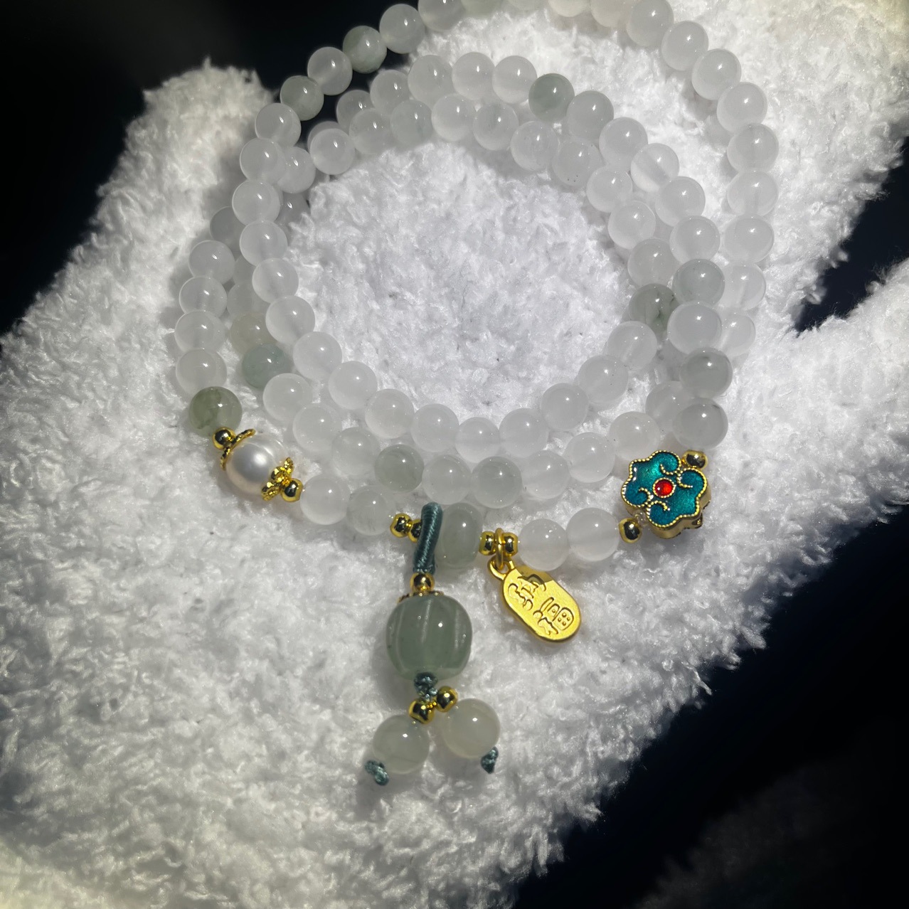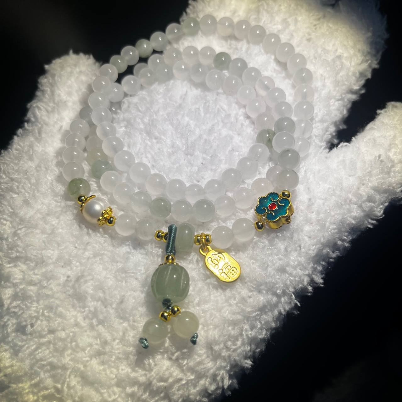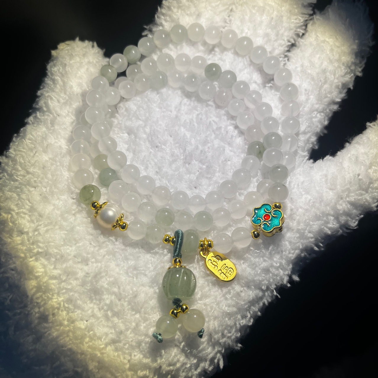 天山翠多圈手串国风手链南瓜手链单圈简约款天山翠108颗批发玉石
