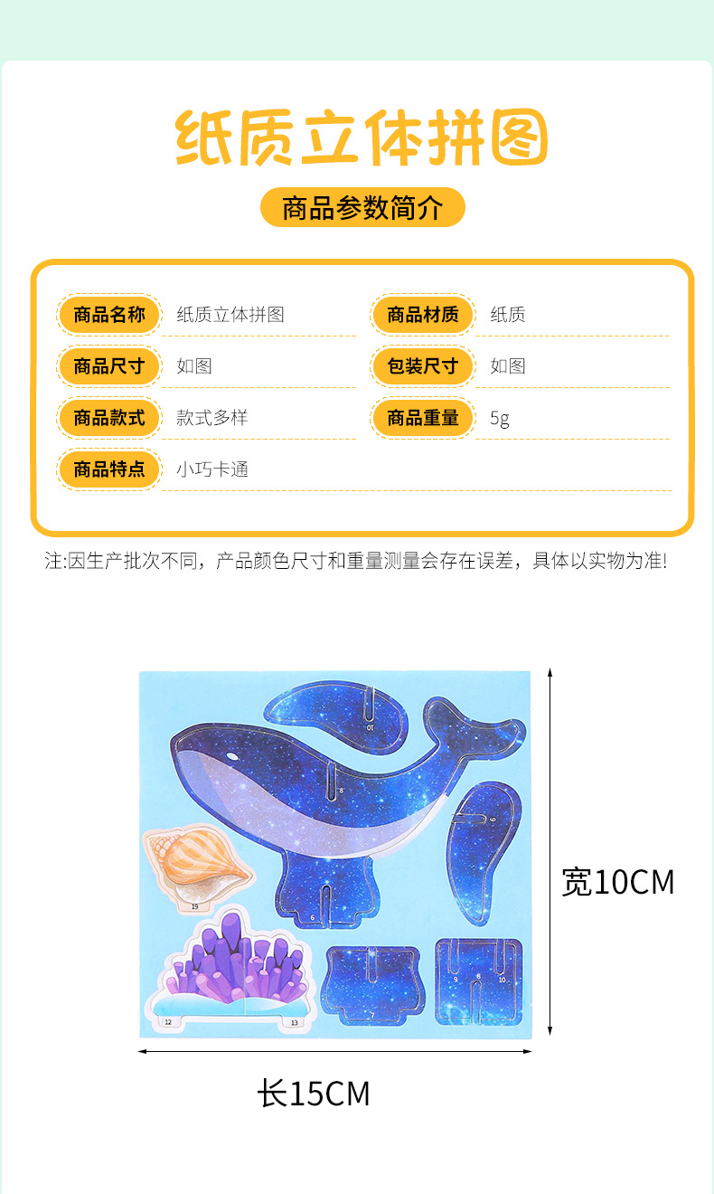 3D立体拼图卡 学生DIY手工拼装图儿童早教拼接玩具地摊小号拼接图