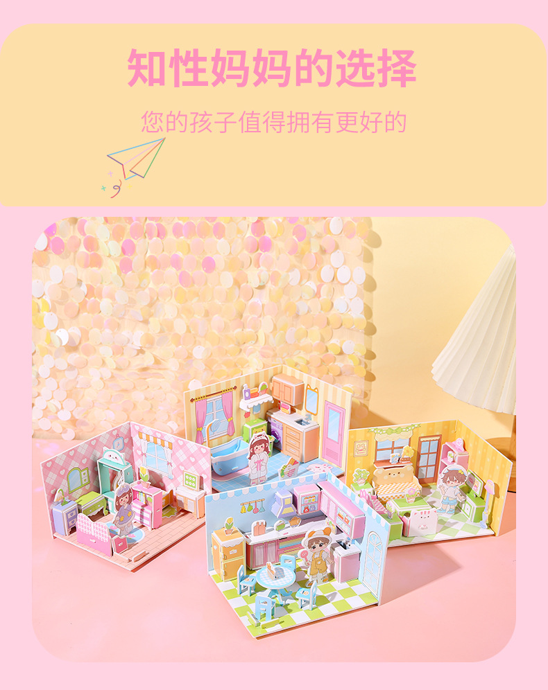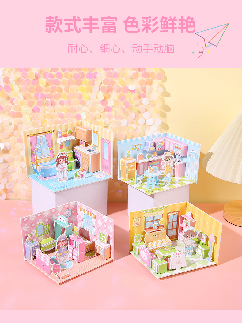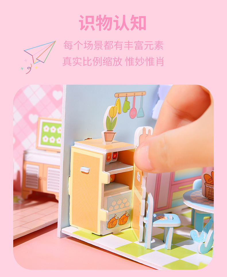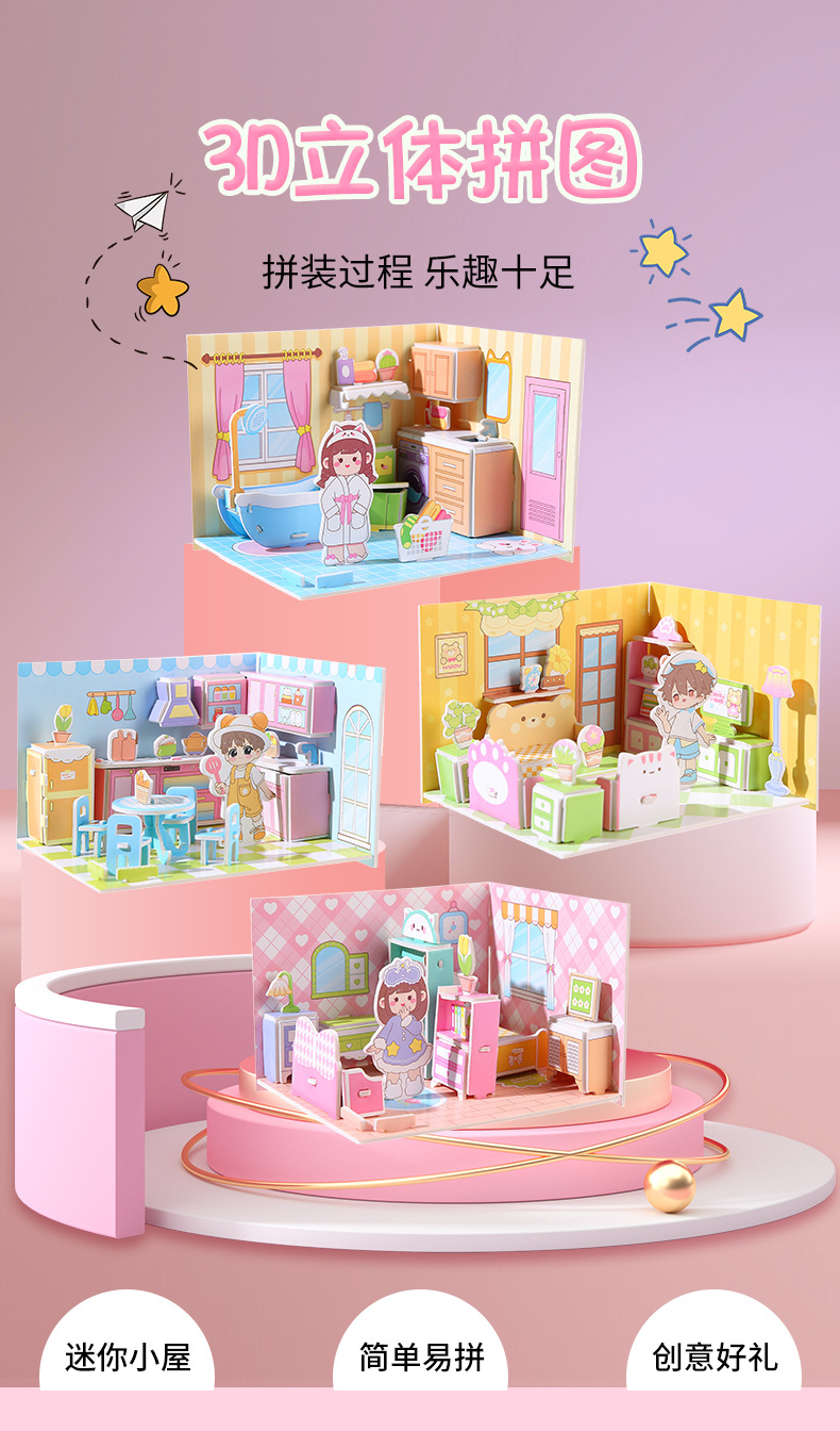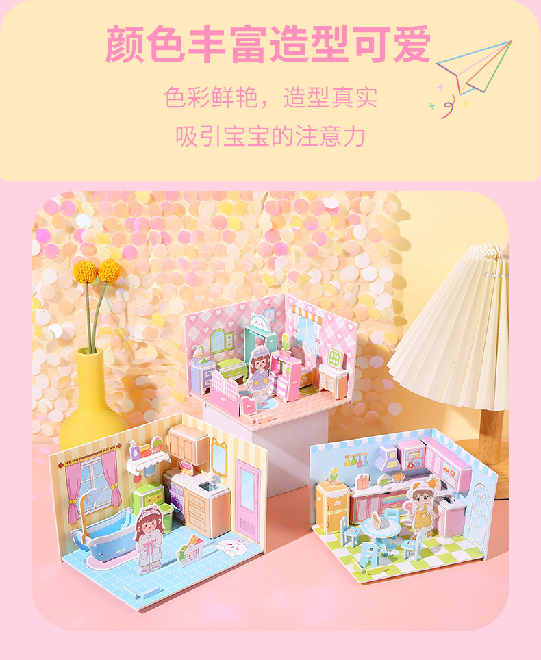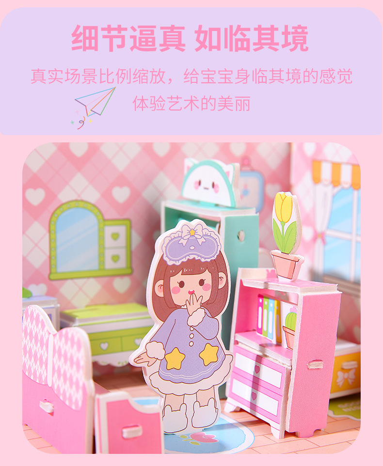 儿童3d立体拼图安静书玩具房子公主积木拼图男女孩手工DIY小屋子