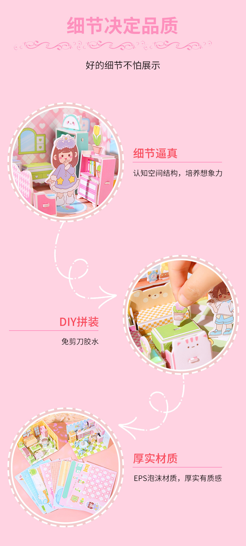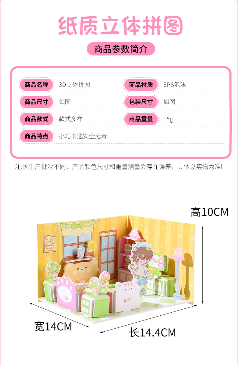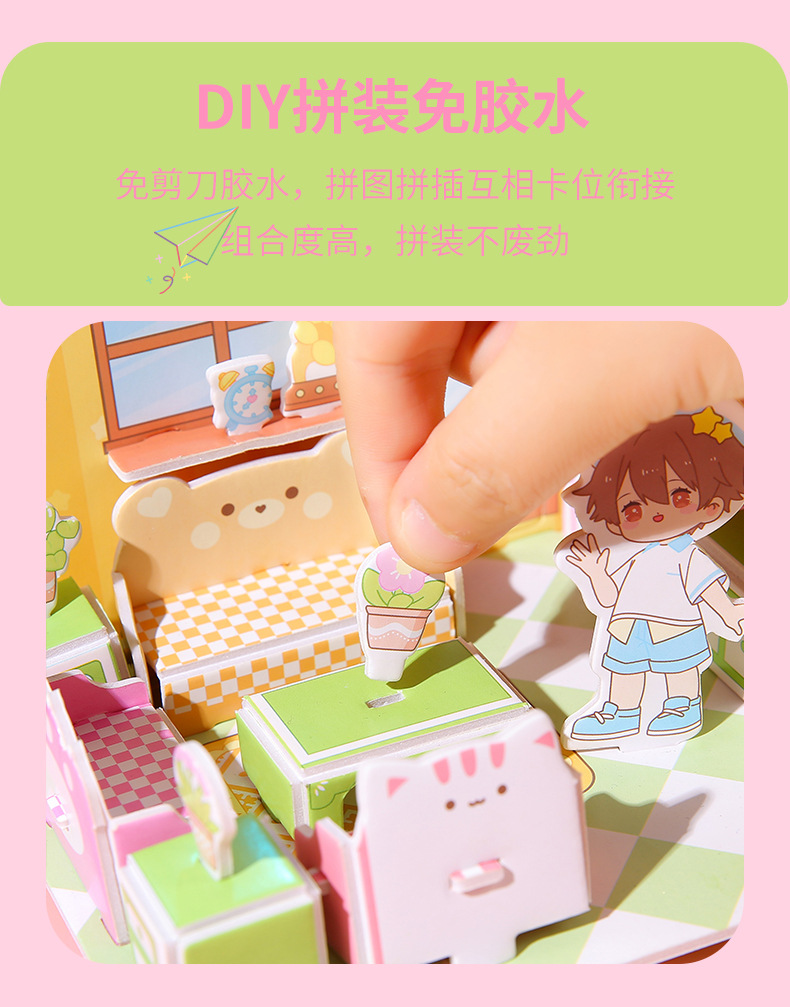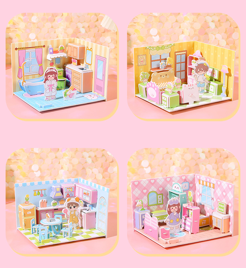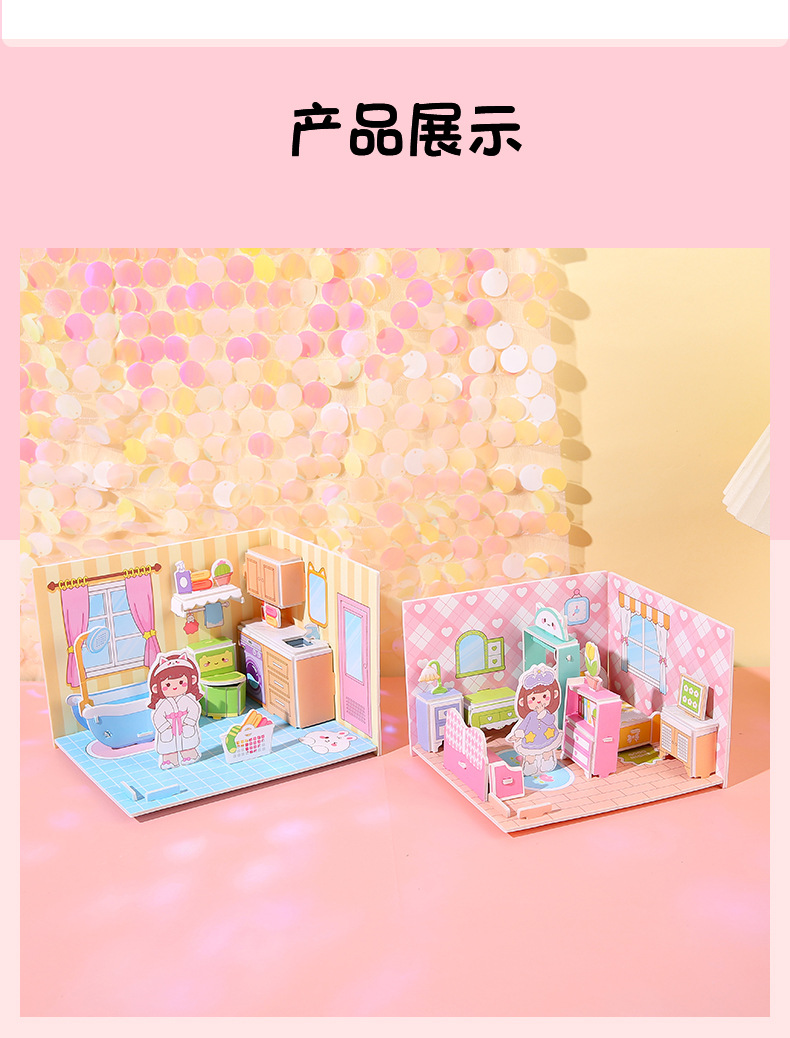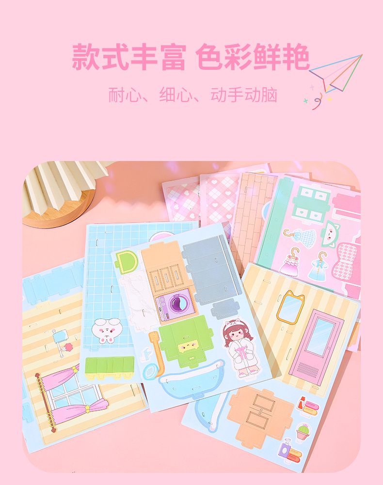 儿童3d立体拼图安静书玩具房子公主积木拼图男女孩手工DIY小屋子