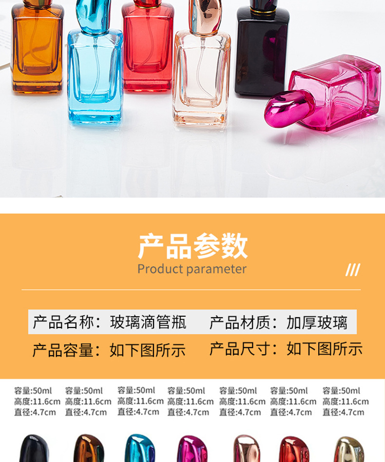 彩色玻璃香水瓶透明方瓶30ml50ml化妆品细雾喷瓶供应香水喷雾瓶