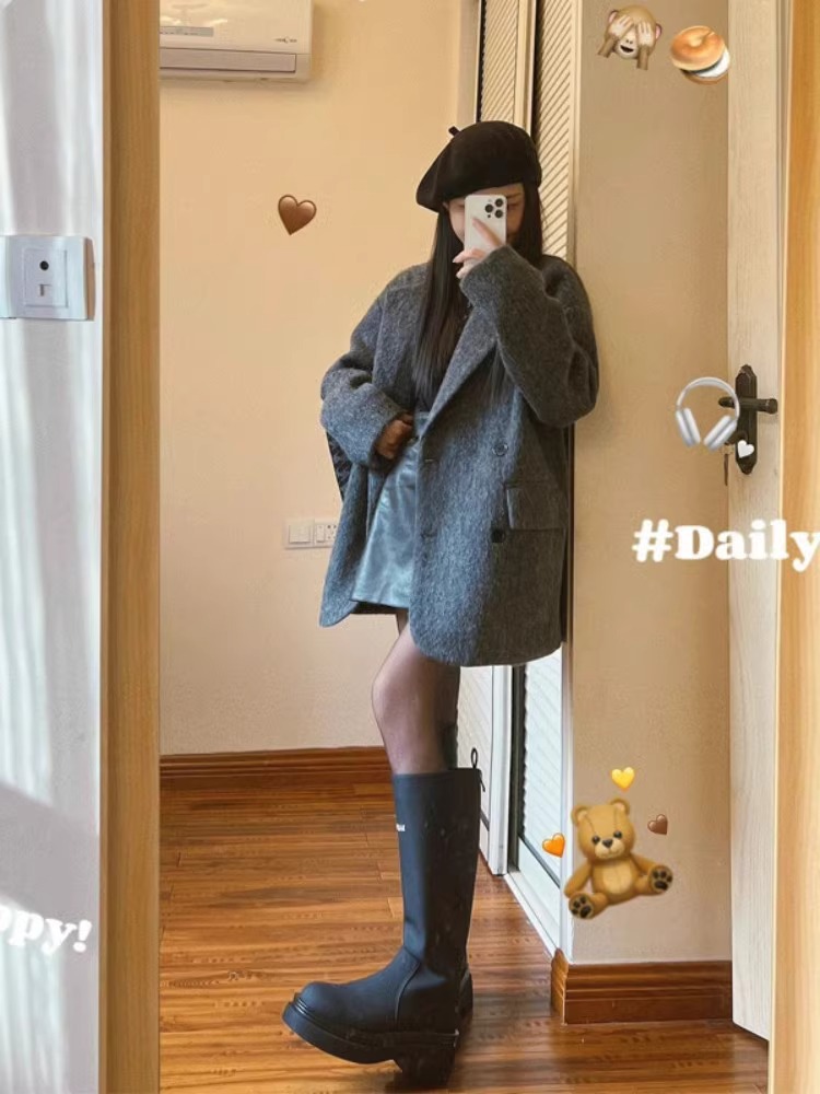 短款呢子大衣女秋冬感毛呢外套2024新款小个子加厚西装赫本风