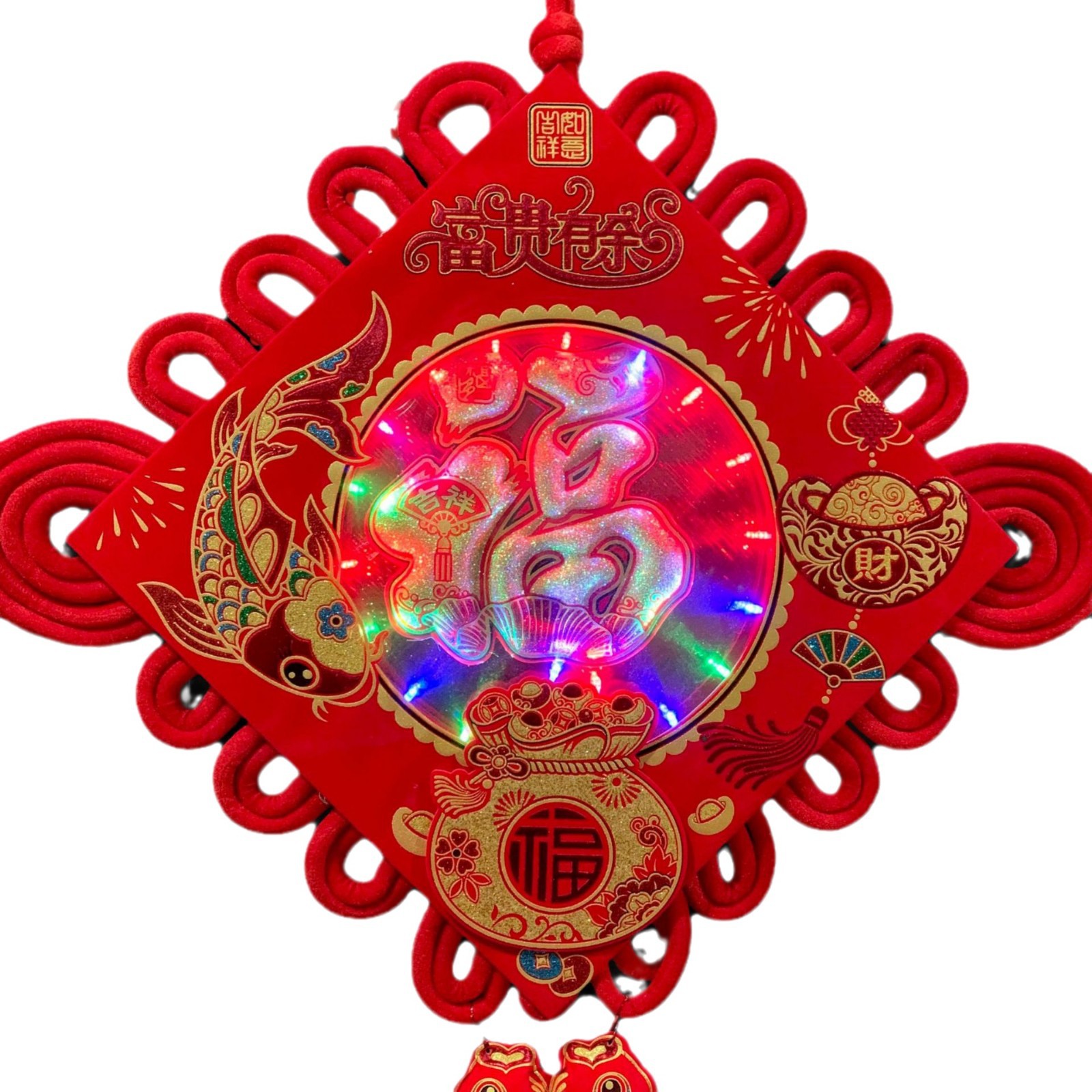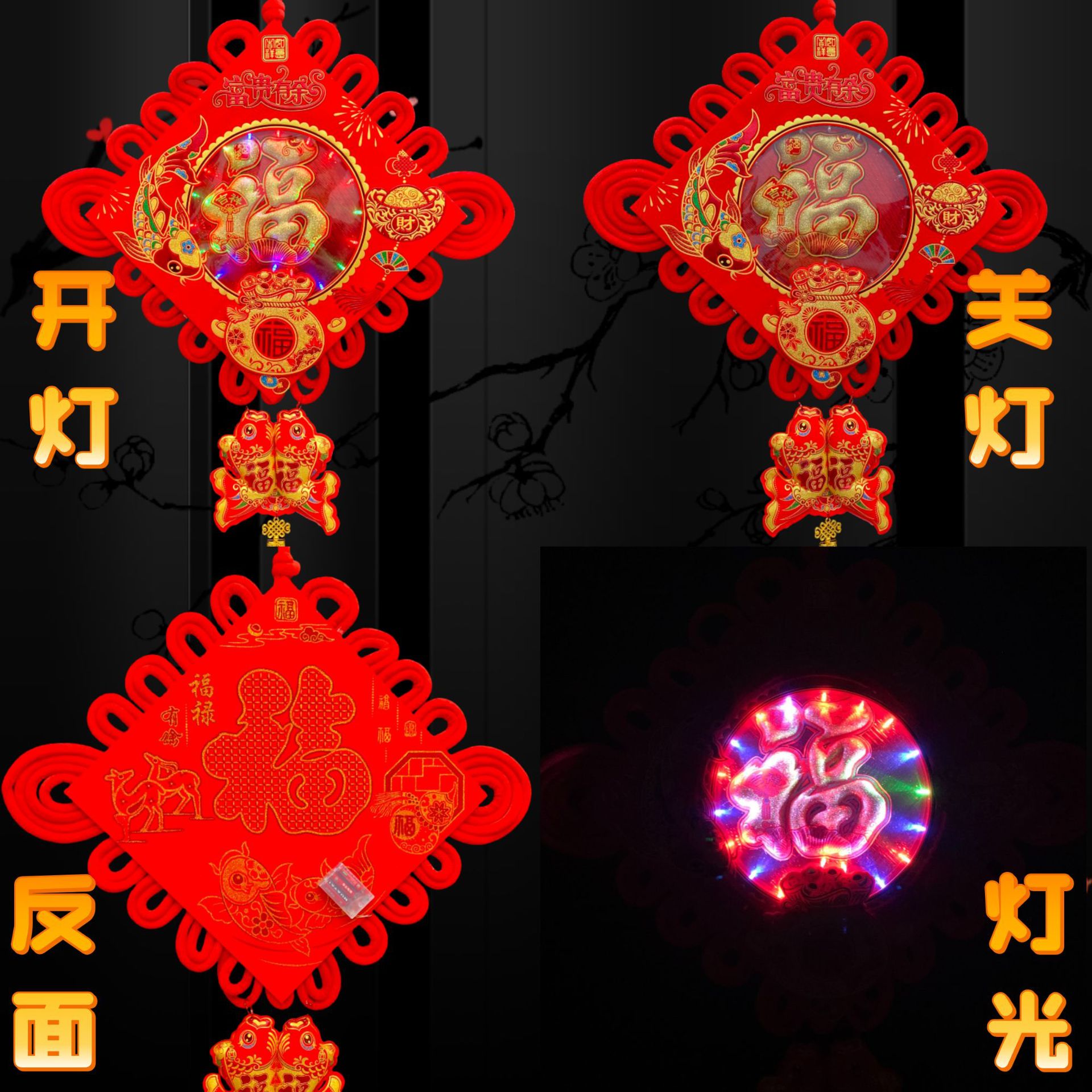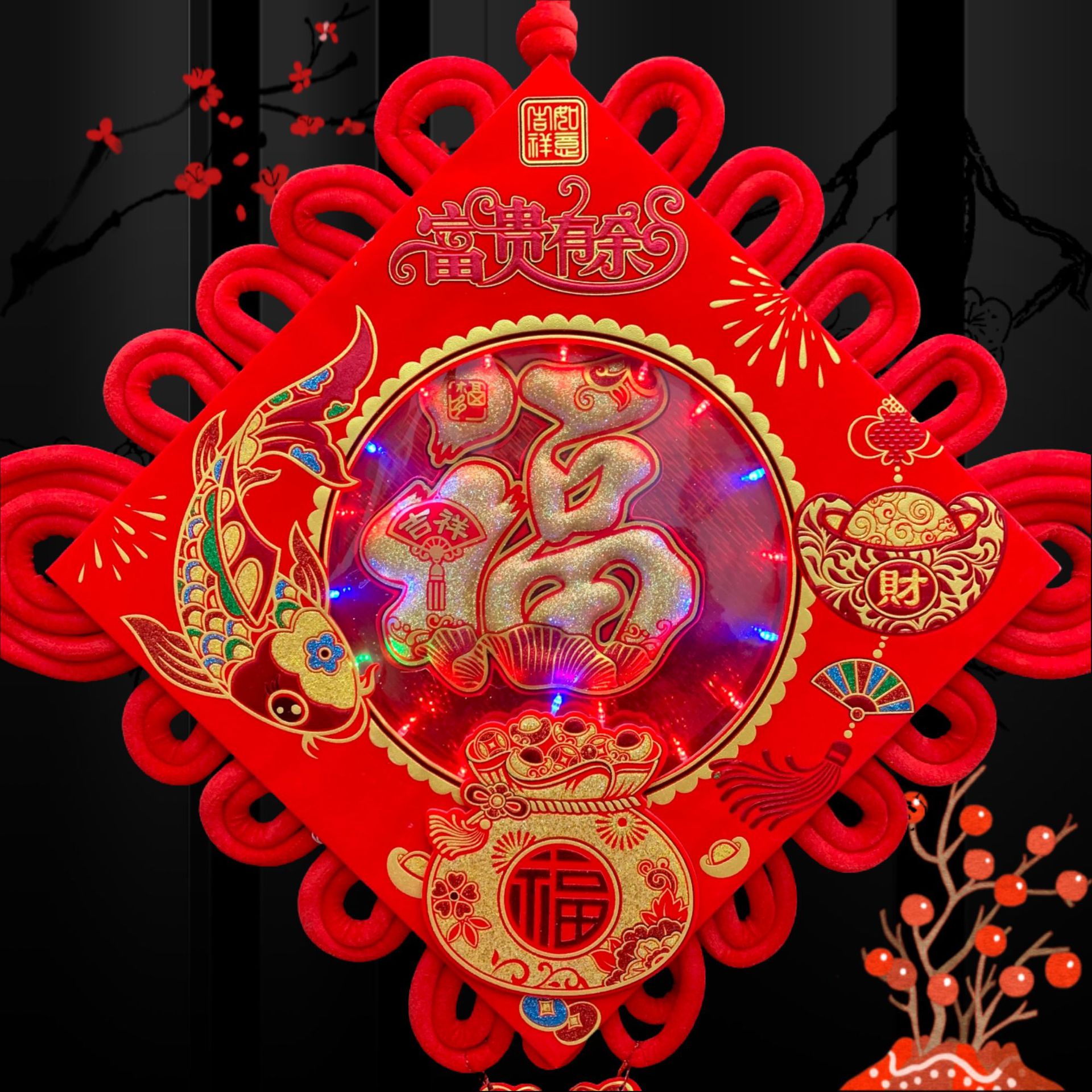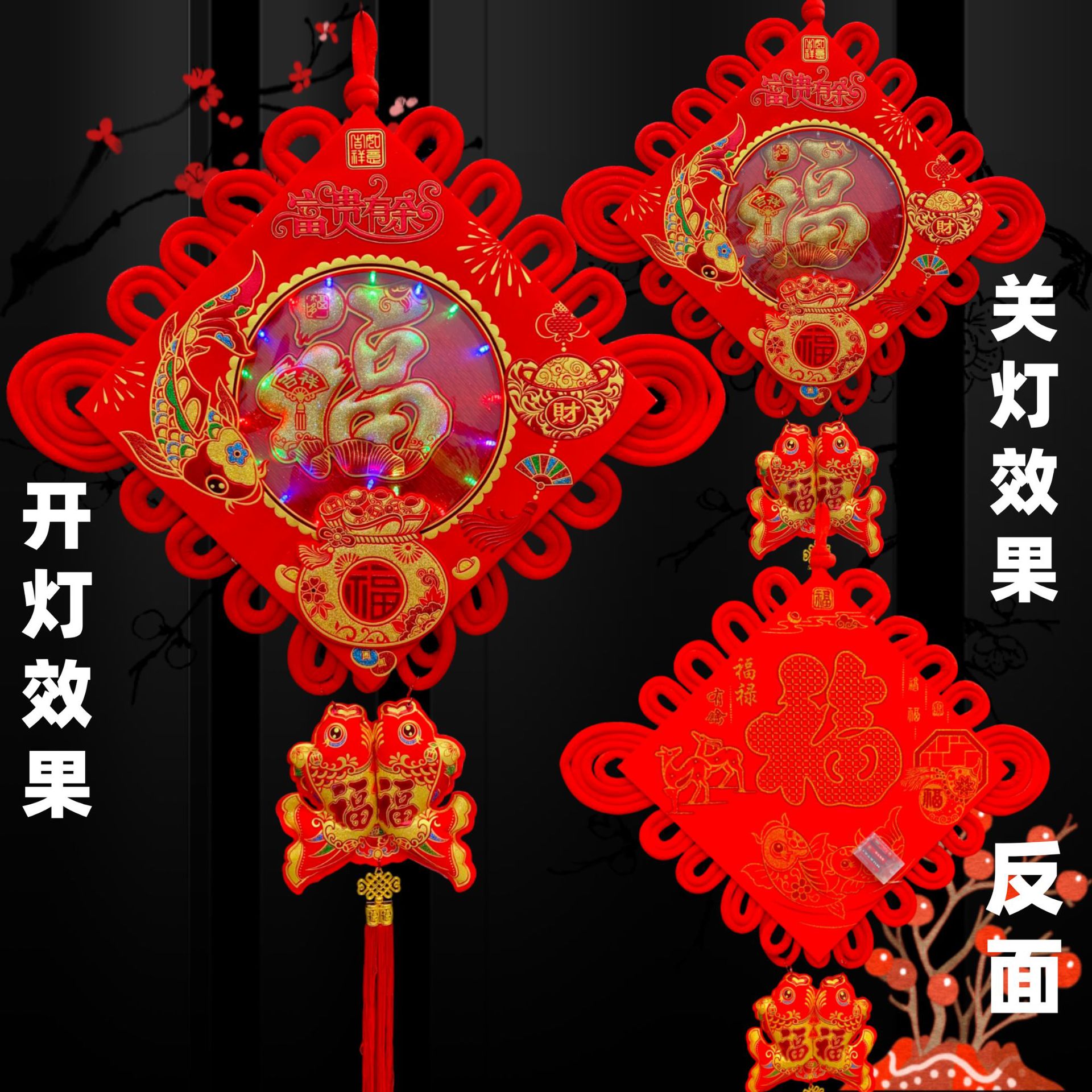 新款七彩灯中国结新年客厅喜庆挂件乔迁装饰双鱼双线福字中国结