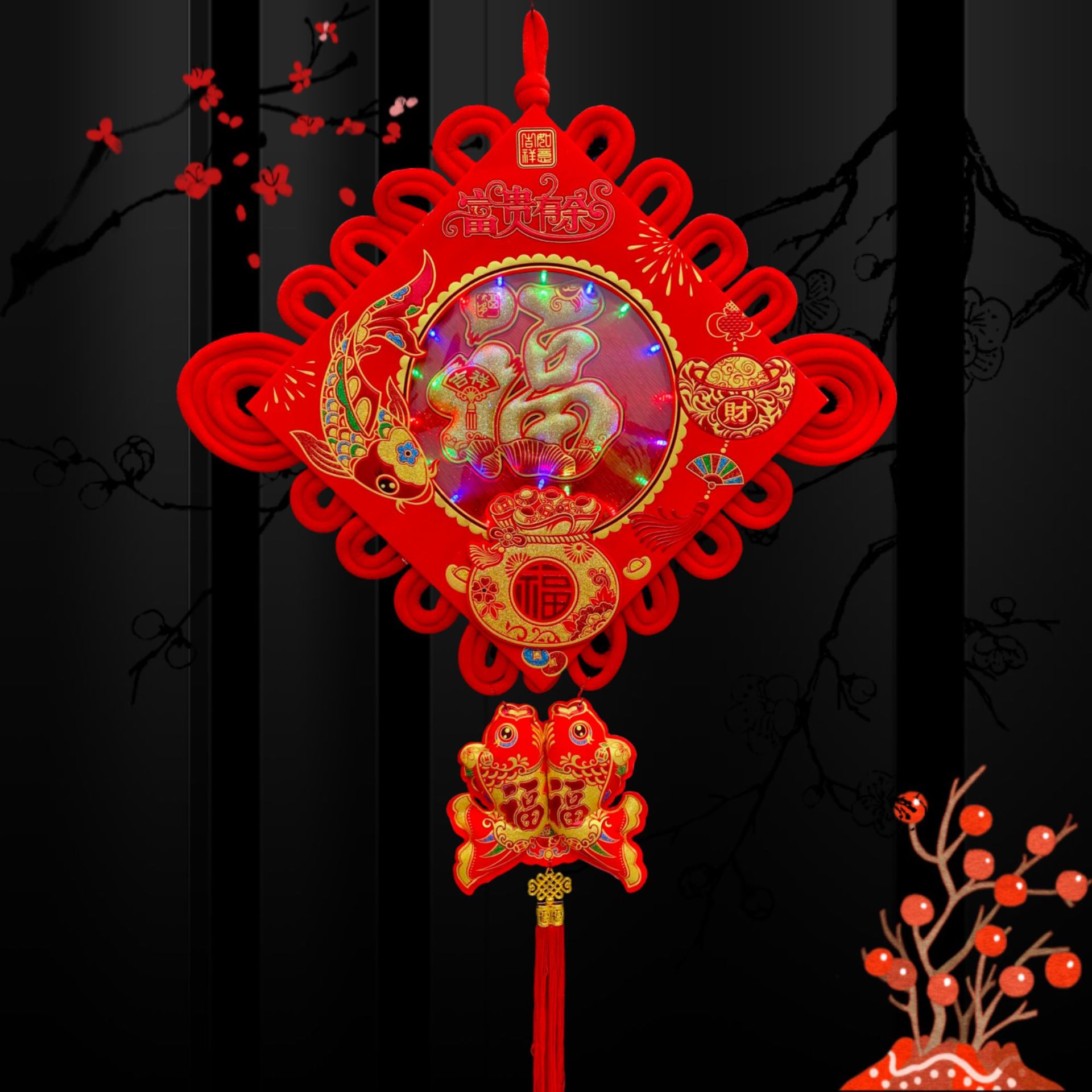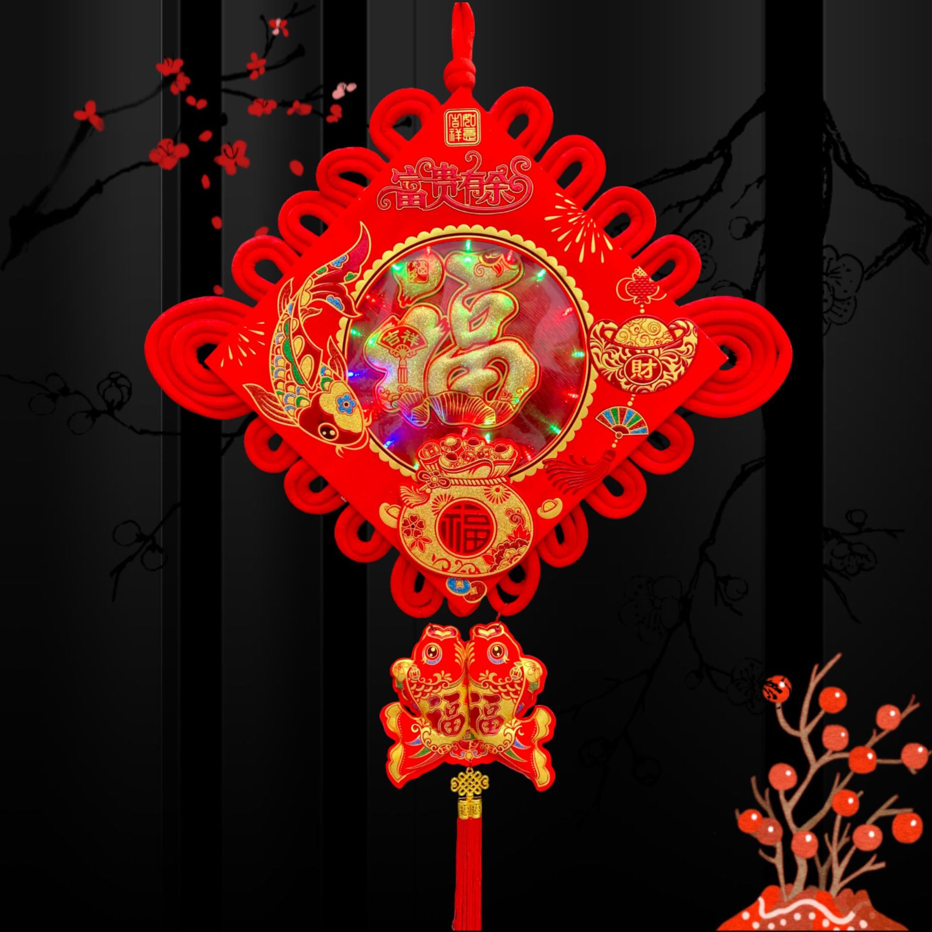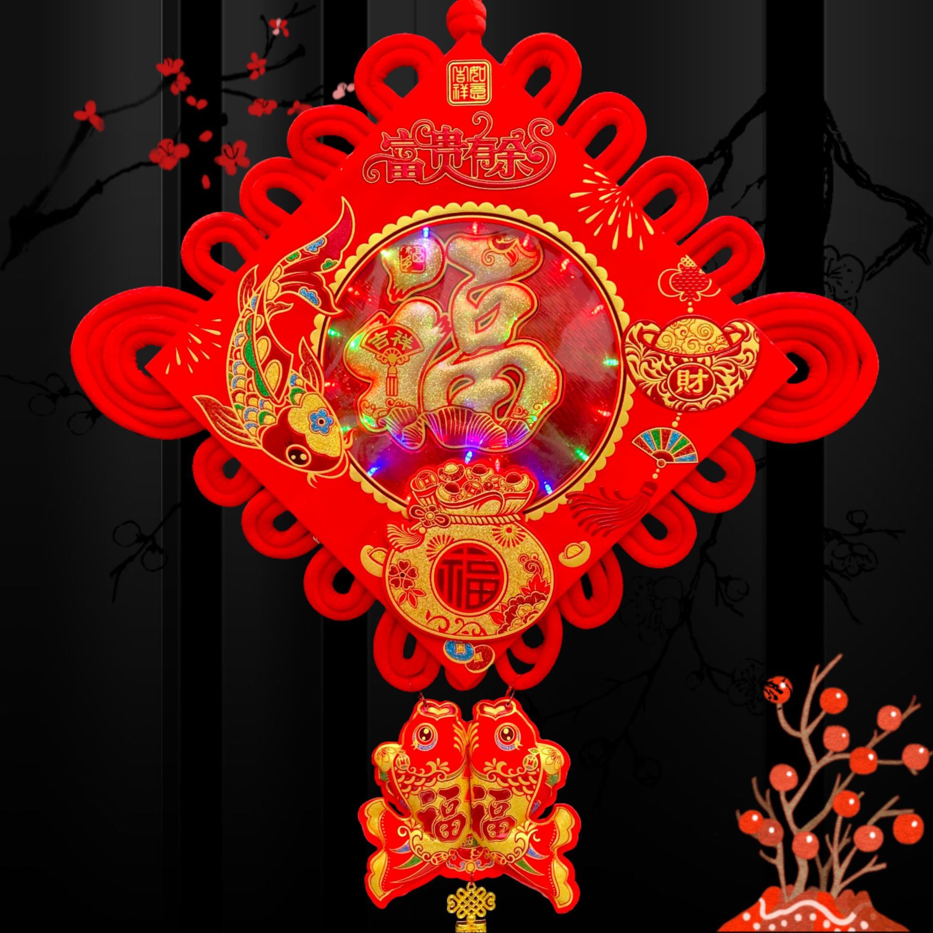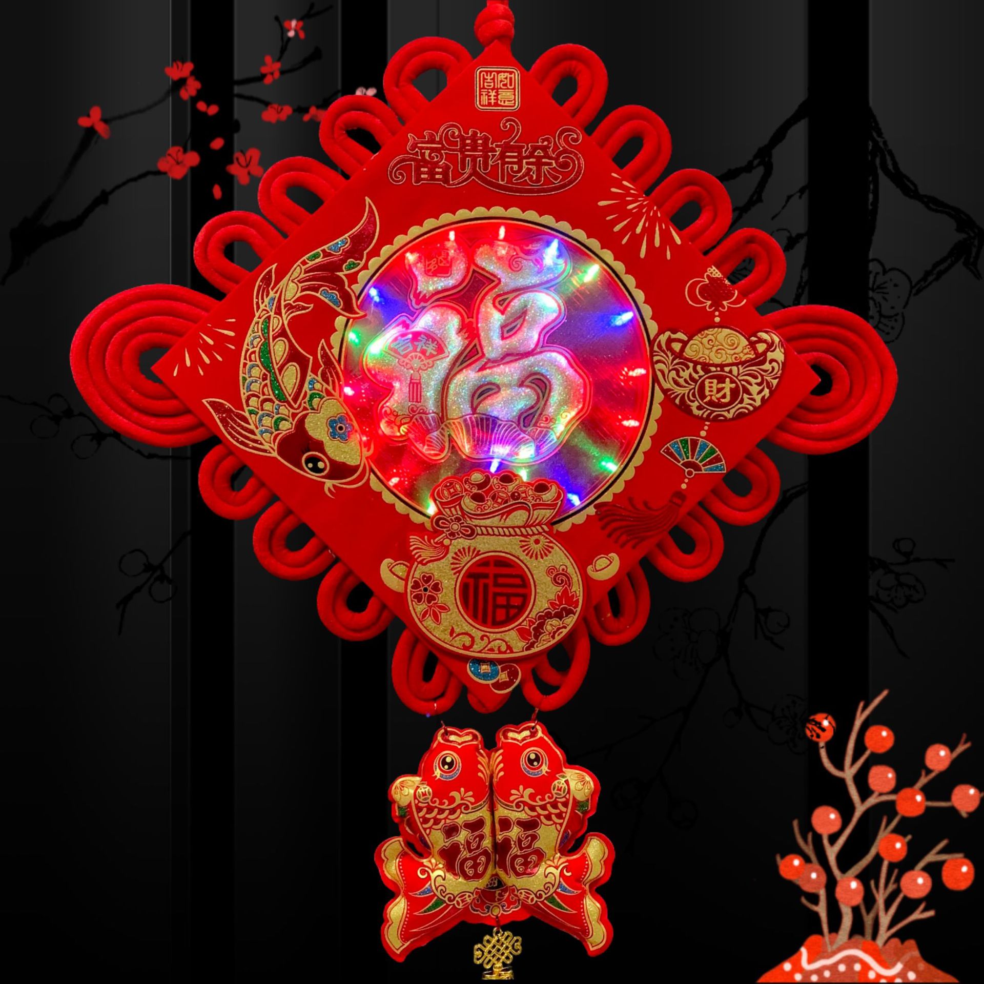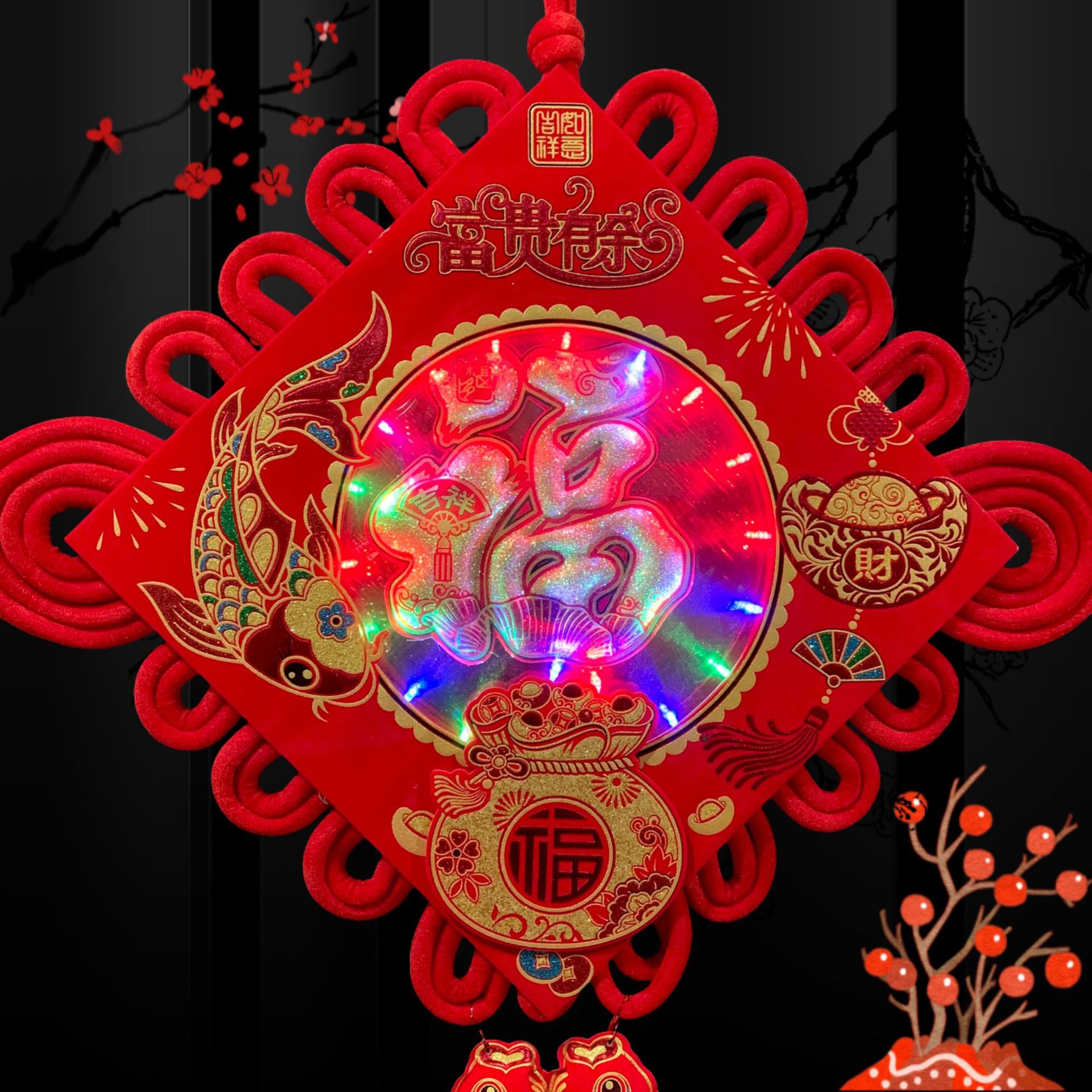 新款七彩灯中国结新年客厅喜庆挂件乔迁装饰双鱼双线福字中国结