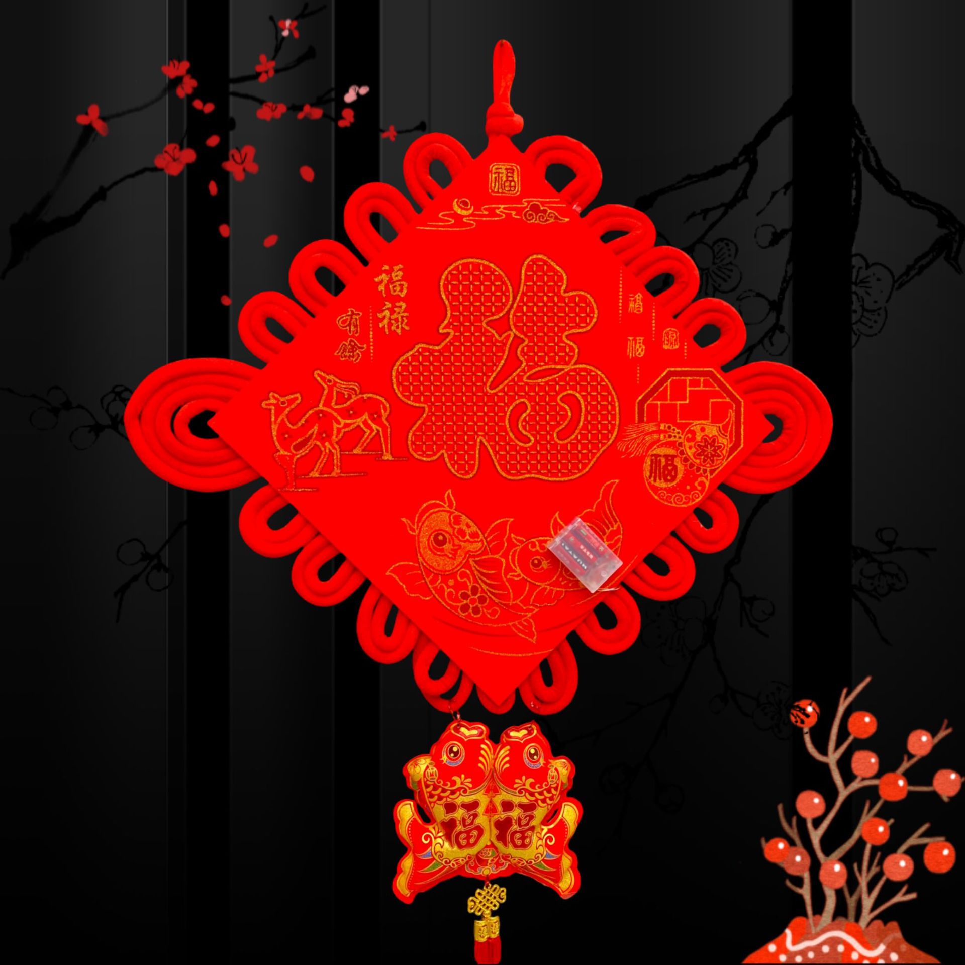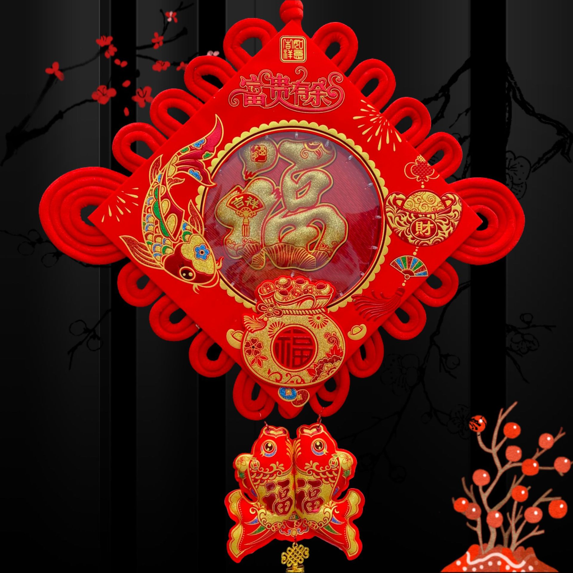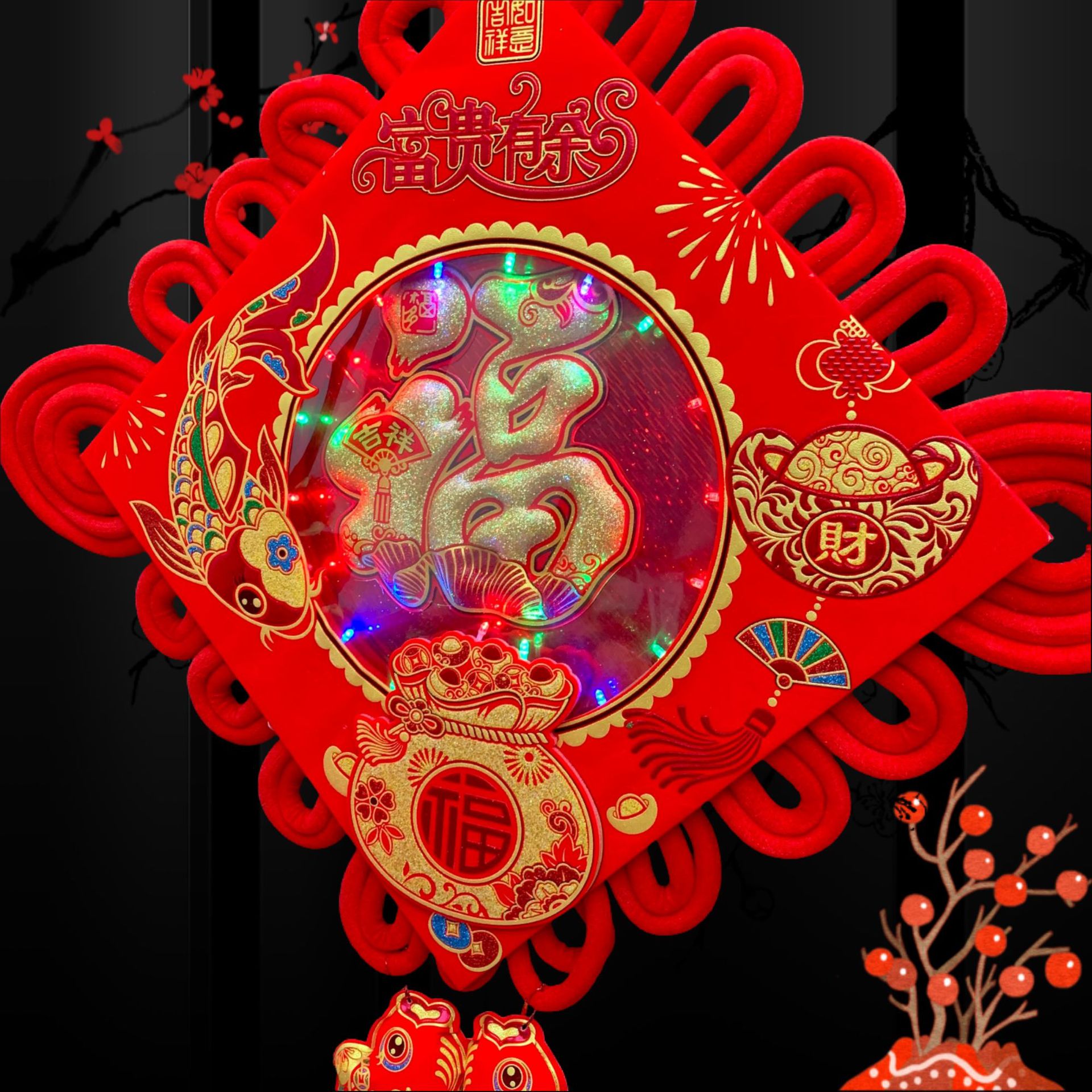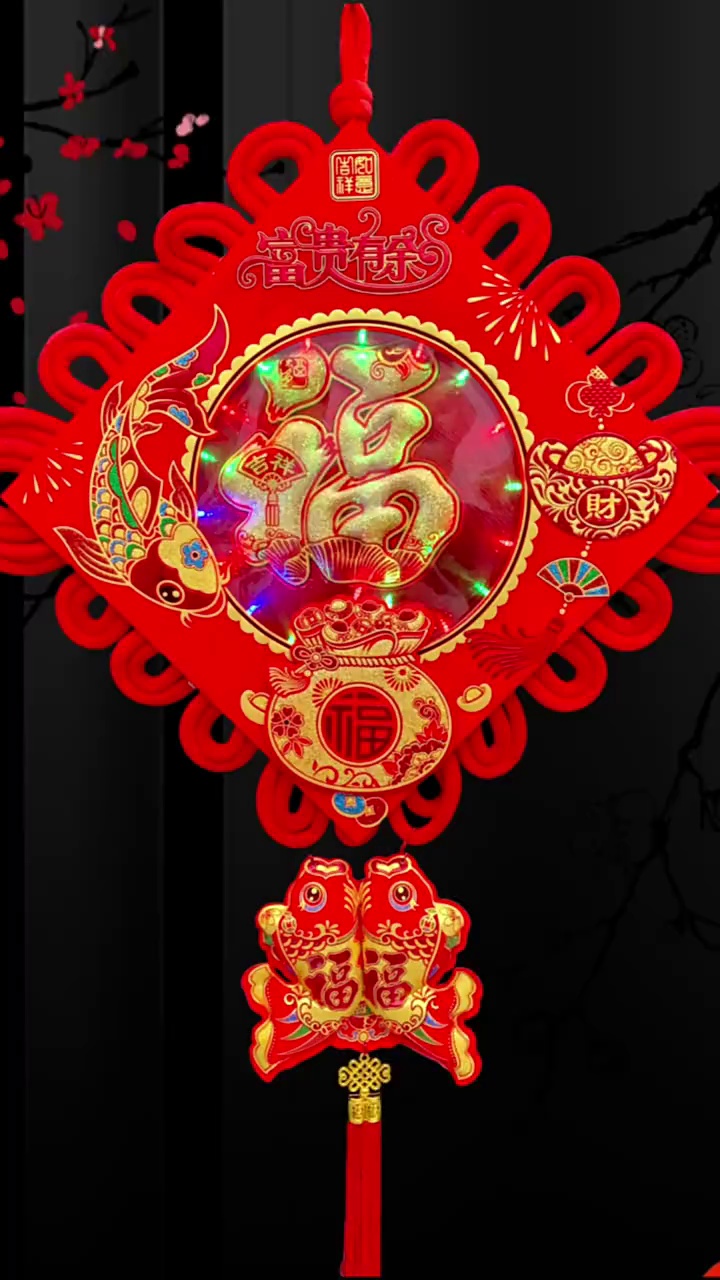 新款七彩灯中国结新年客厅喜庆挂件乔迁装饰双鱼双线福字中国结