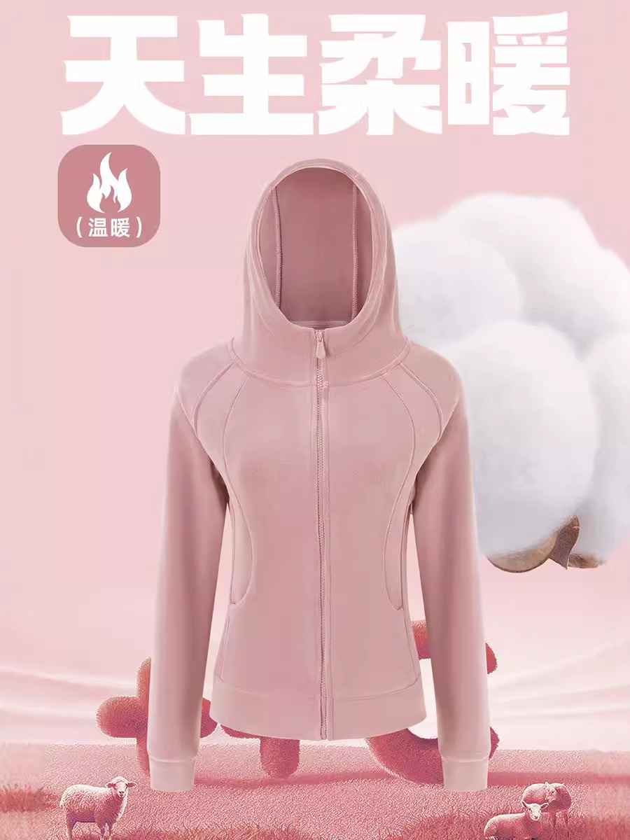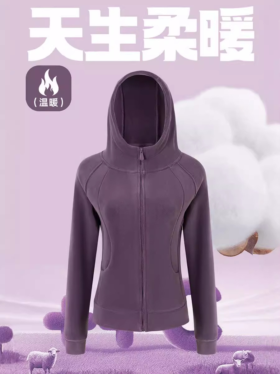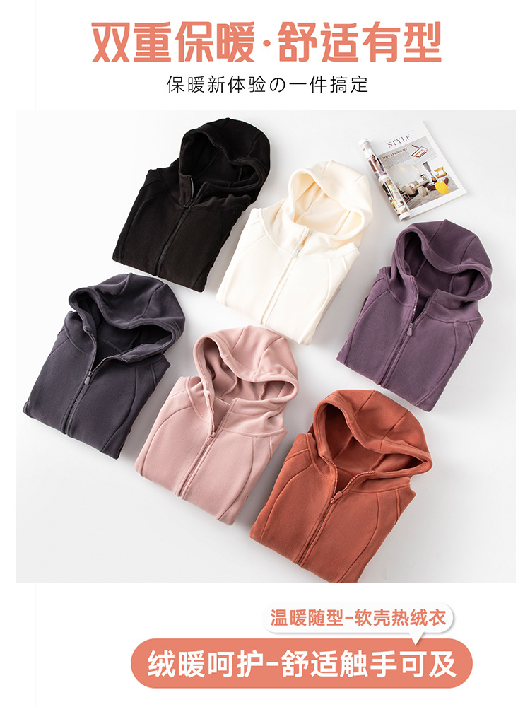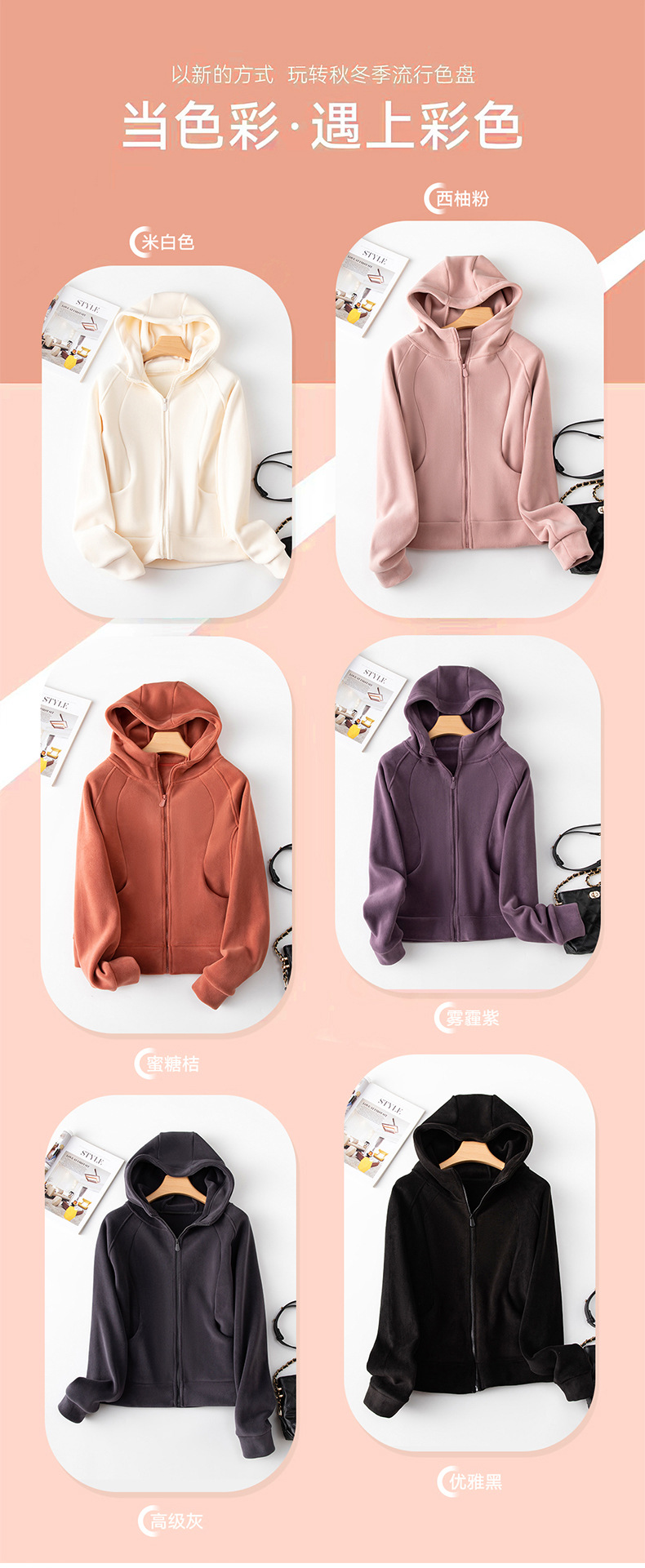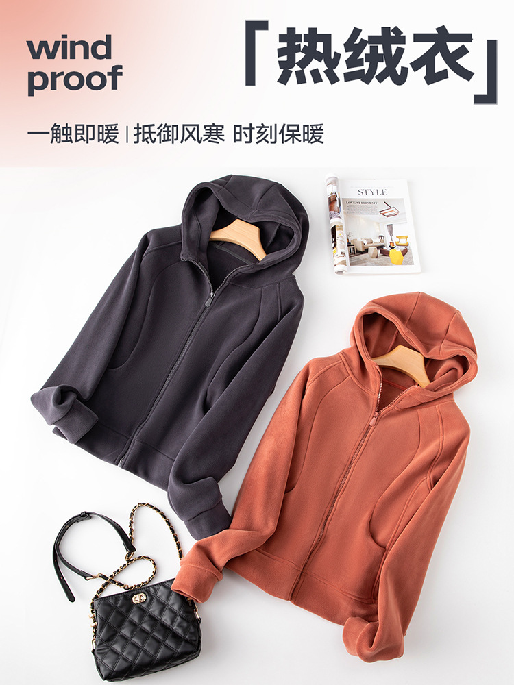 lulu双面德绒连帽卫衣女春秋新款加绒奥粒绒摇粒绒小个子加厚外套