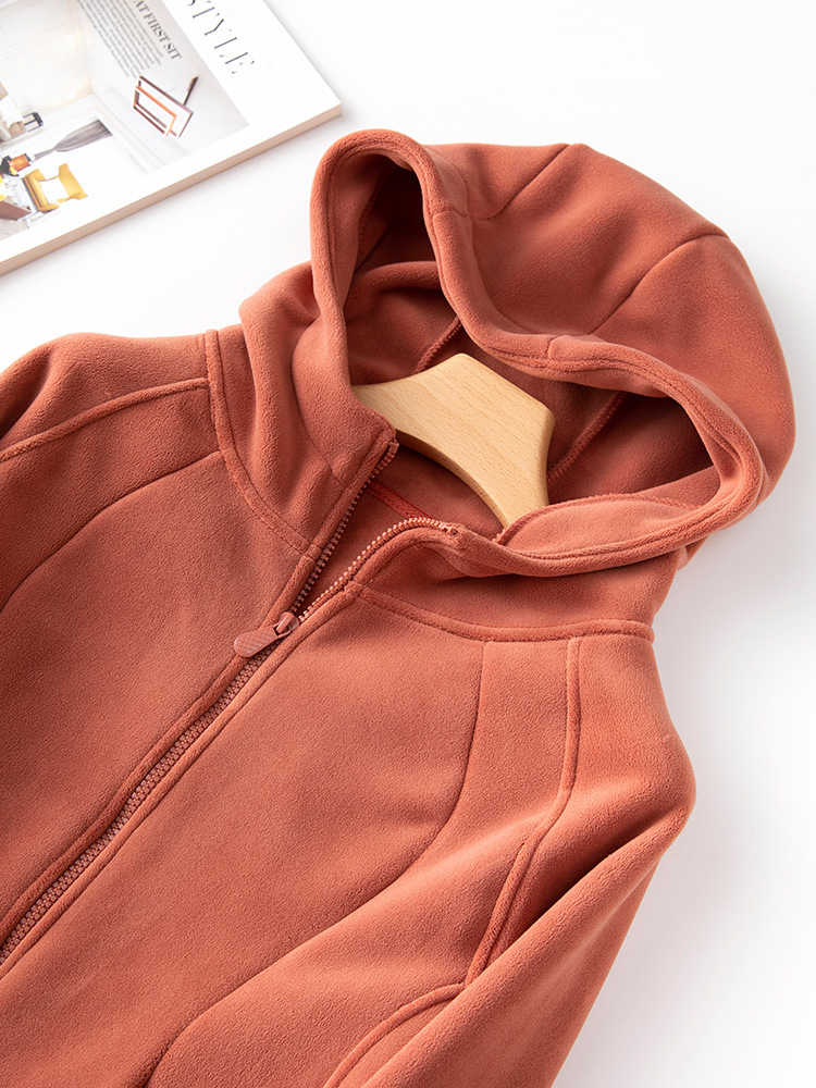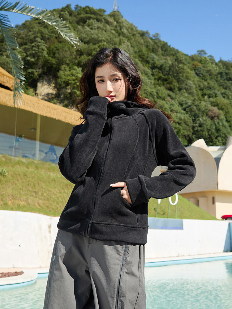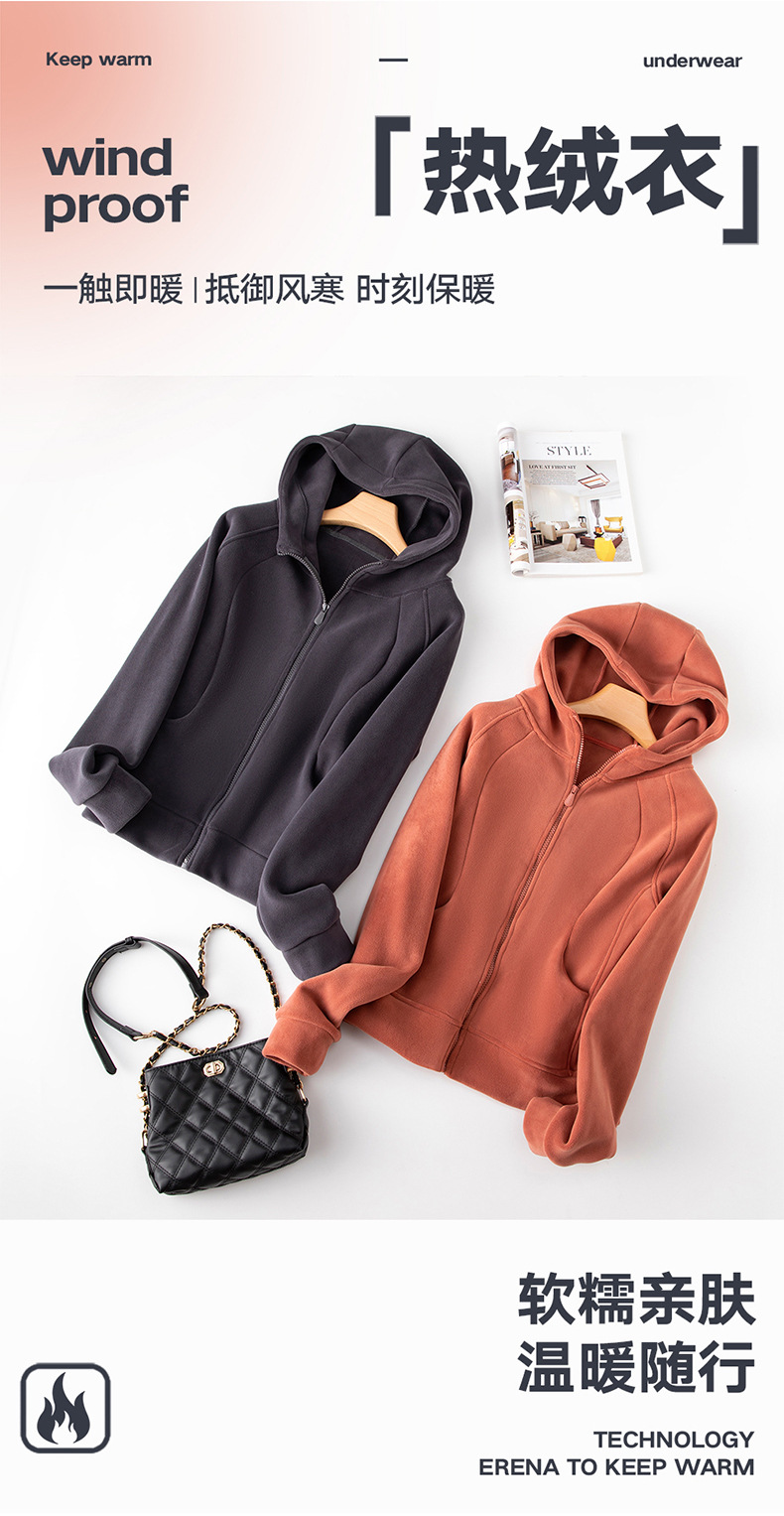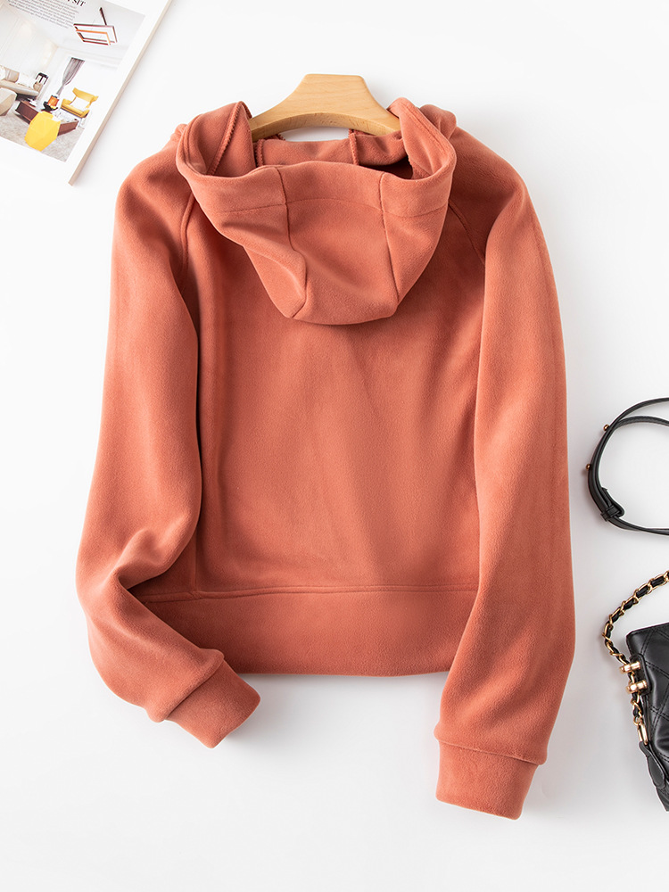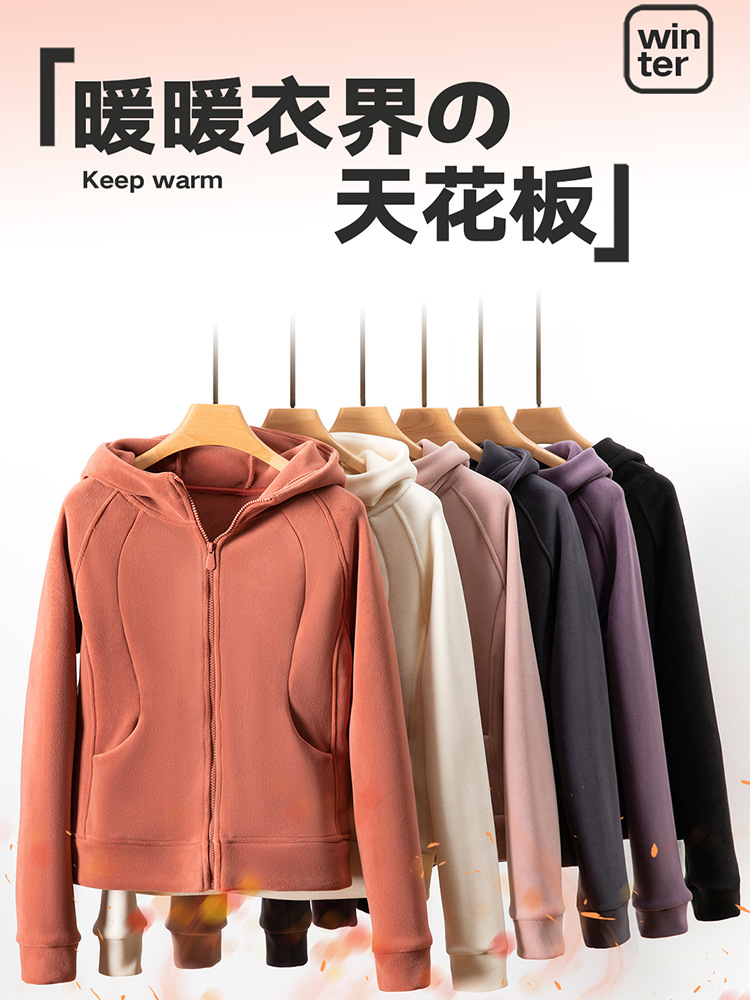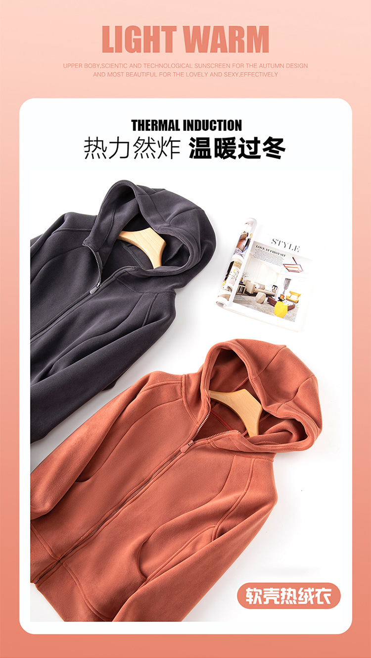 lulu双面德绒连帽卫衣女春秋新款加绒奥粒绒摇粒绒小个子加厚外套