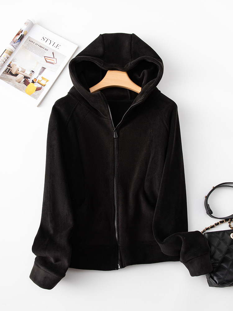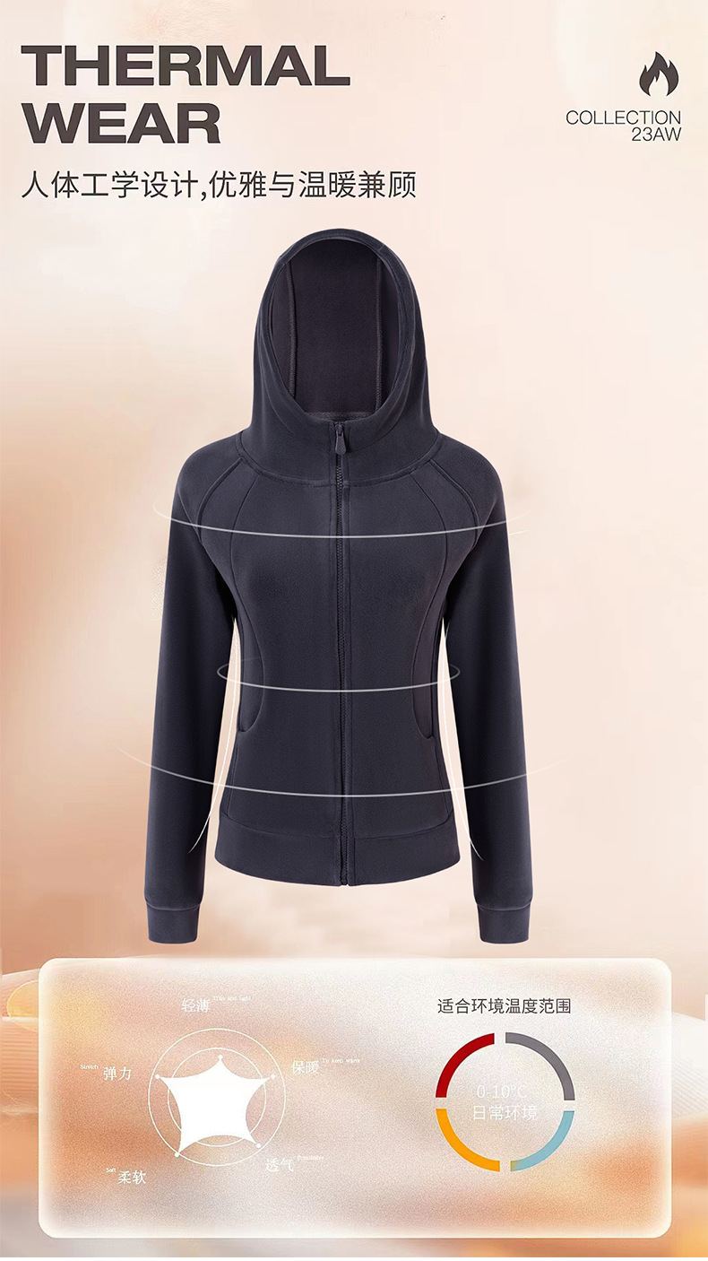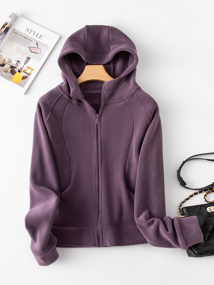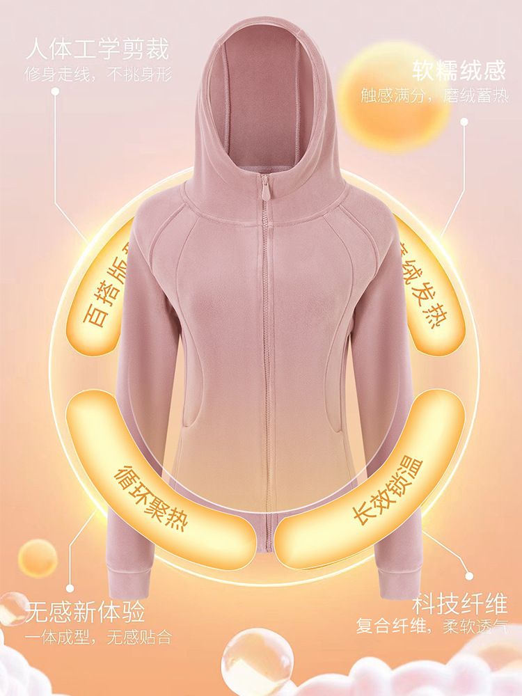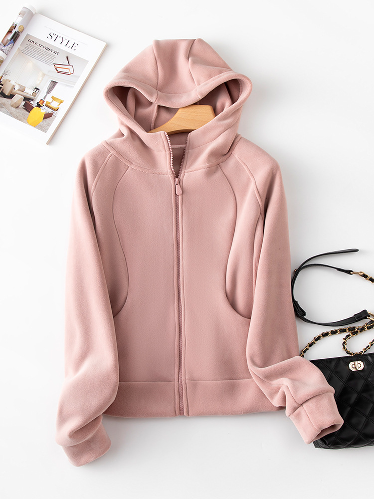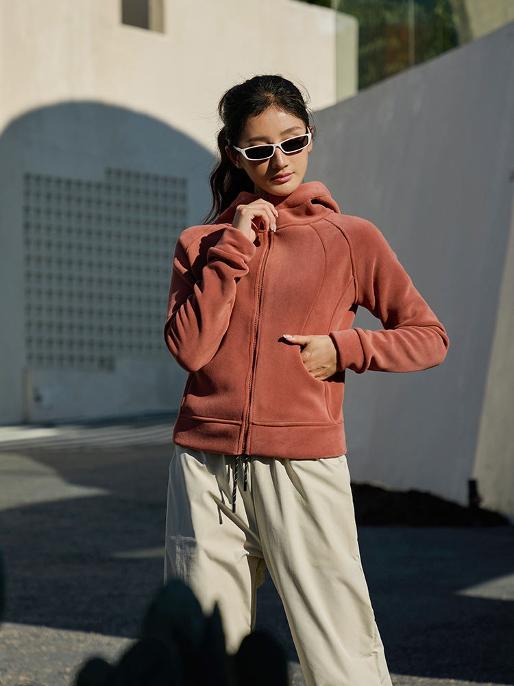 lulu双面德绒连帽卫衣女春秋新款加绒奥粒绒摇粒绒小个子加厚外套