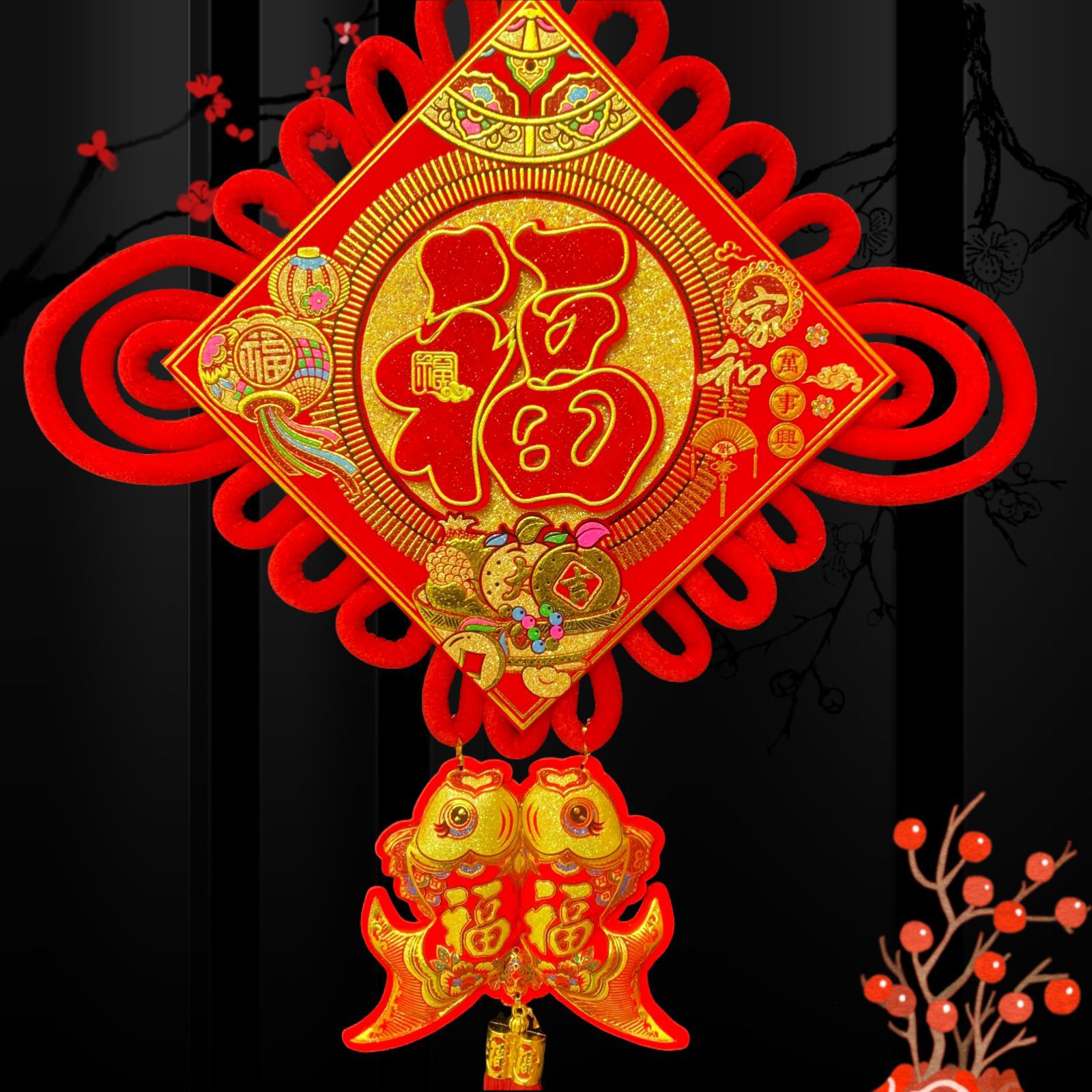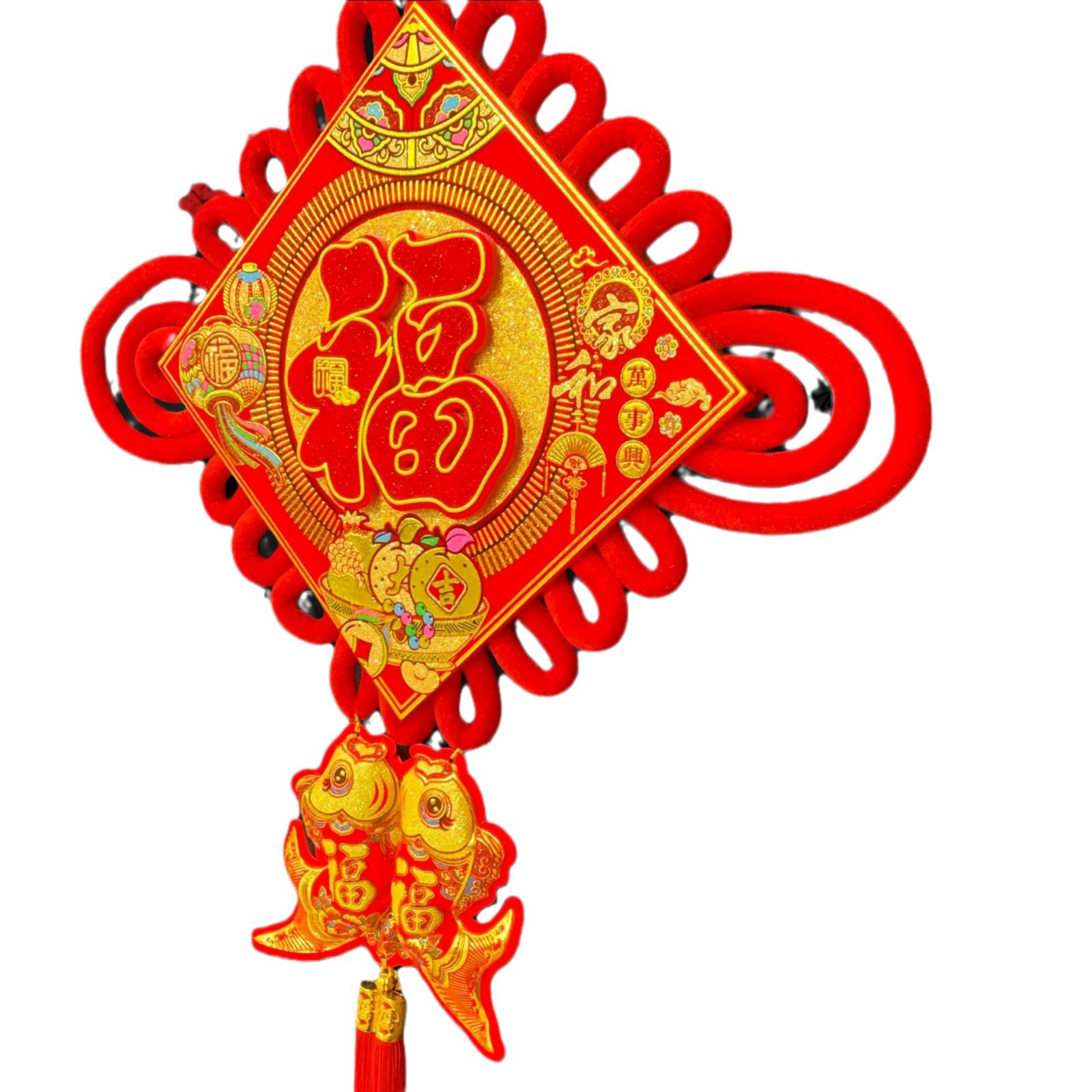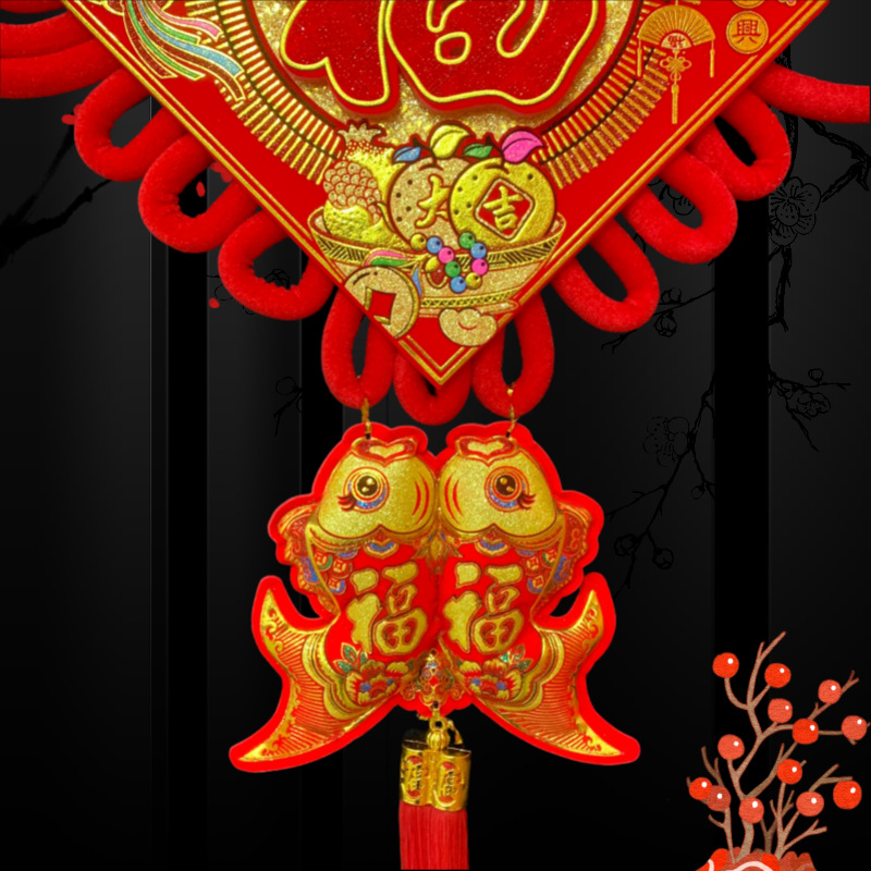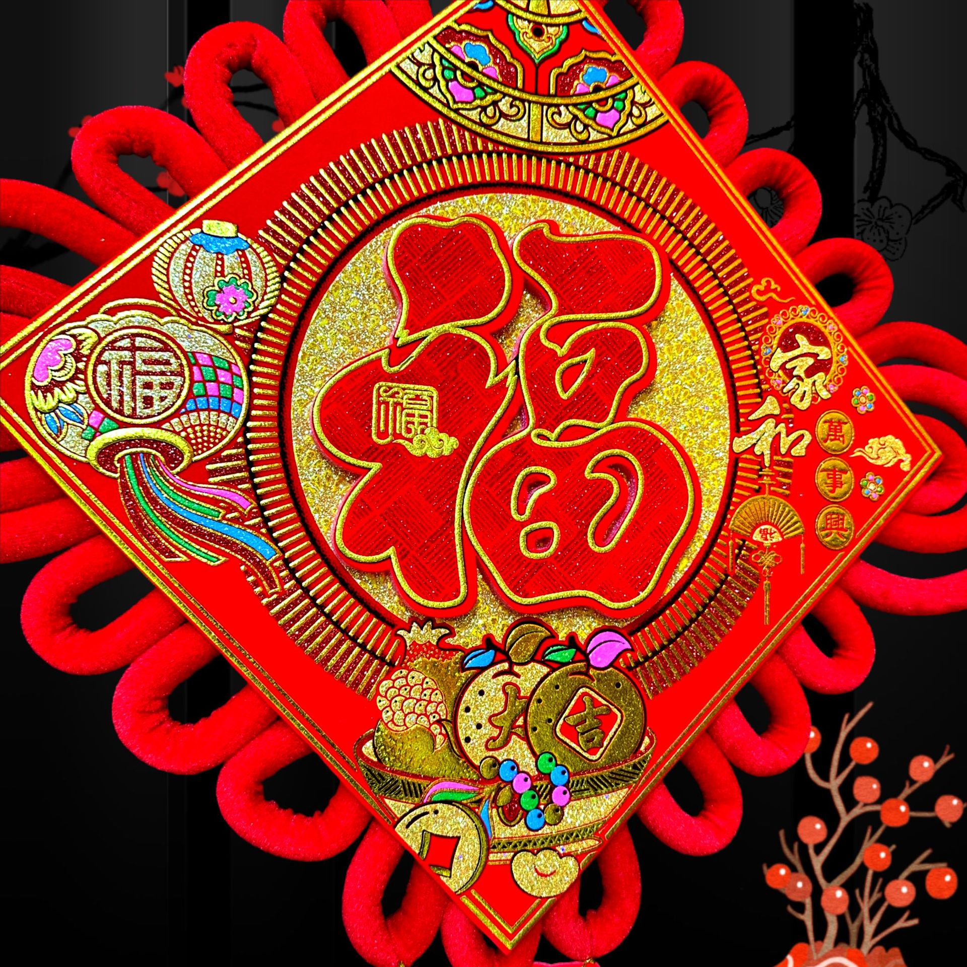 单线立体中国结家和万事兴立体红福新年挂件春节装饰挂鱼喜庆用品
