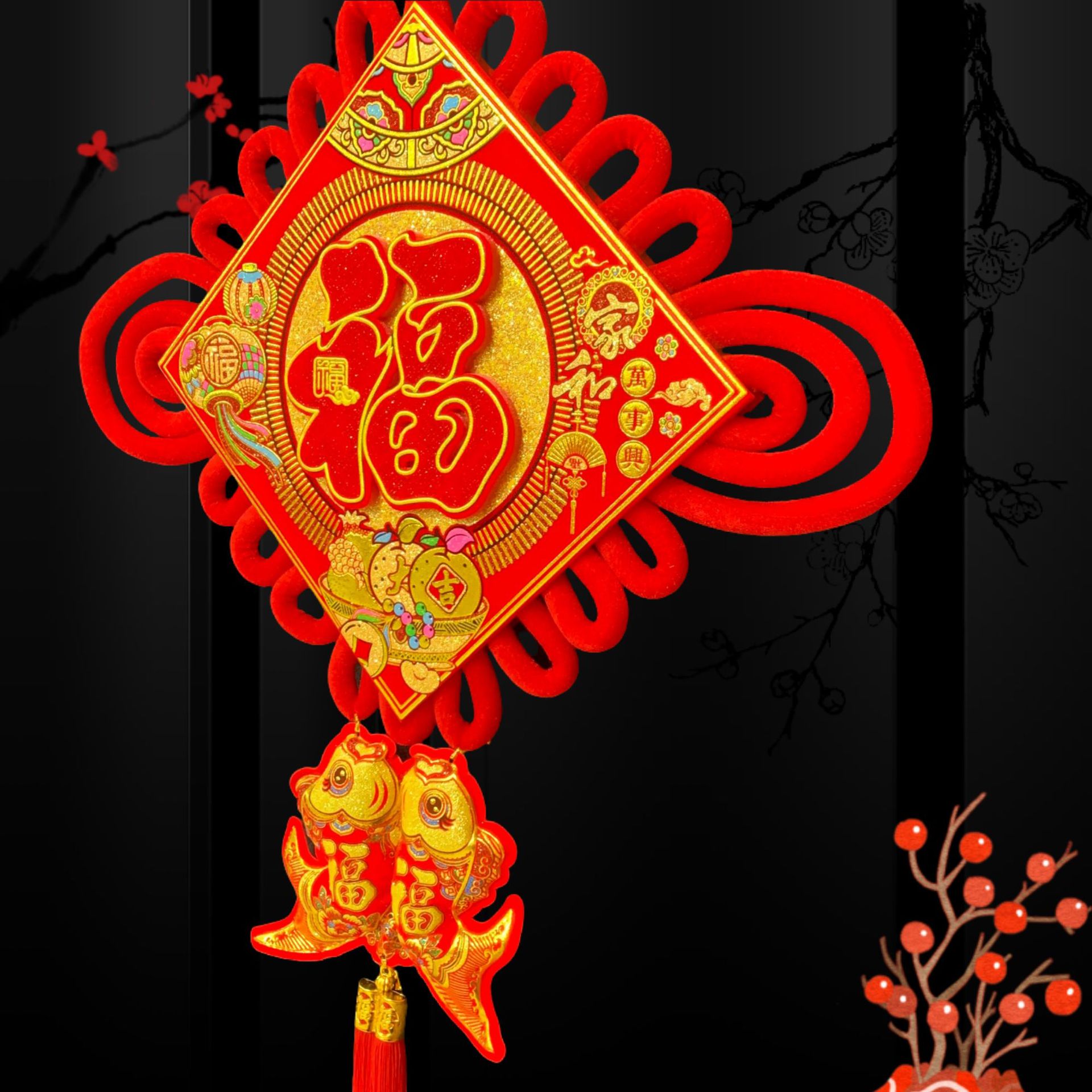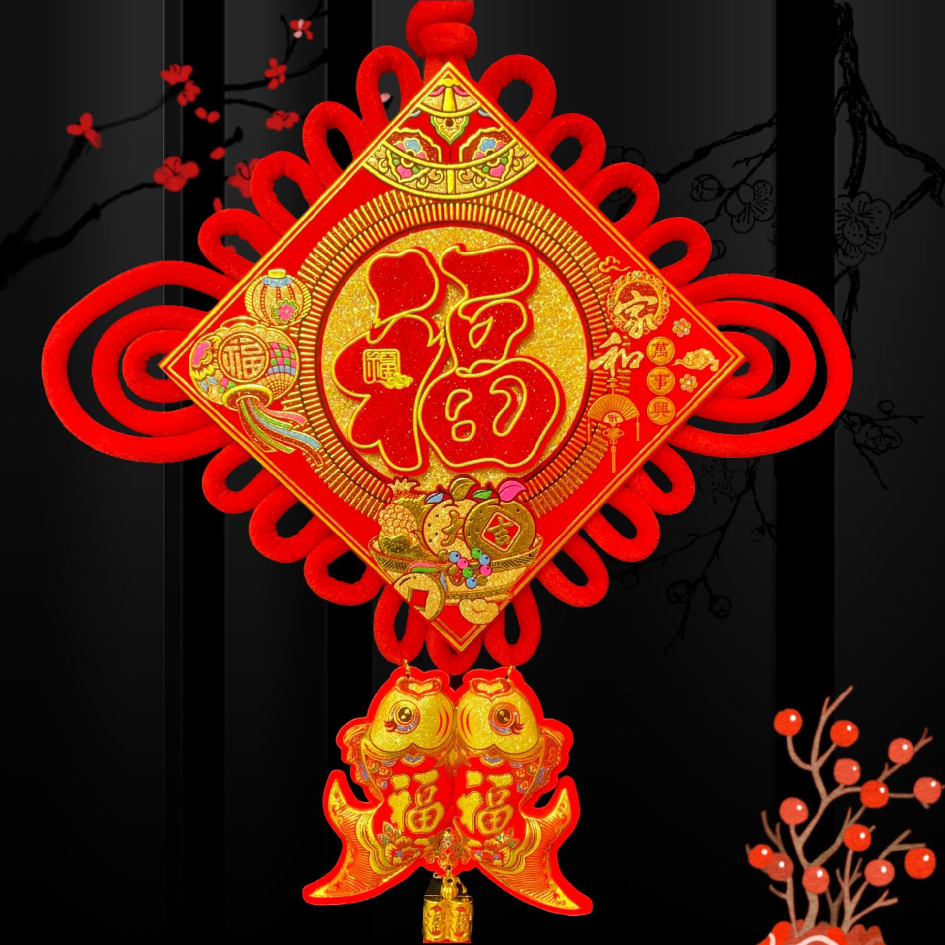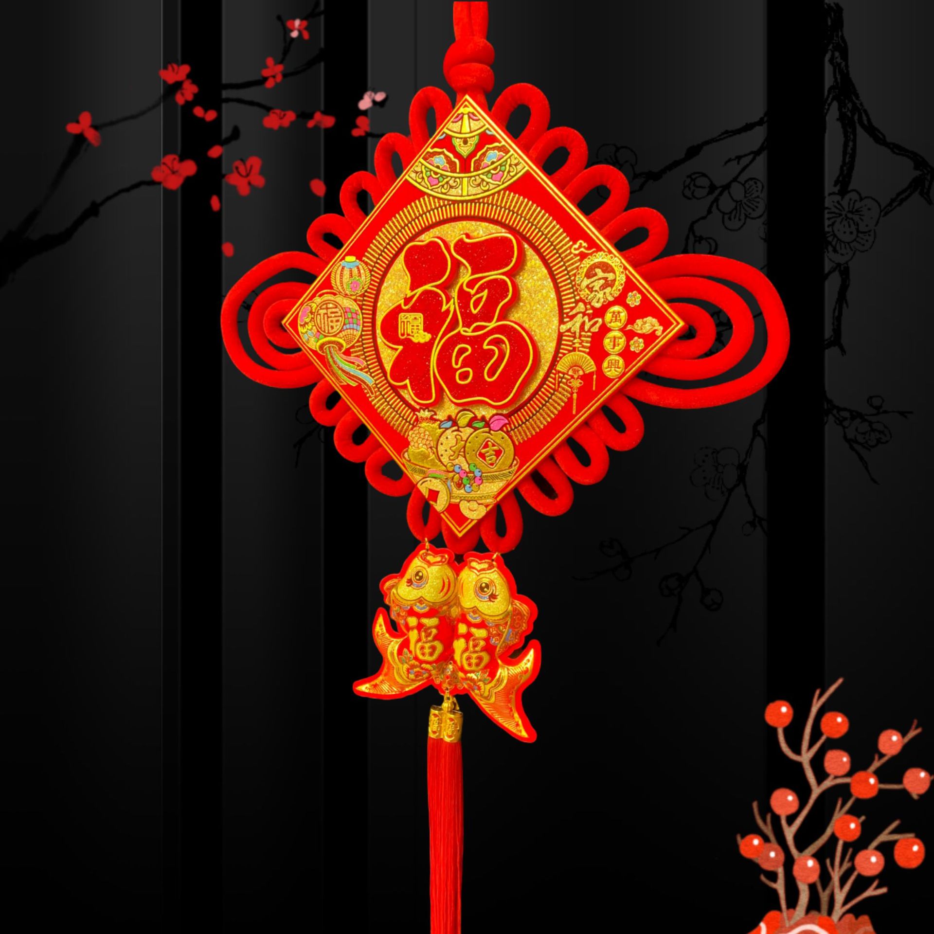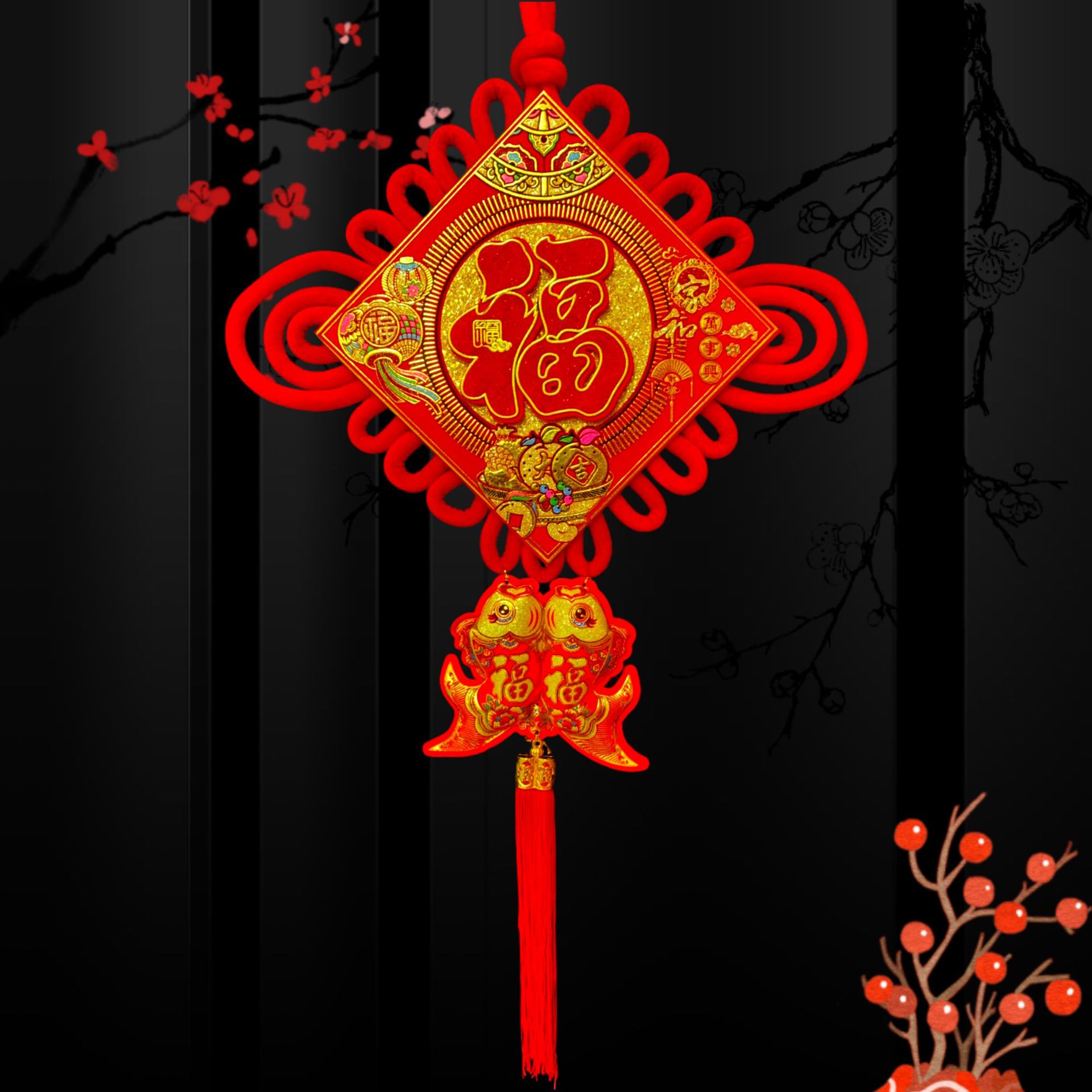 单线立体中国结家和万事兴立体红福新年挂件春节装饰挂鱼喜庆用品