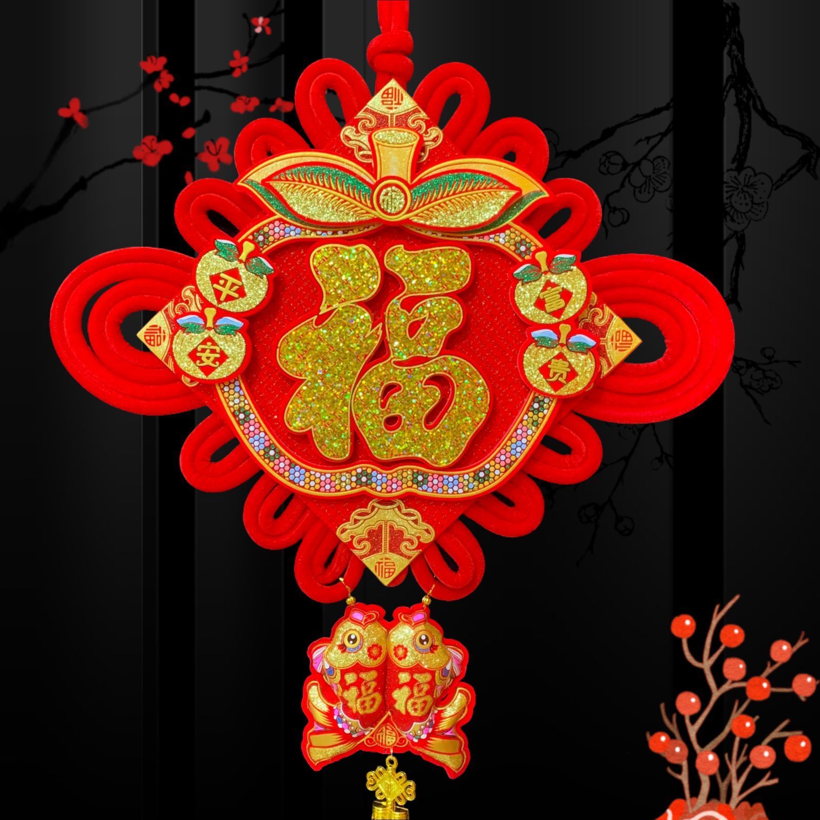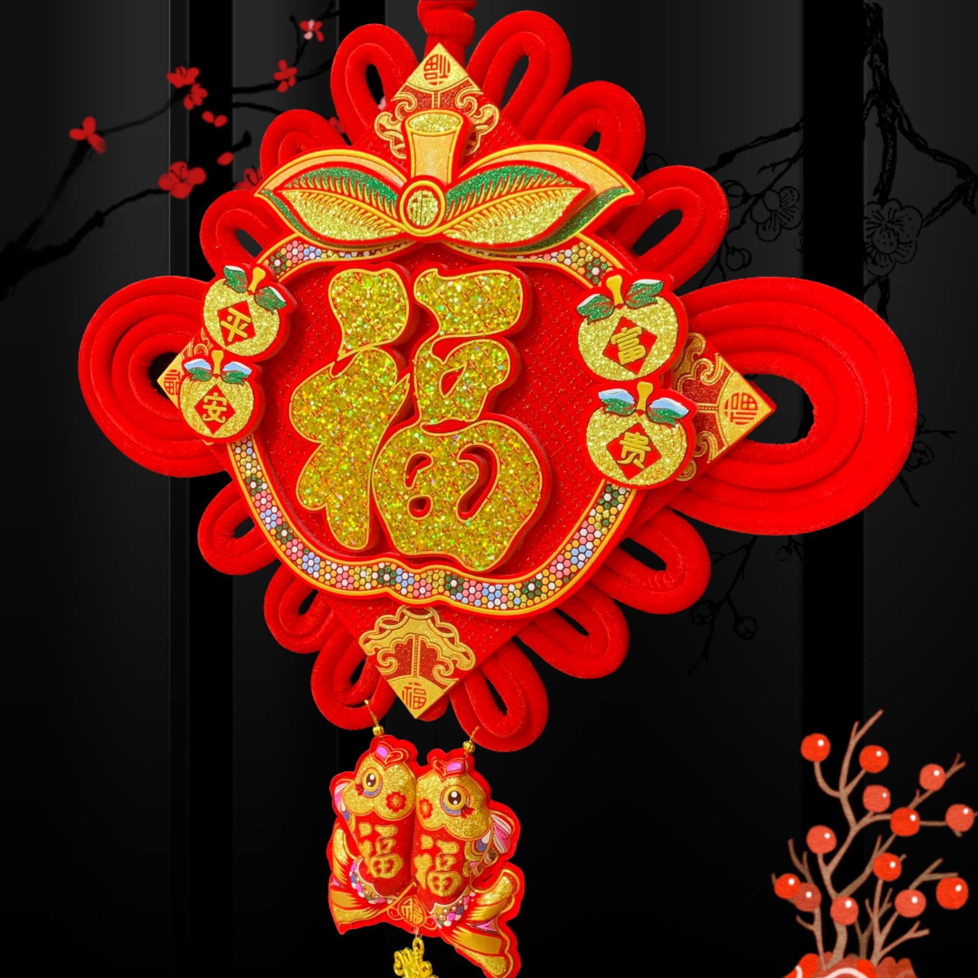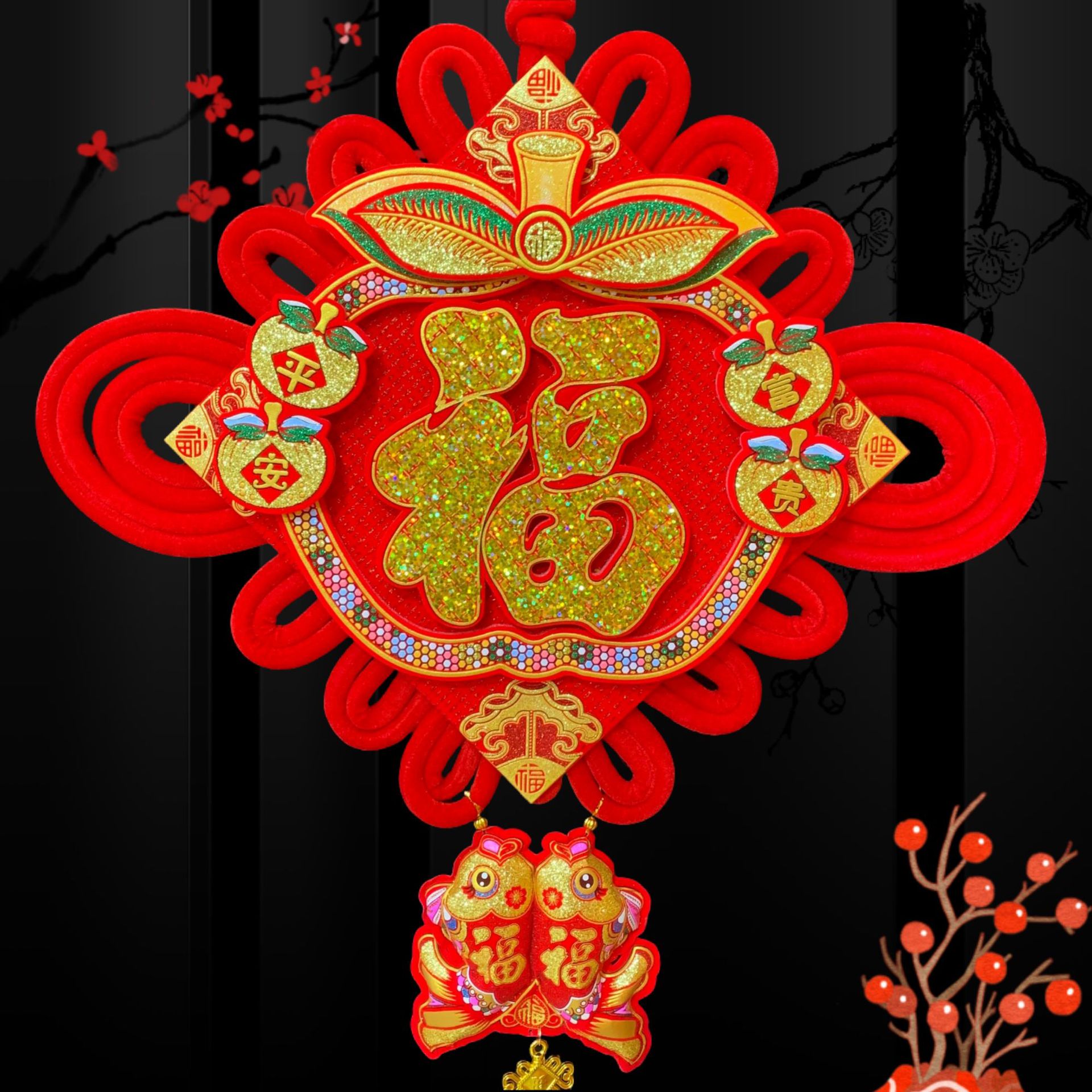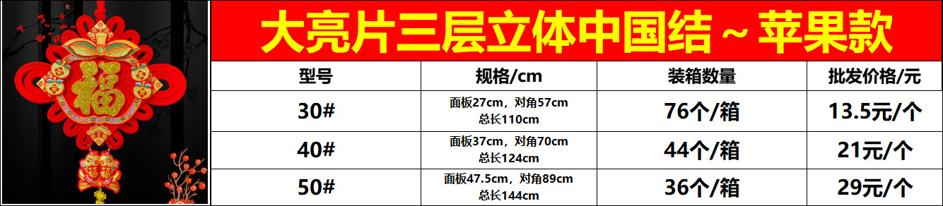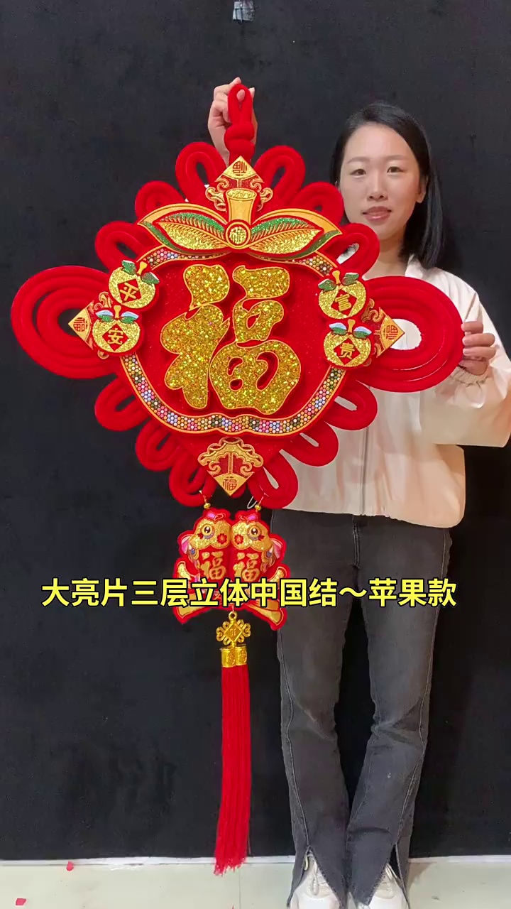 大亮片三层立体中国结苹果立体金福新年挂件春节装饰挂鱼喜庆用品