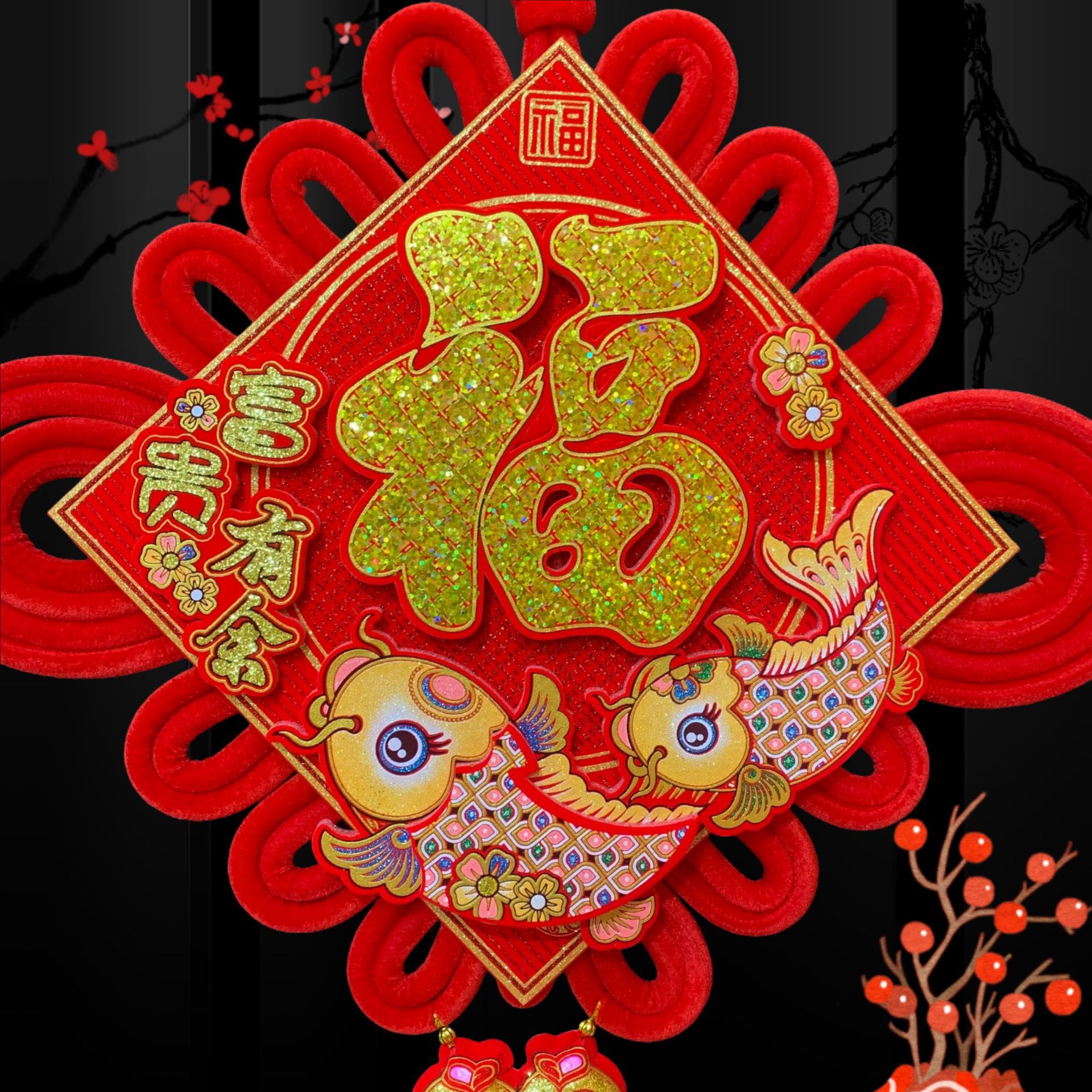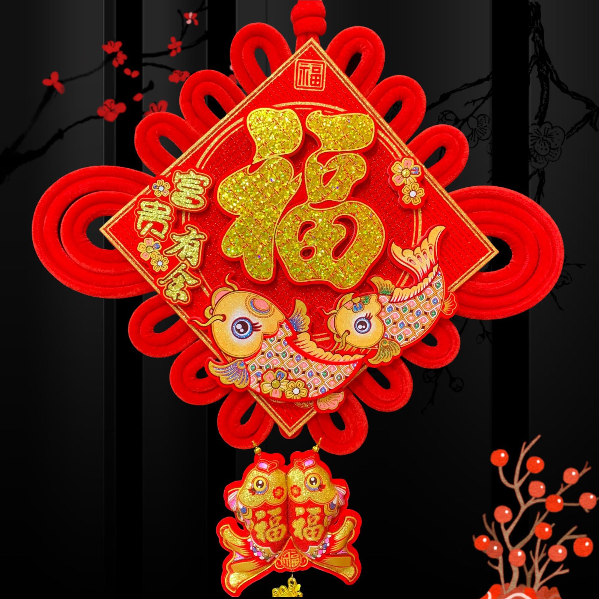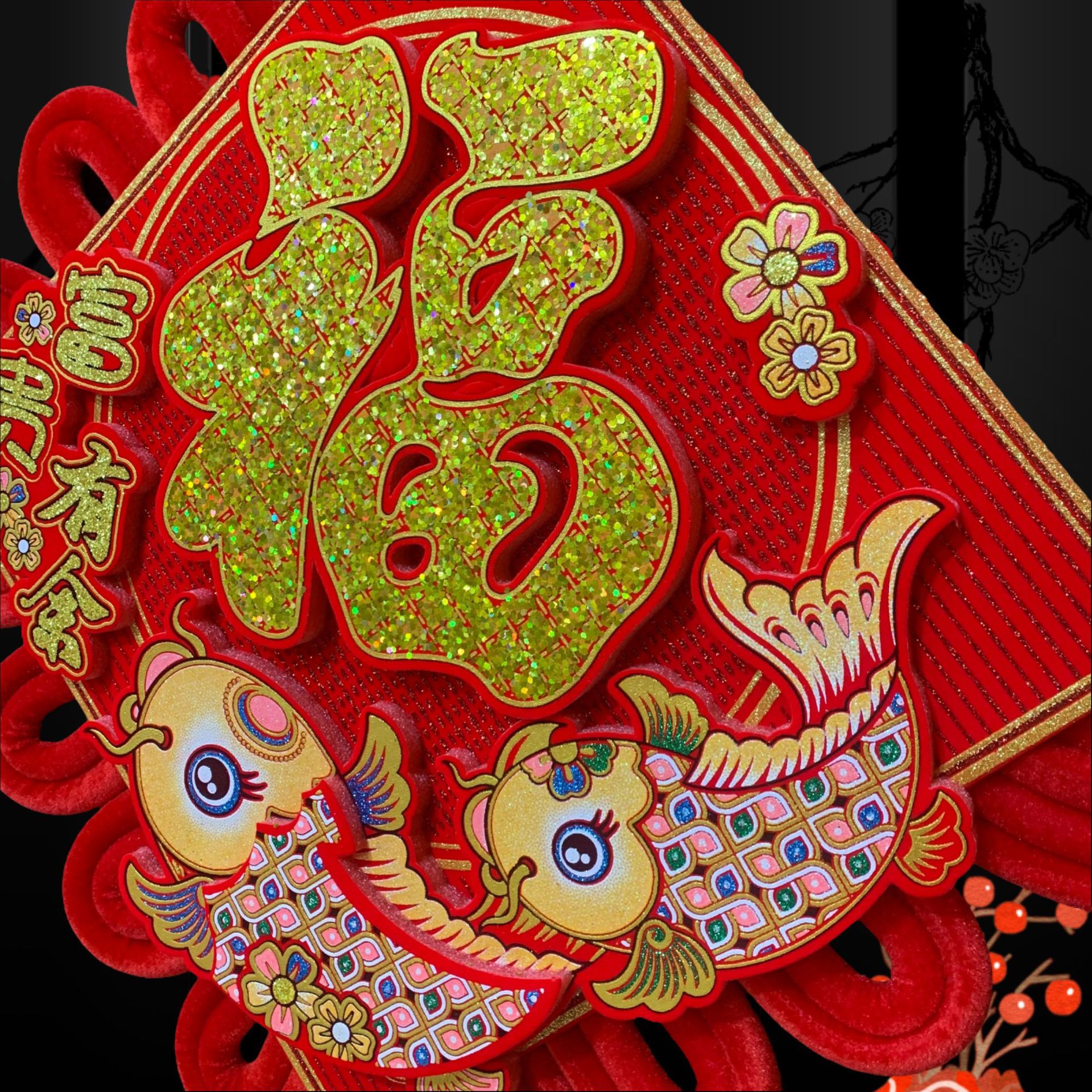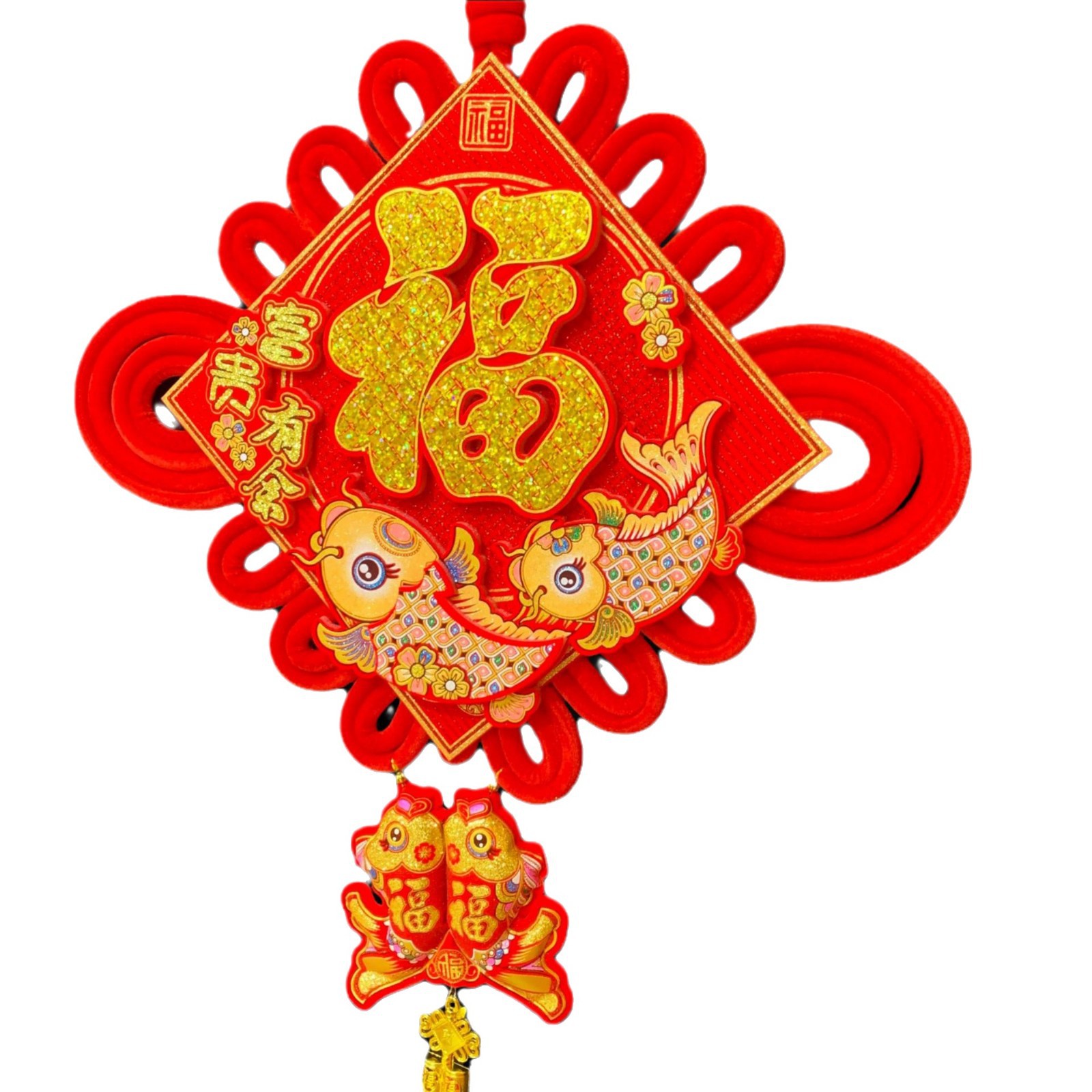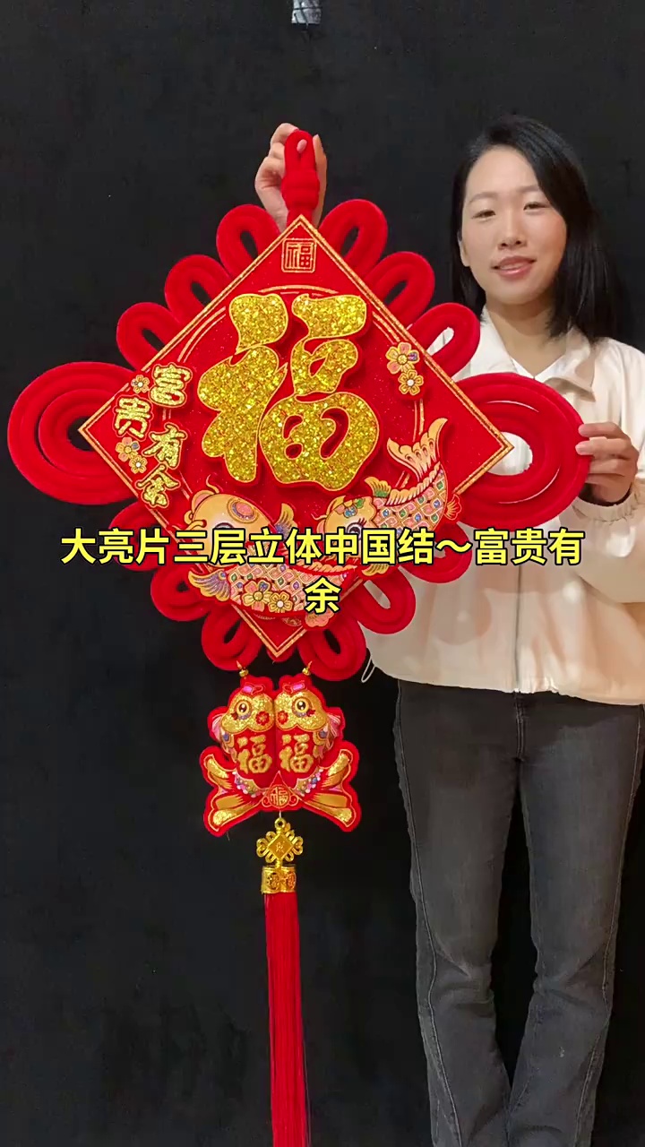 大亮片三层立体中国结富贵有余立体金福新年春节装饰挂鱼喜庆用品