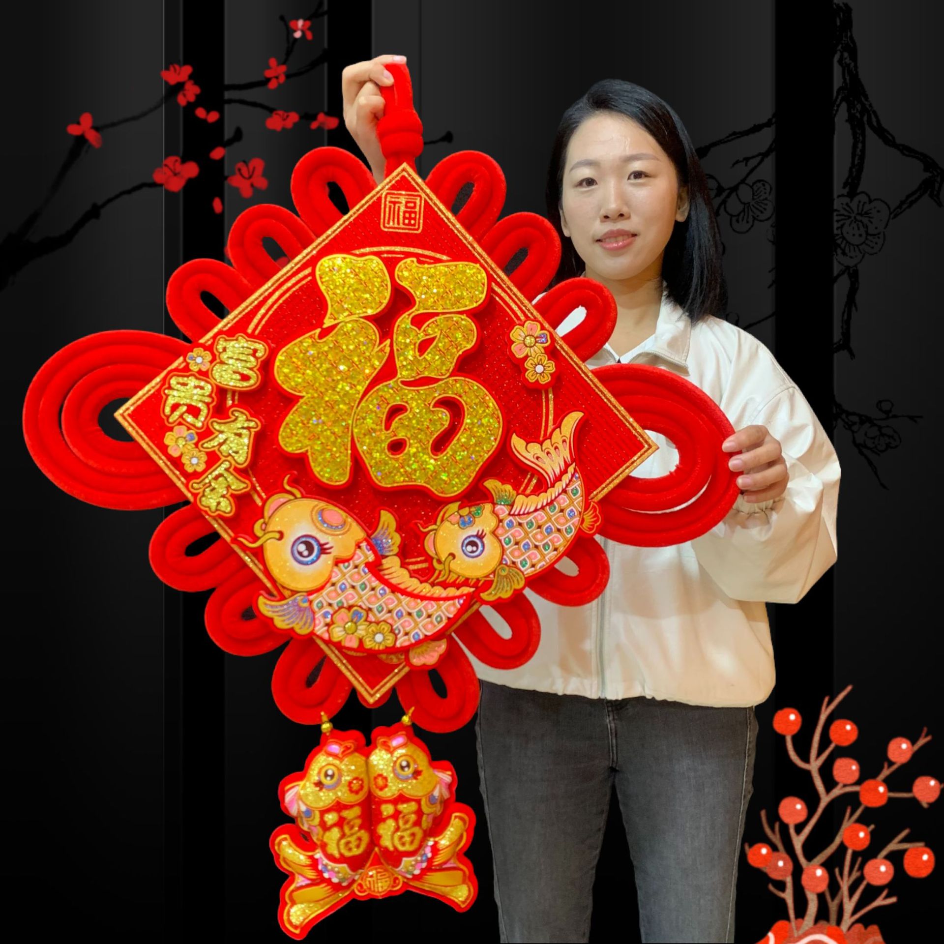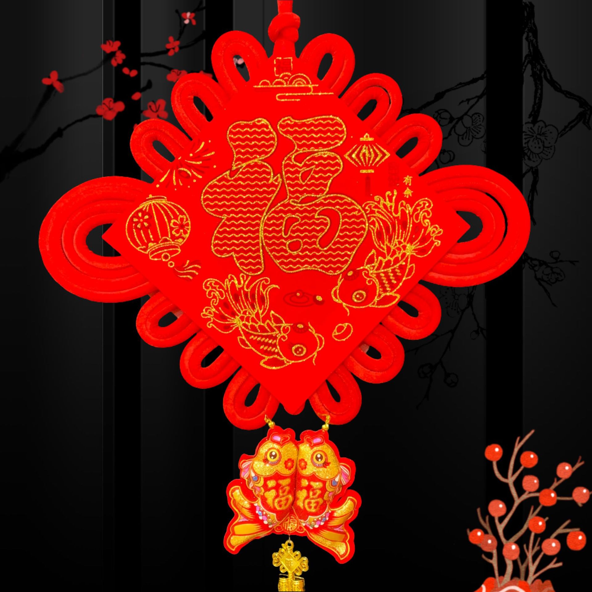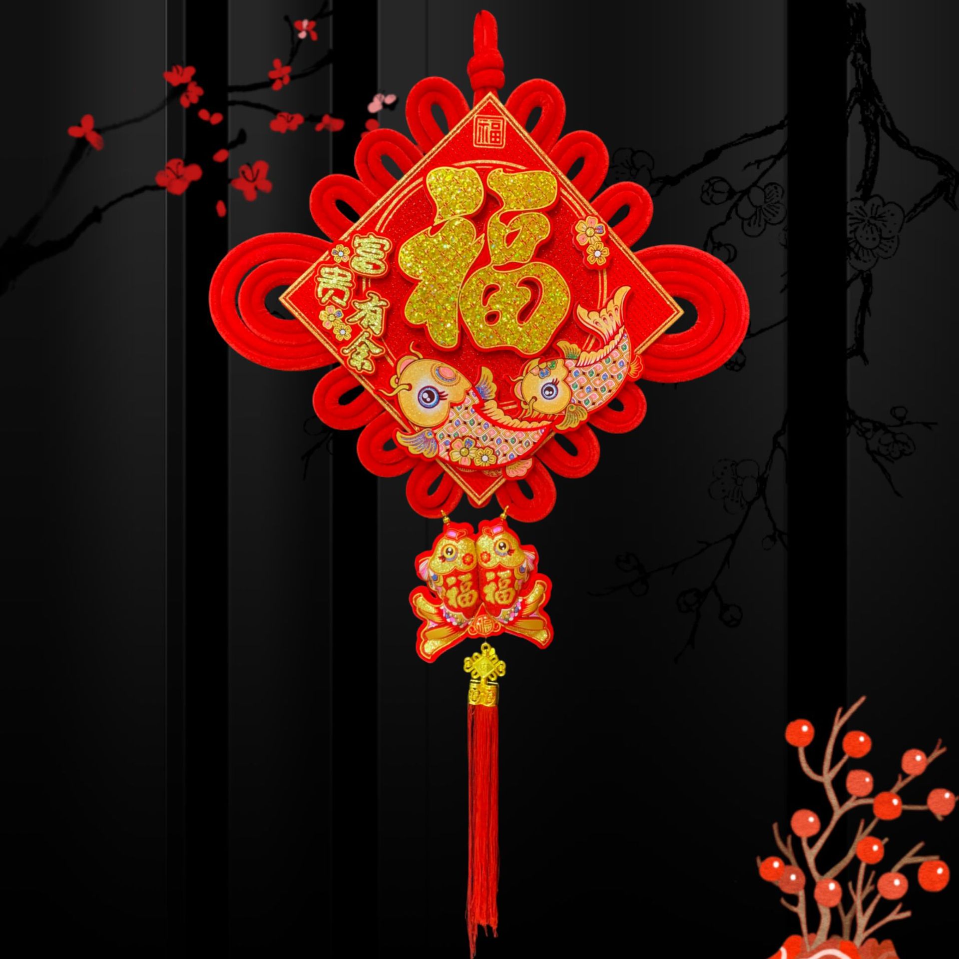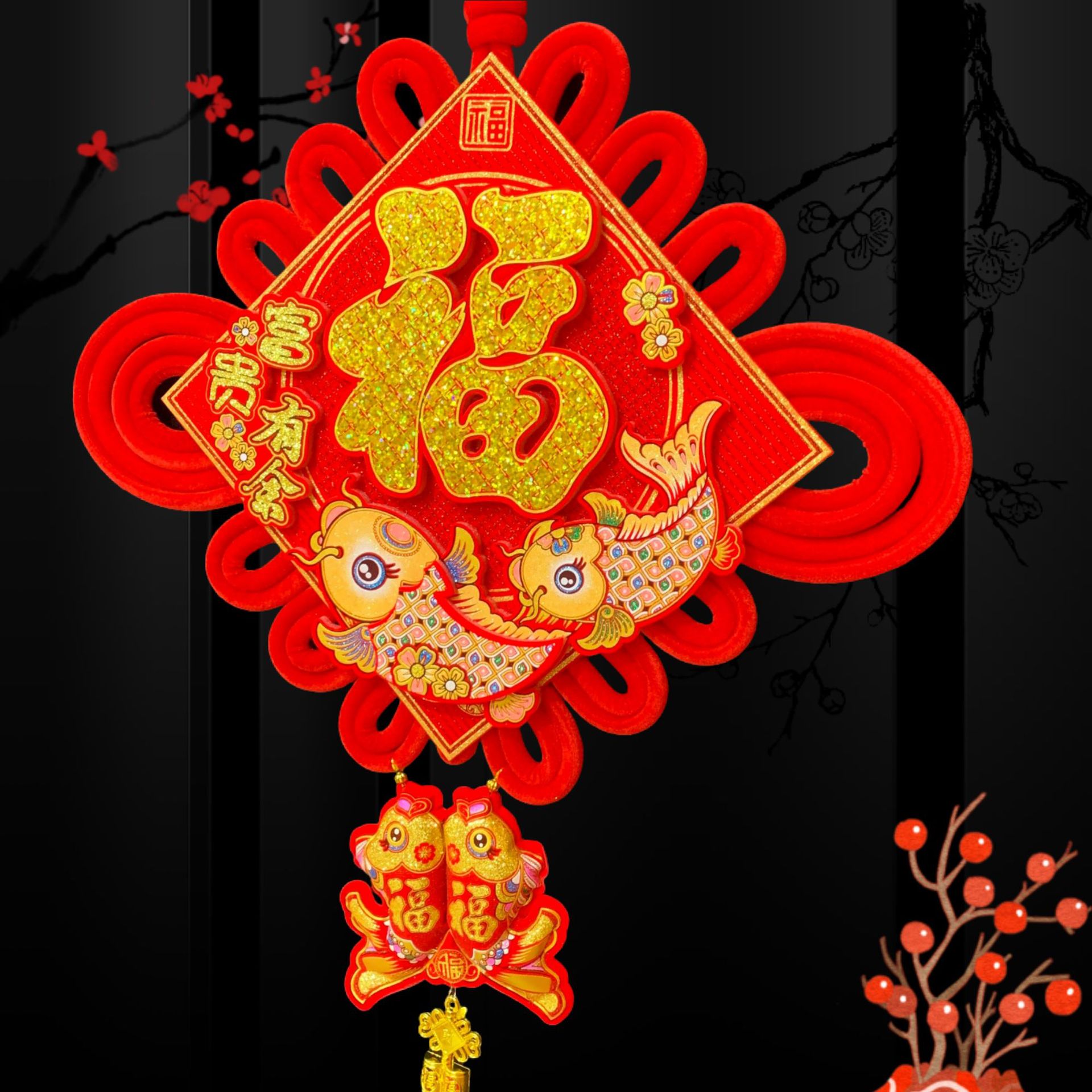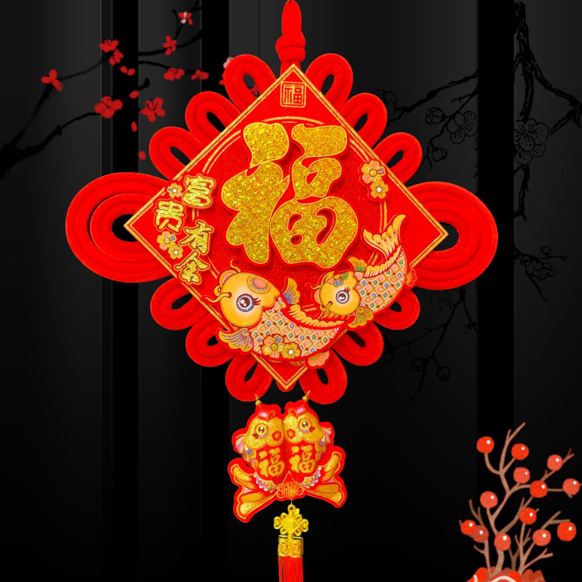 大亮片三层立体中国结富贵有余立体金福新年春节装饰挂鱼喜庆用品