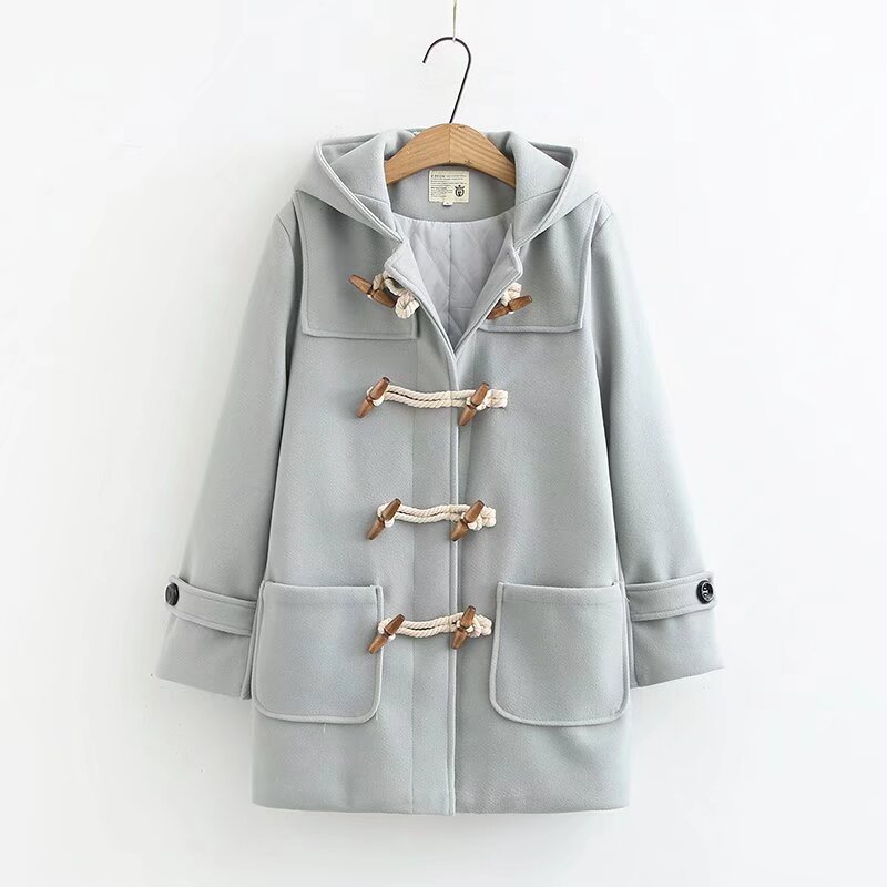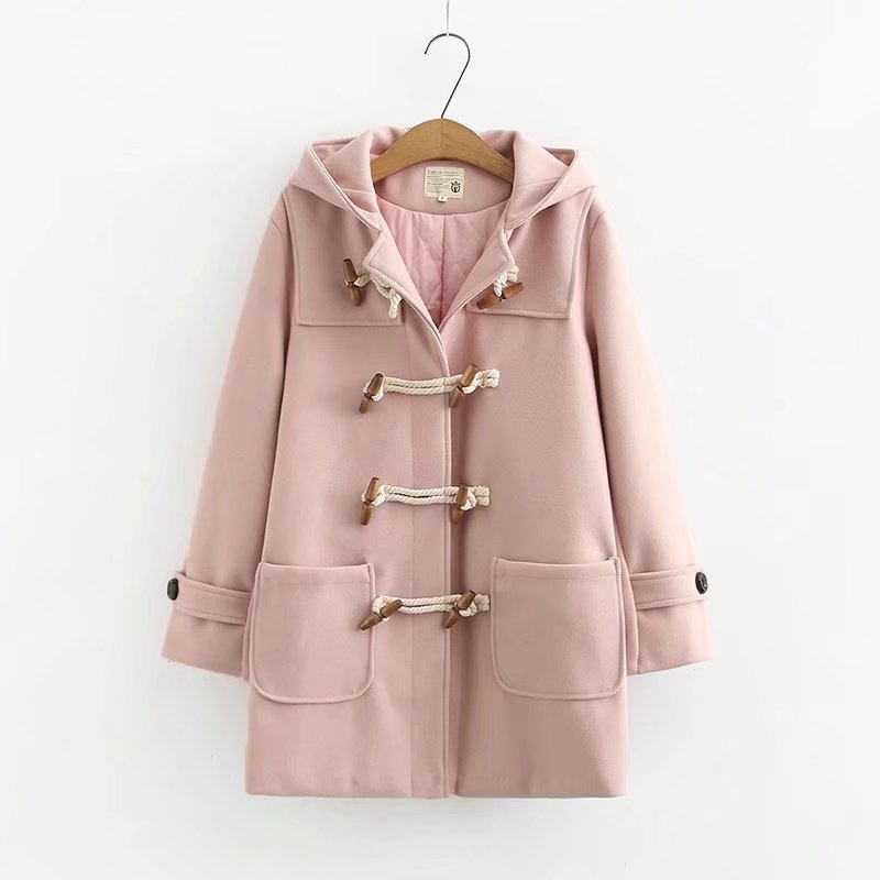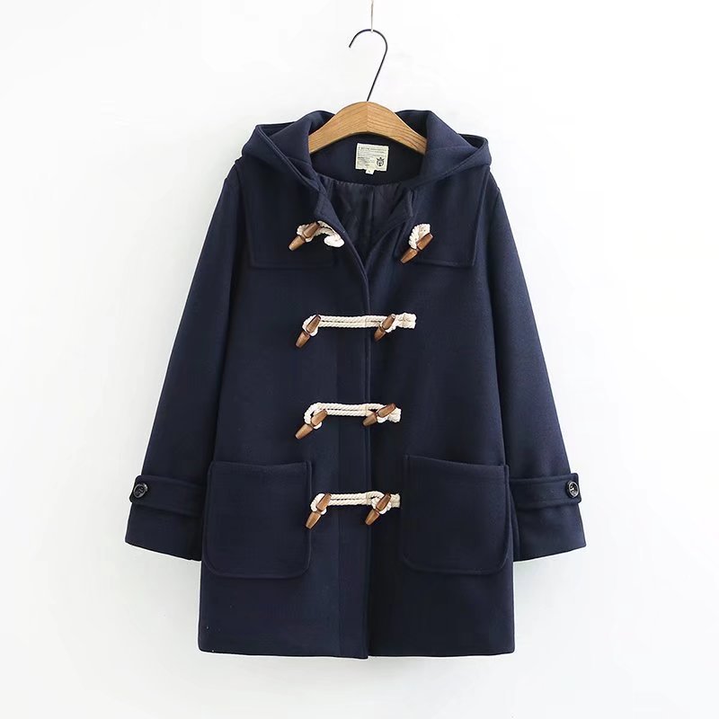 双木扣毛呢外套女装秋冬季新款韩版小个子中长款呢子大衣S29810