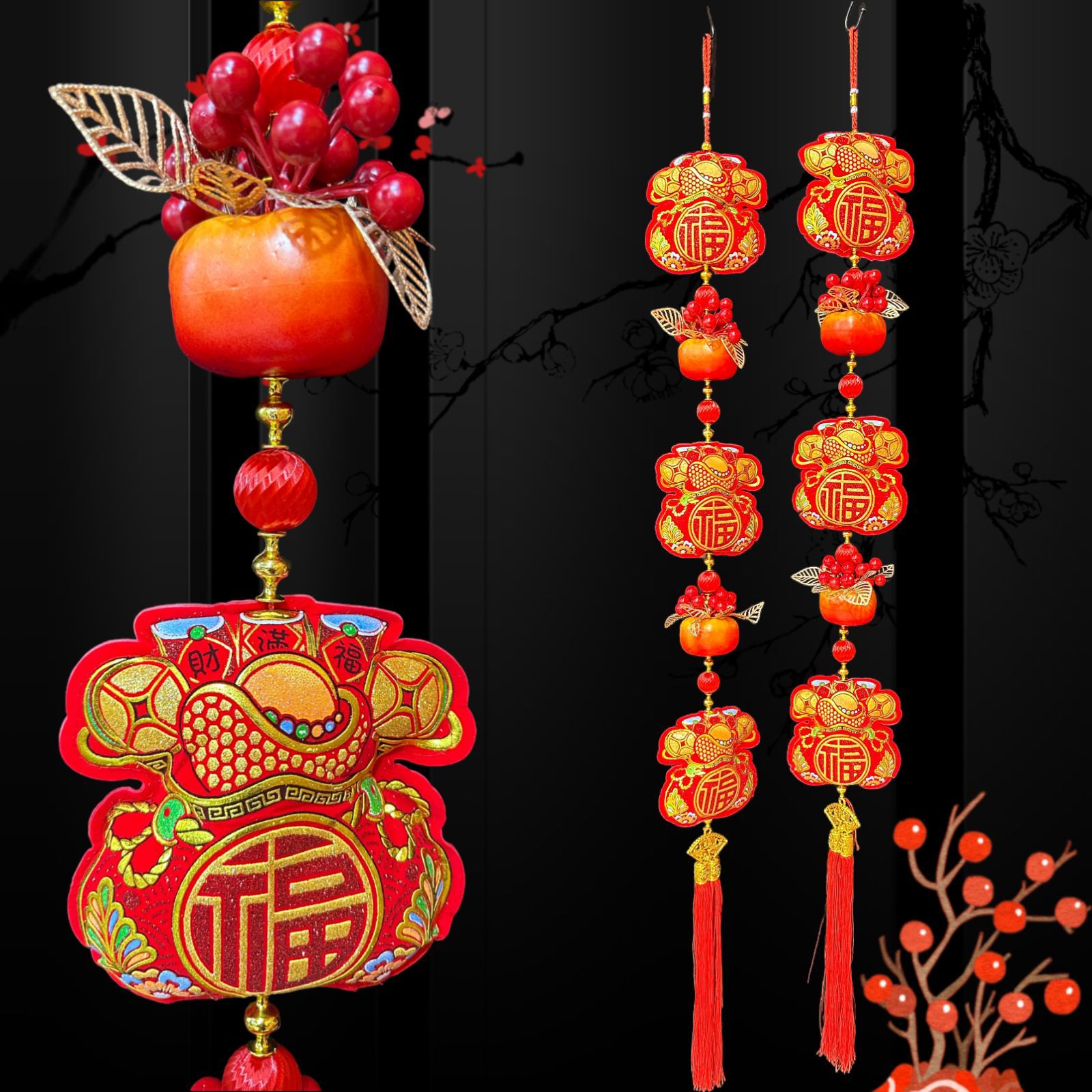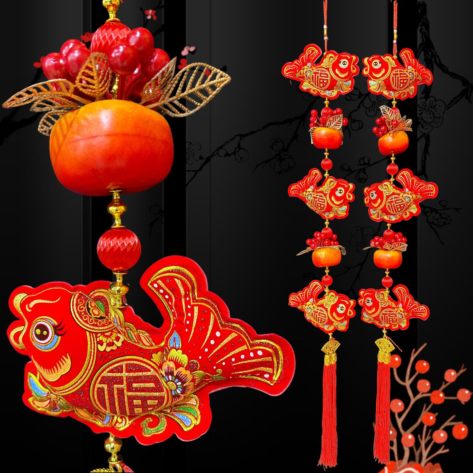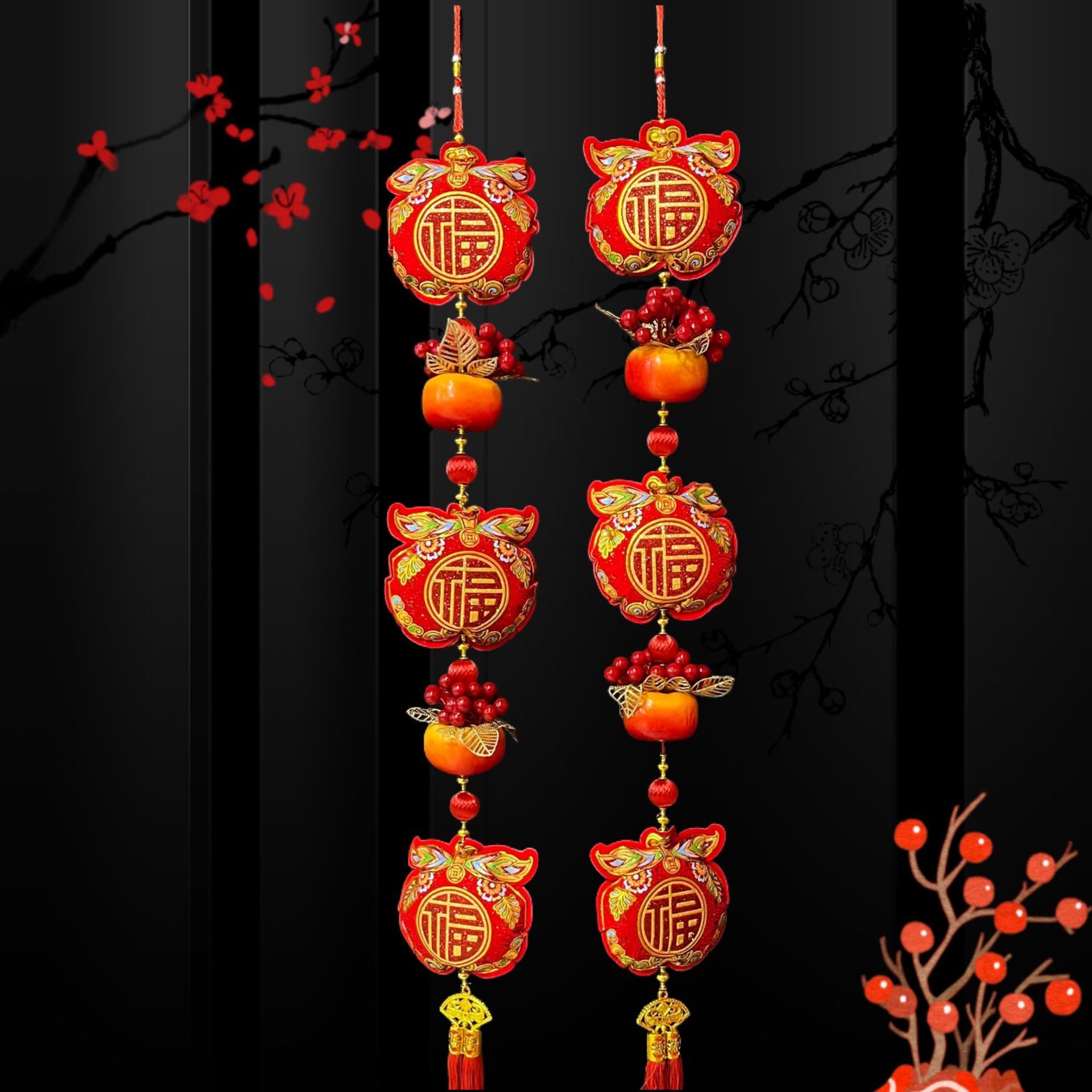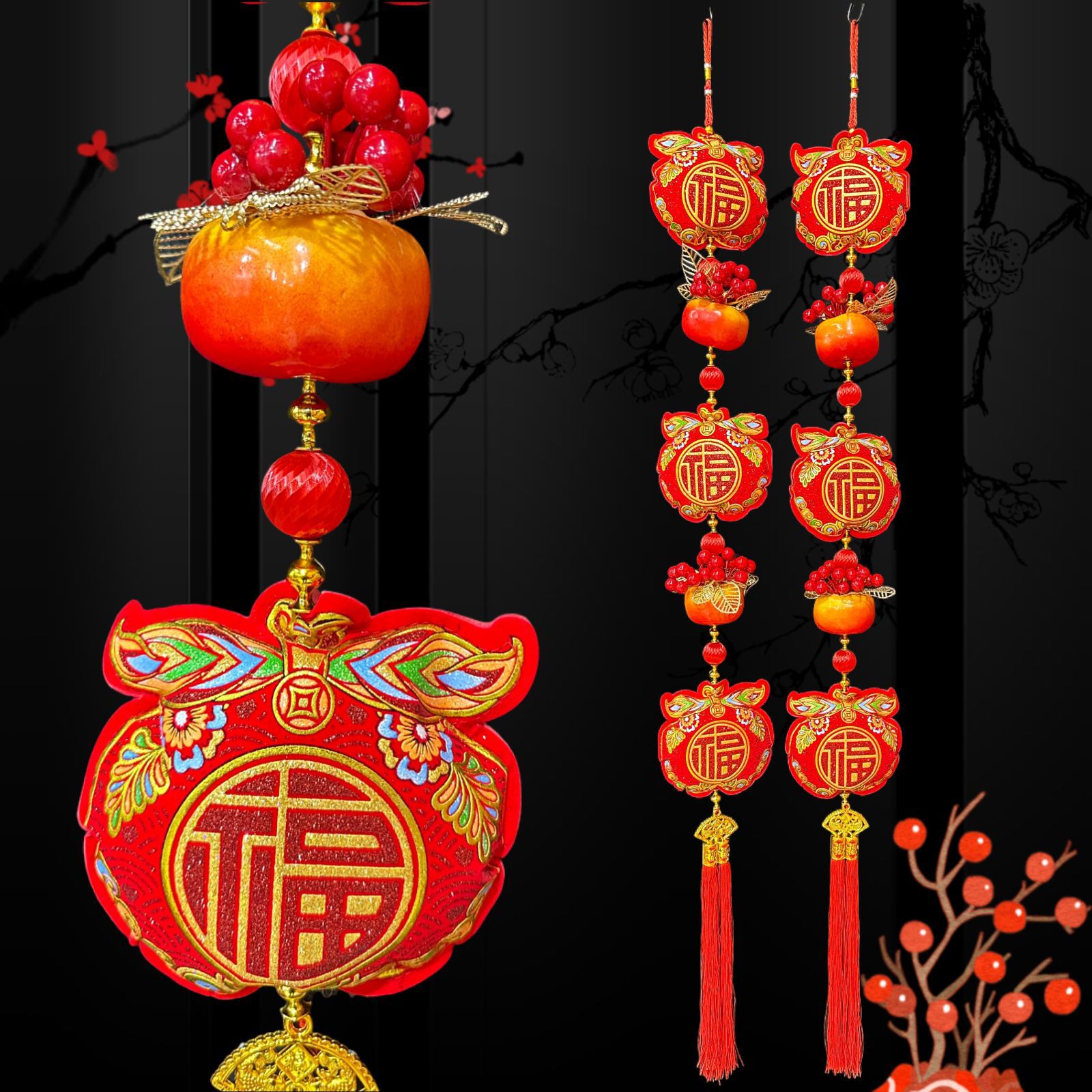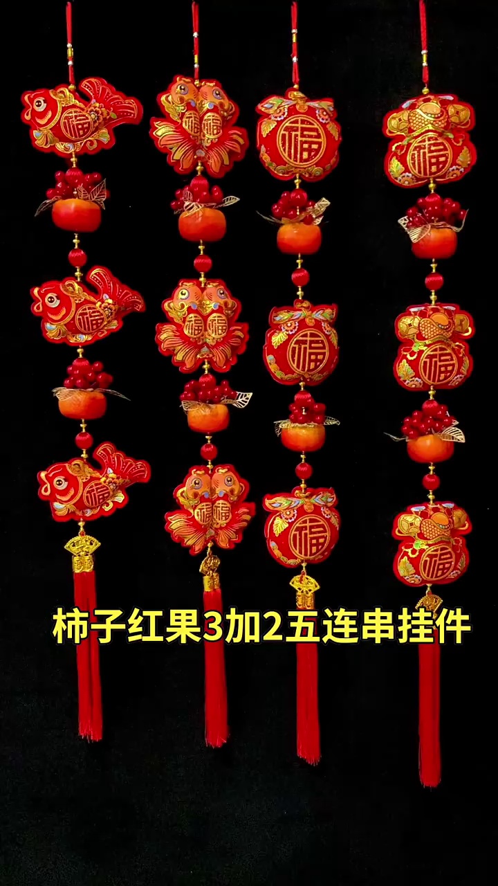新款柿柿如意挂件3+2客厅电视背景墙挂饰新年喜庆福袋串柿子挂件