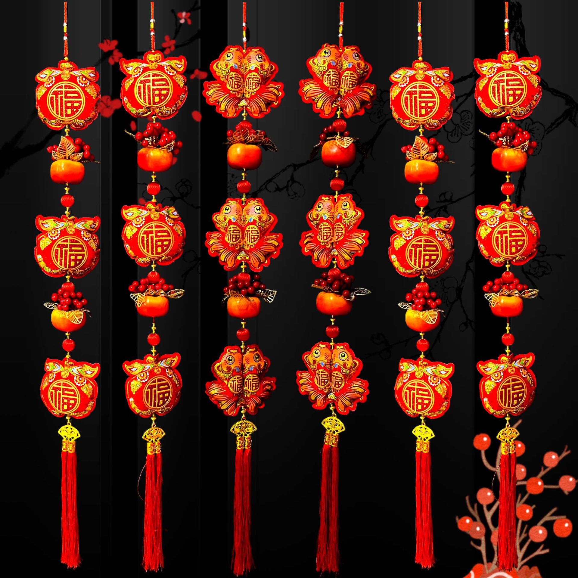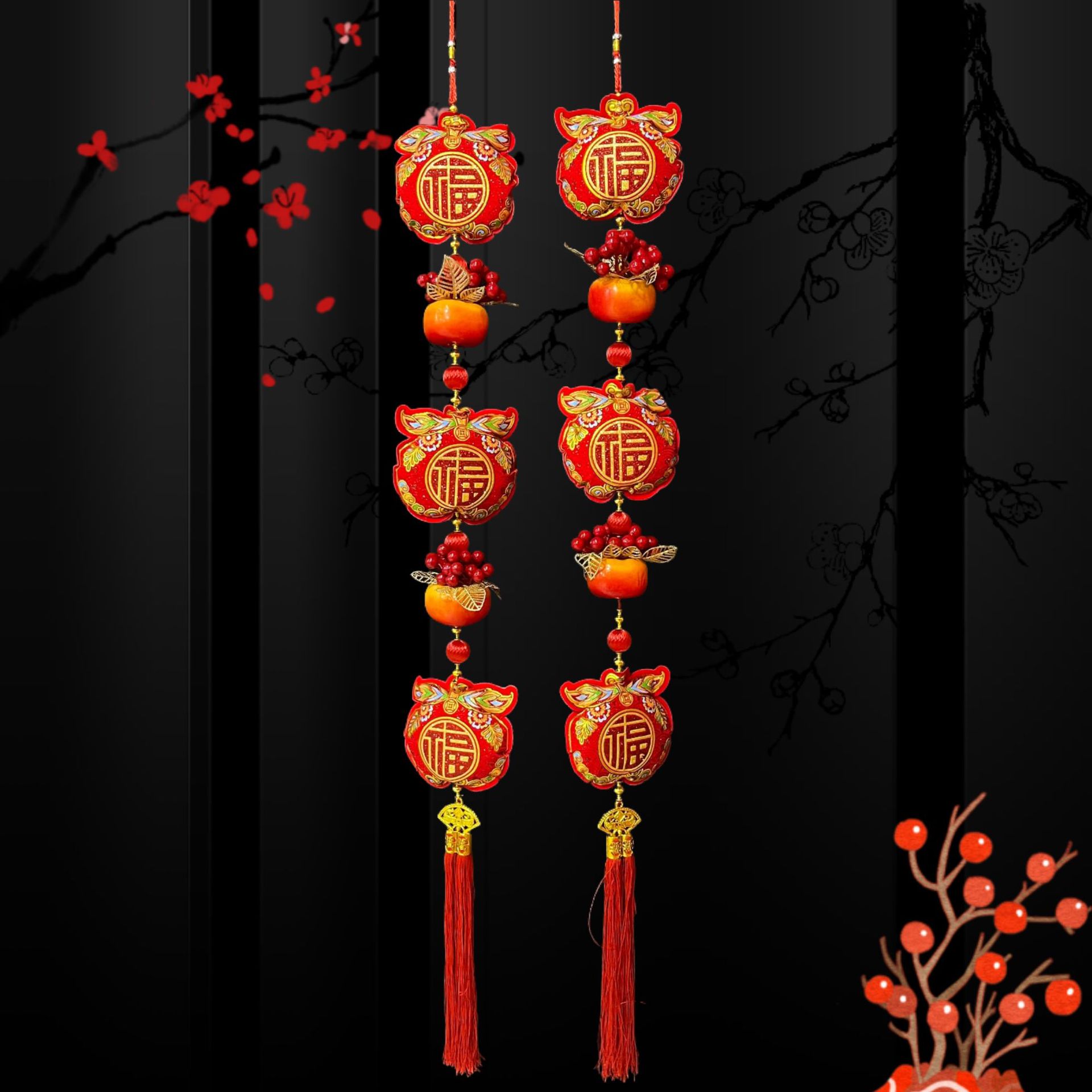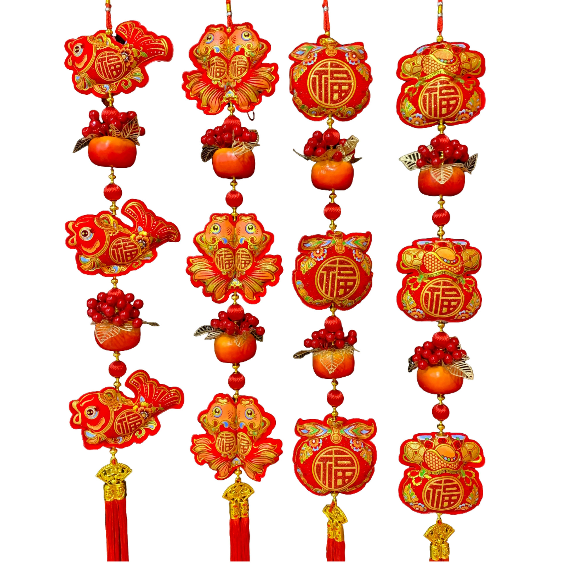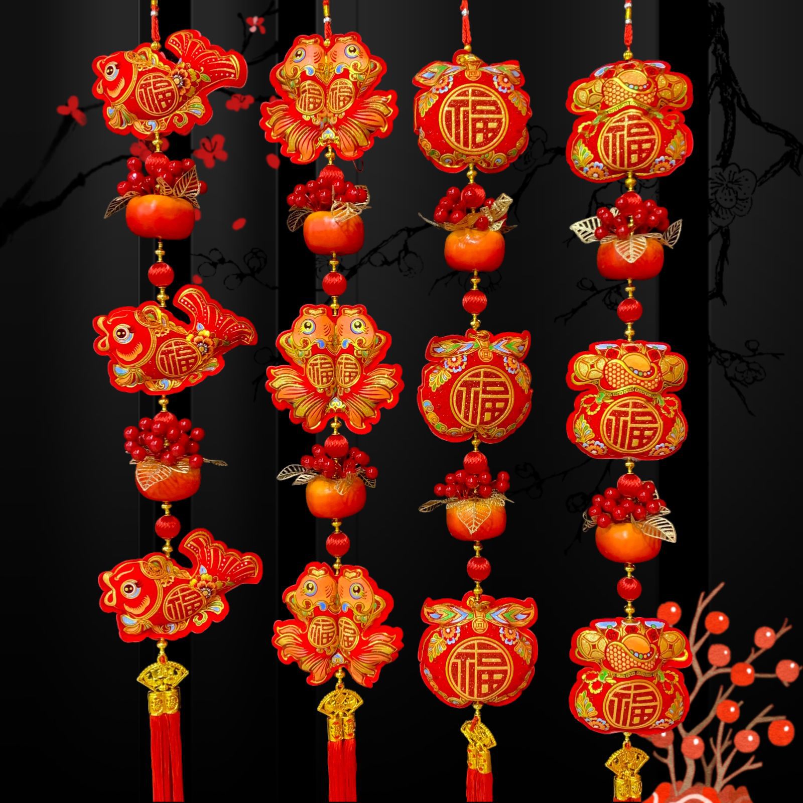 新款柿柿如意挂件3+2客厅电视背景墙挂饰新年喜庆福袋串柿子挂件