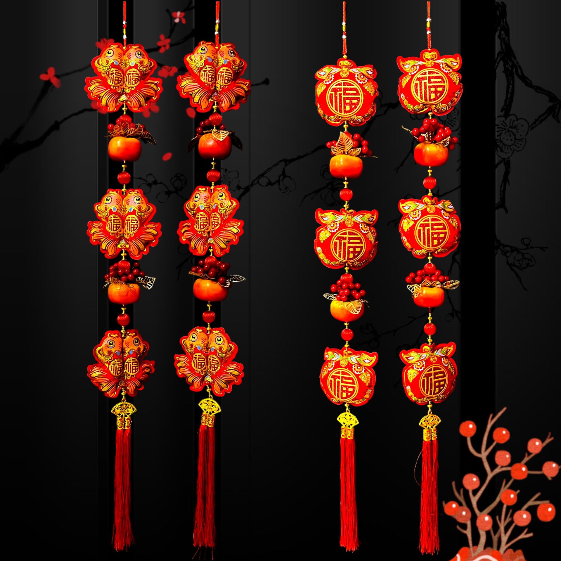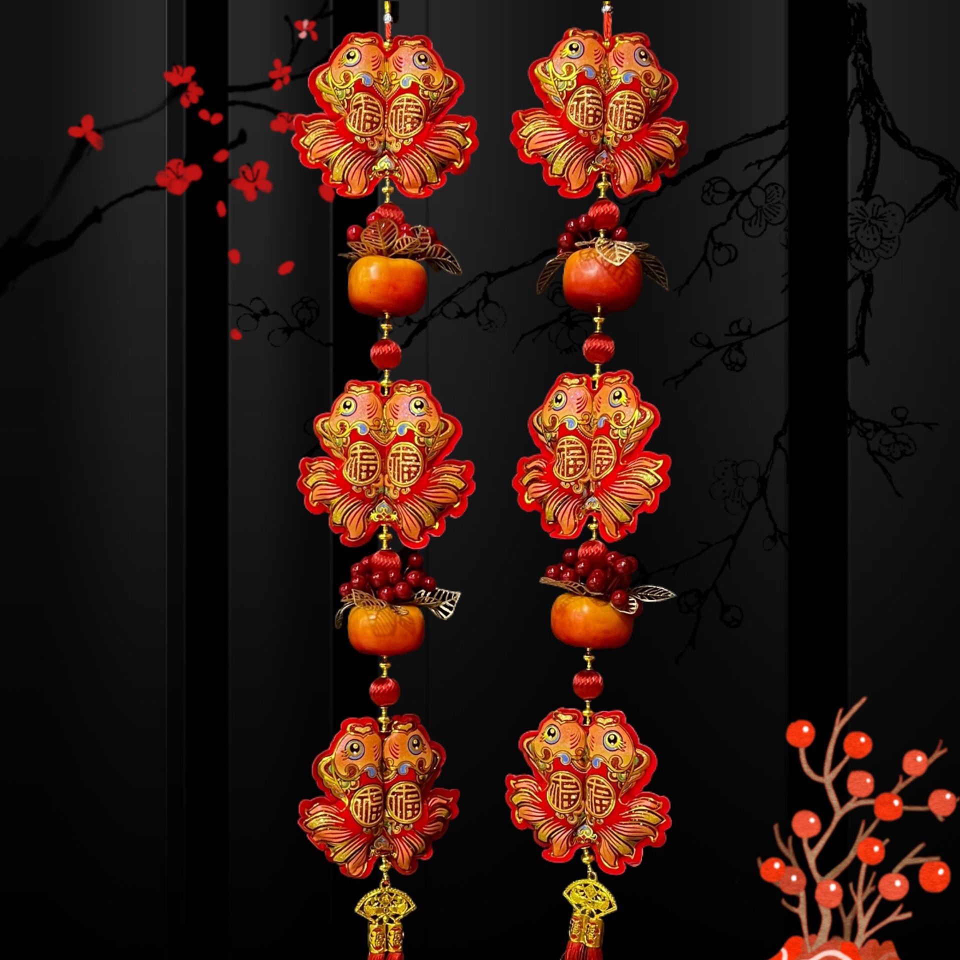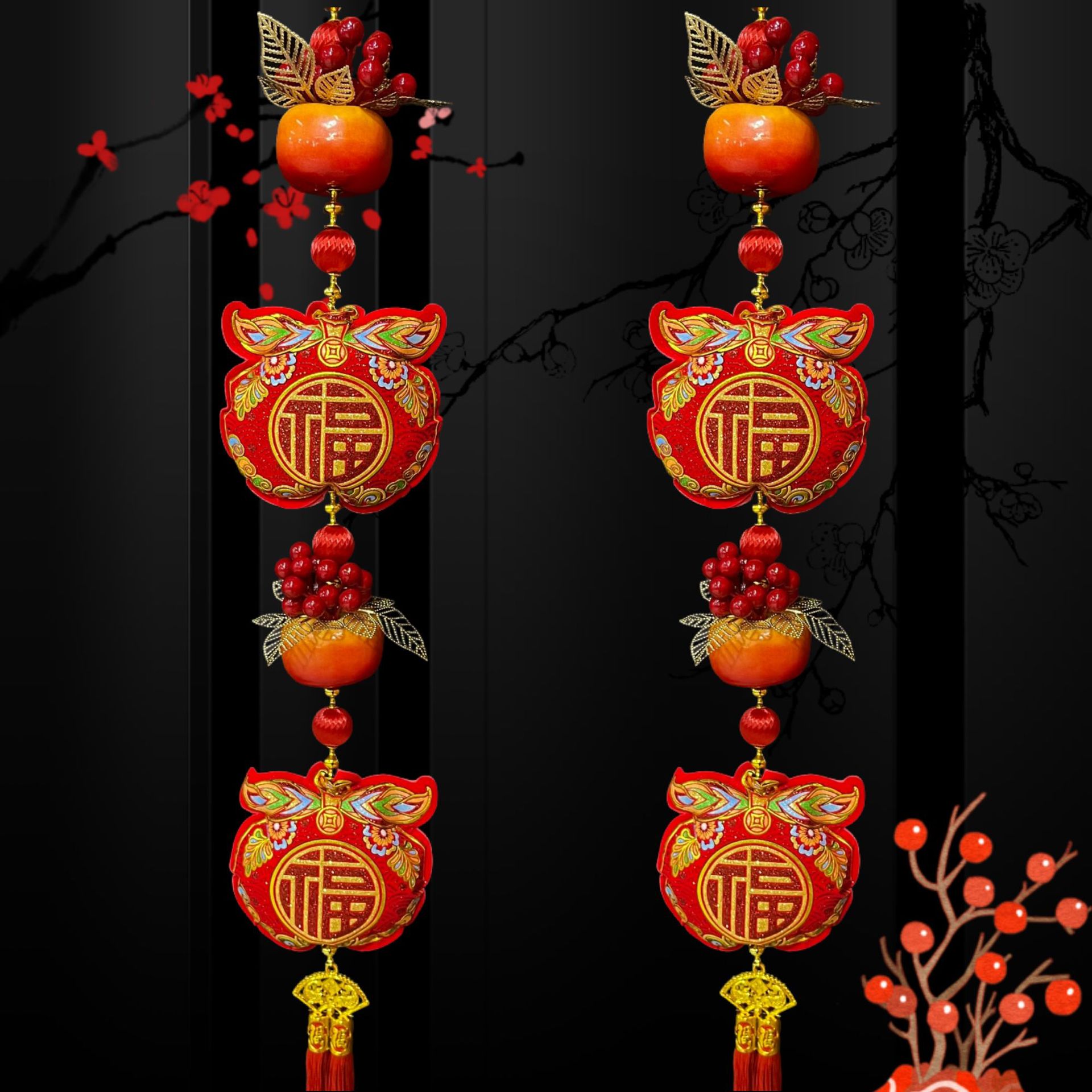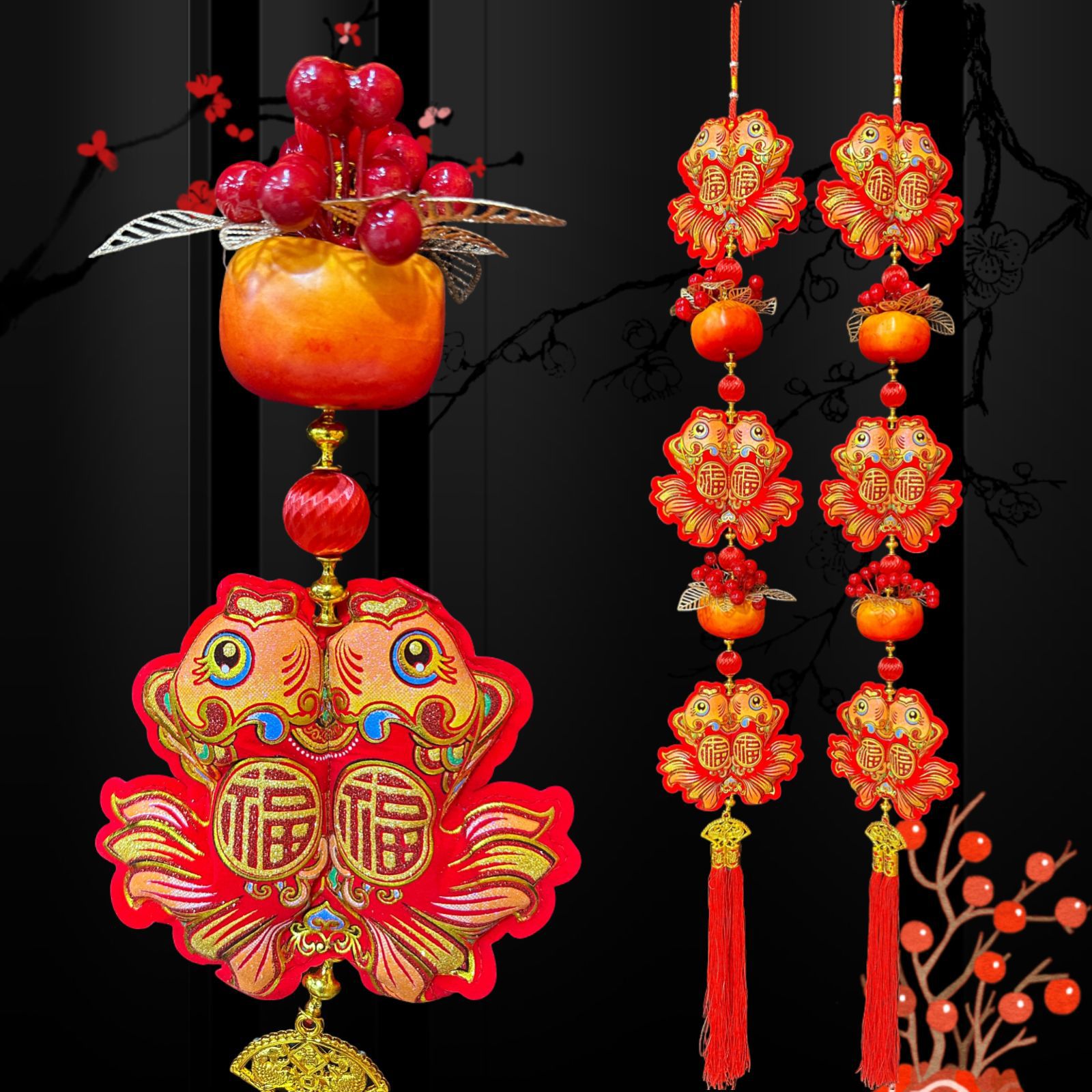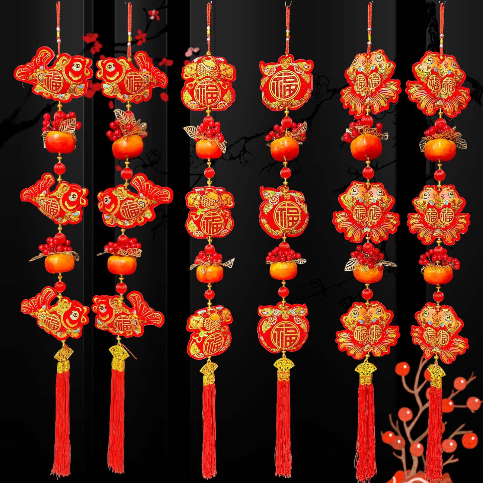 新款柿柿如意挂件3+2客厅电视背景墙挂饰新年喜庆福袋串柿子挂件
