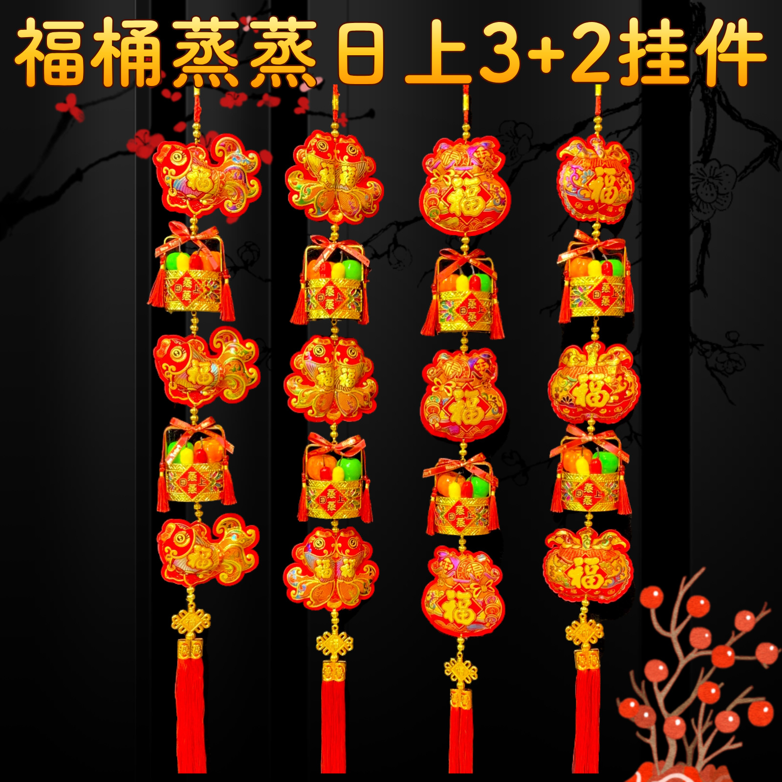 福筒蒸蒸日上长款3+2挂件客厅挂件喜庆乔迁装饰挂串春节新年挂件