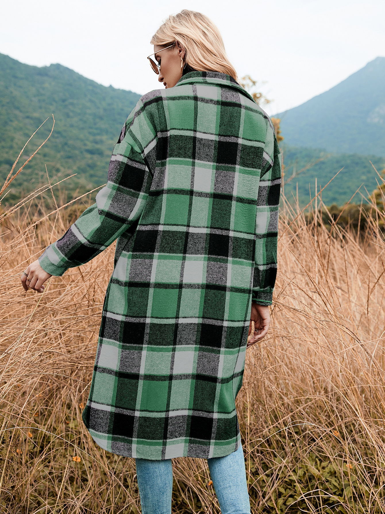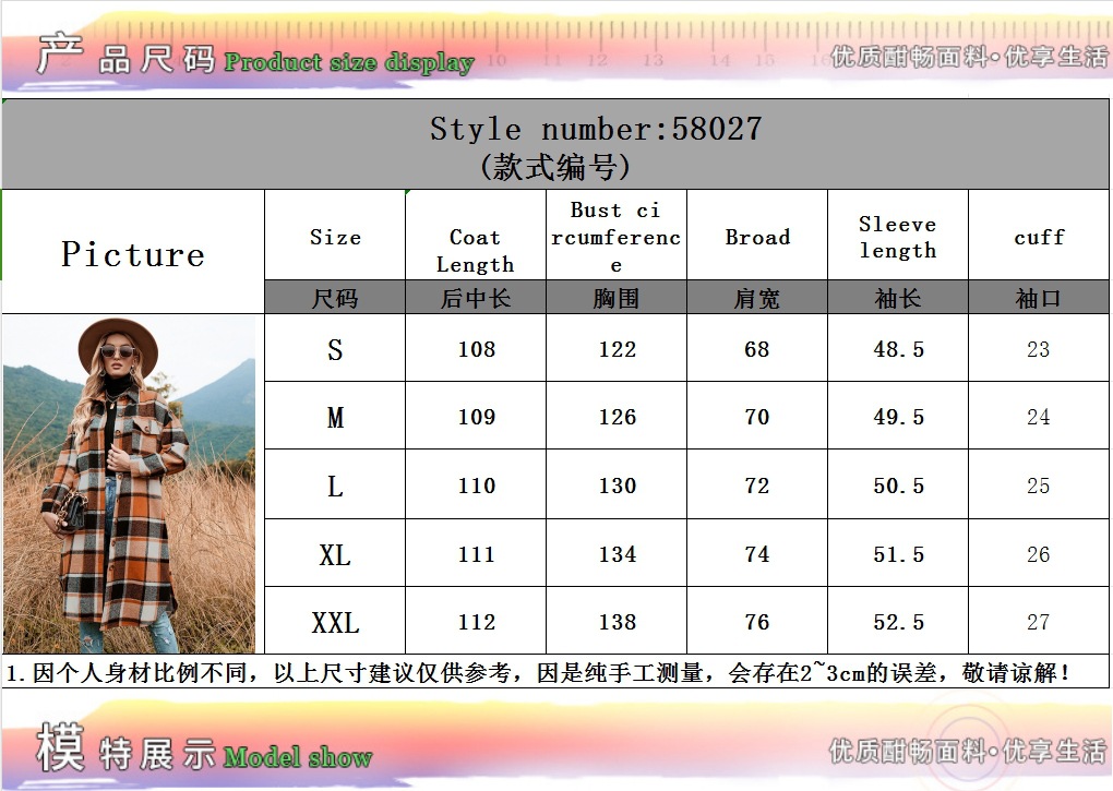 2024秋冬亚马逊欧美跨境气质风衣翻领宽松高级感长袖格子外套女装