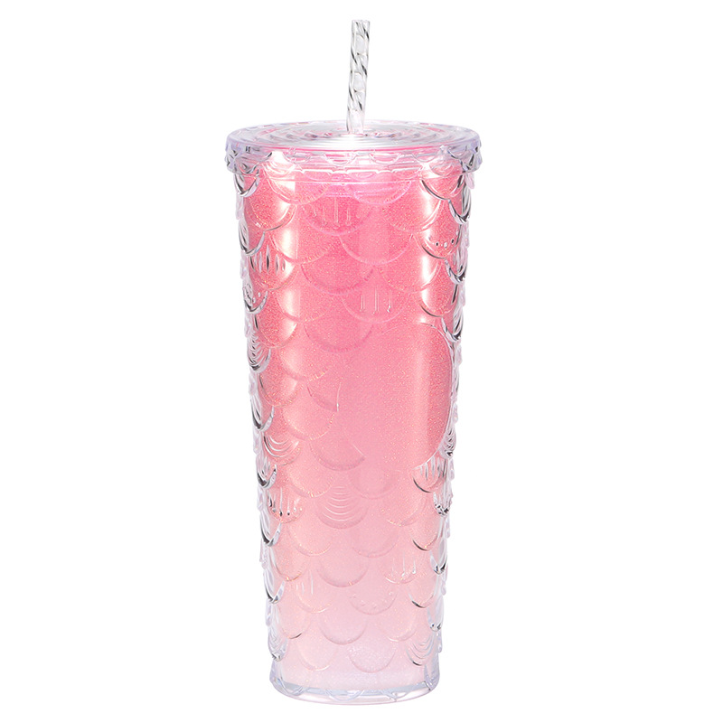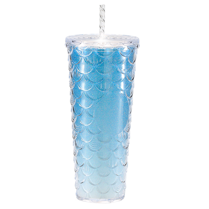 新品跨境优选大容量高颜值炫彩渐变双层创意网红新款大号鱼鳞杯
