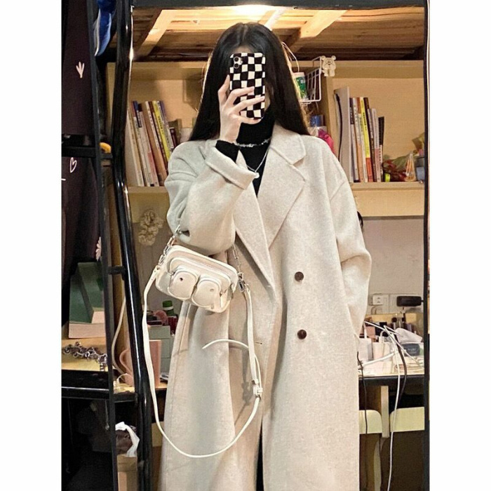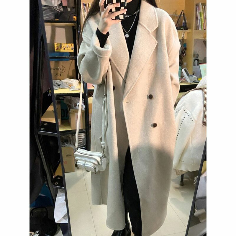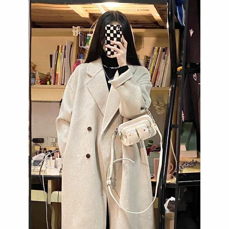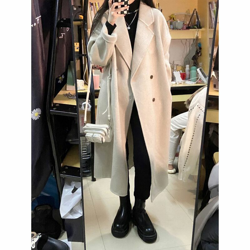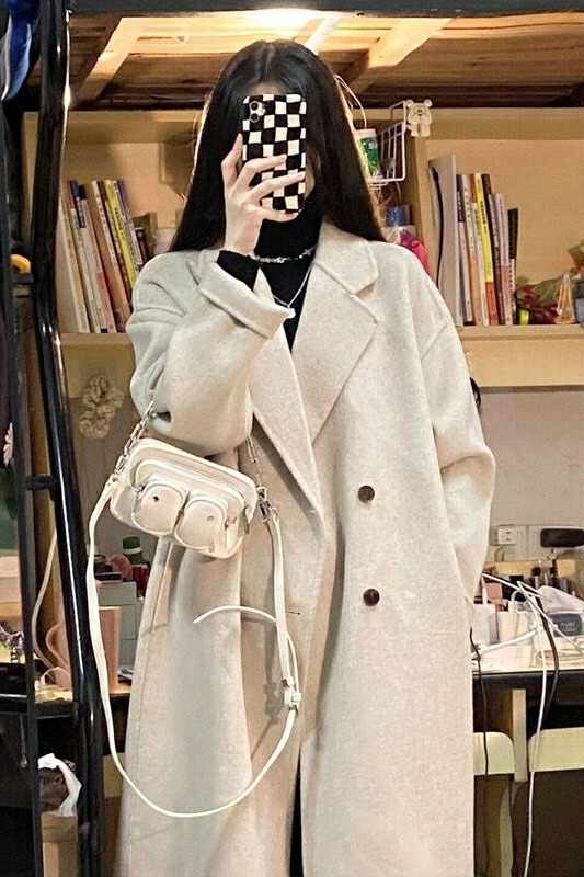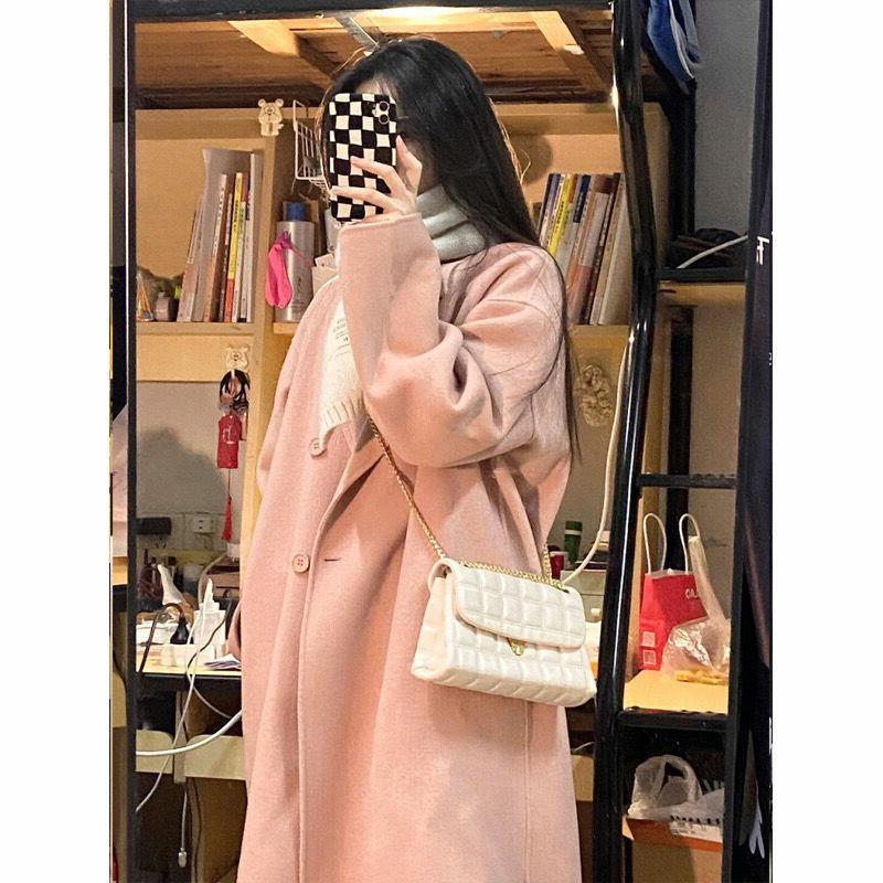 粉色毛呢薄款外套女2023秋冬新款呢子大衣赫本风小个子韩版温柔风