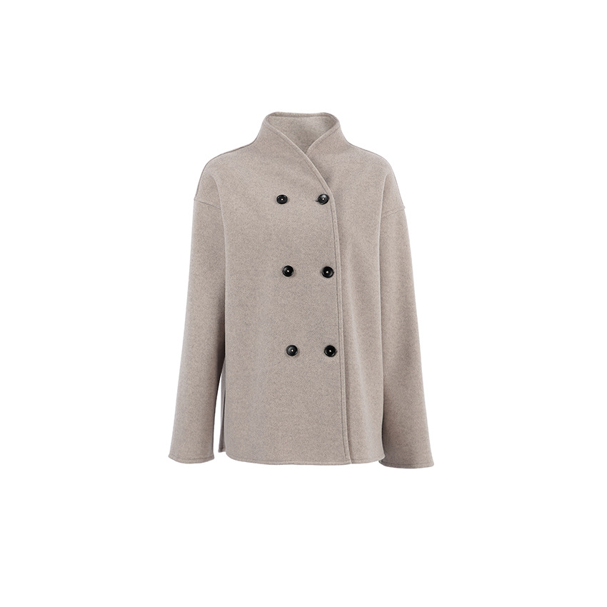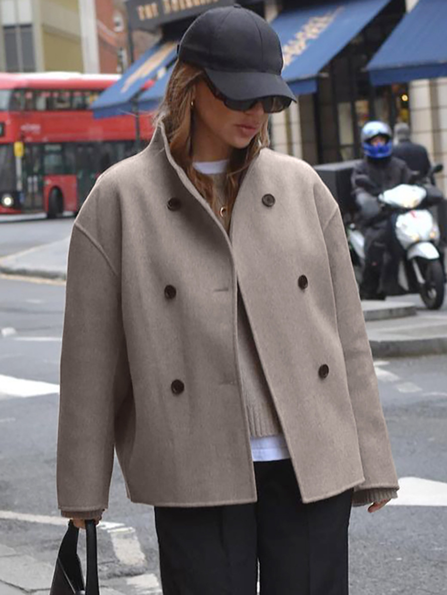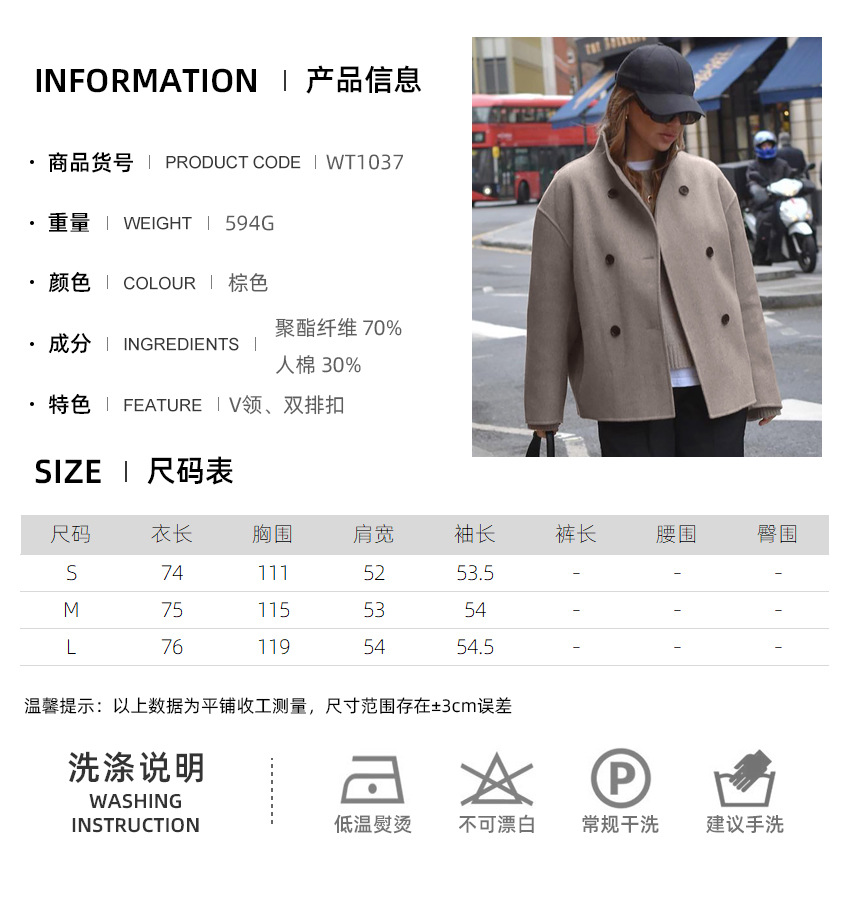 2023年秋冬新款复古棕色毛呢外套女装V领通勤保暖外搭欧美亚马逊