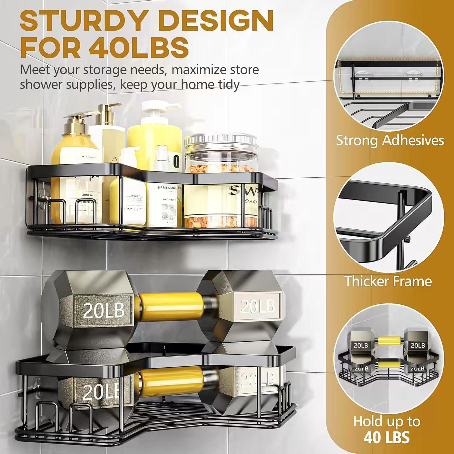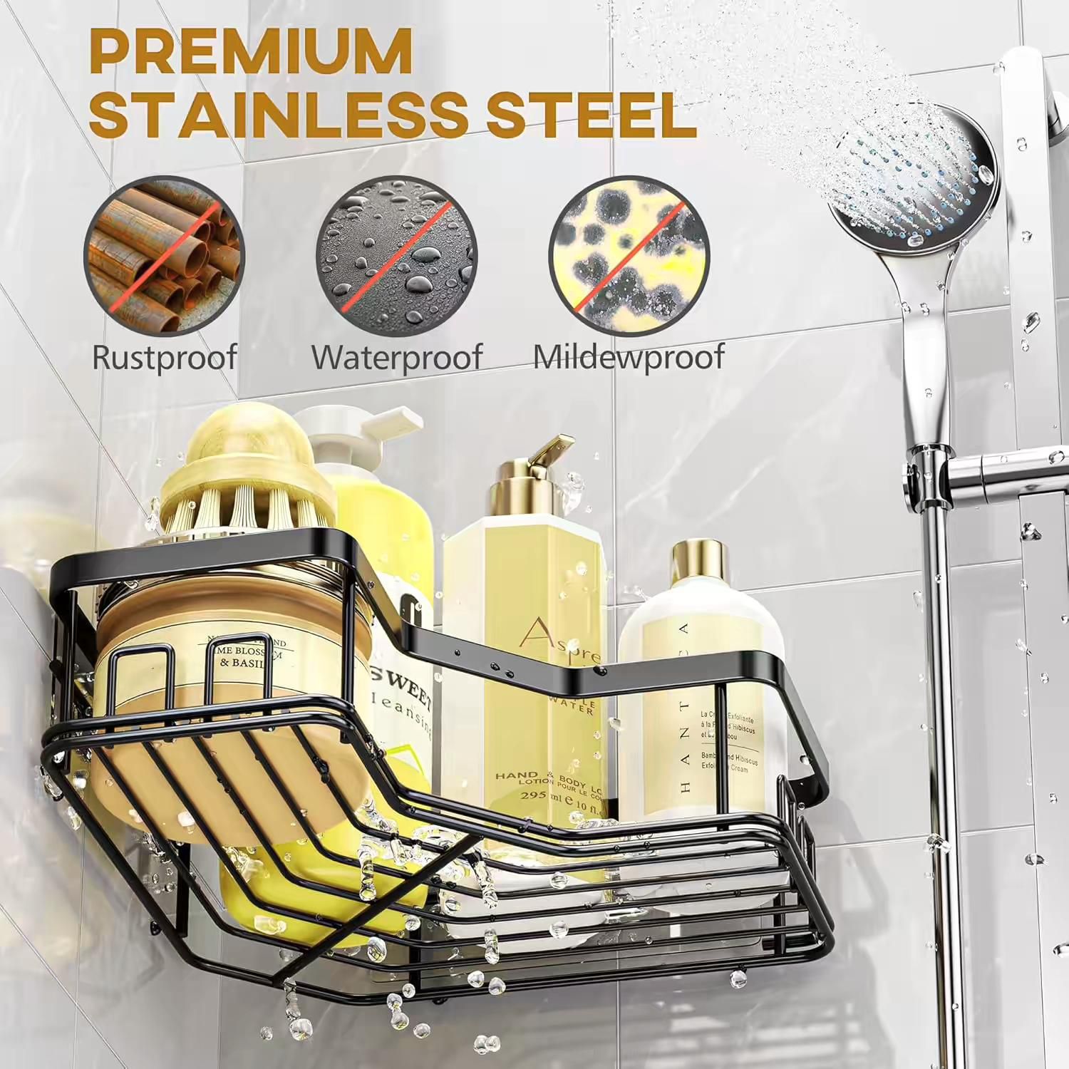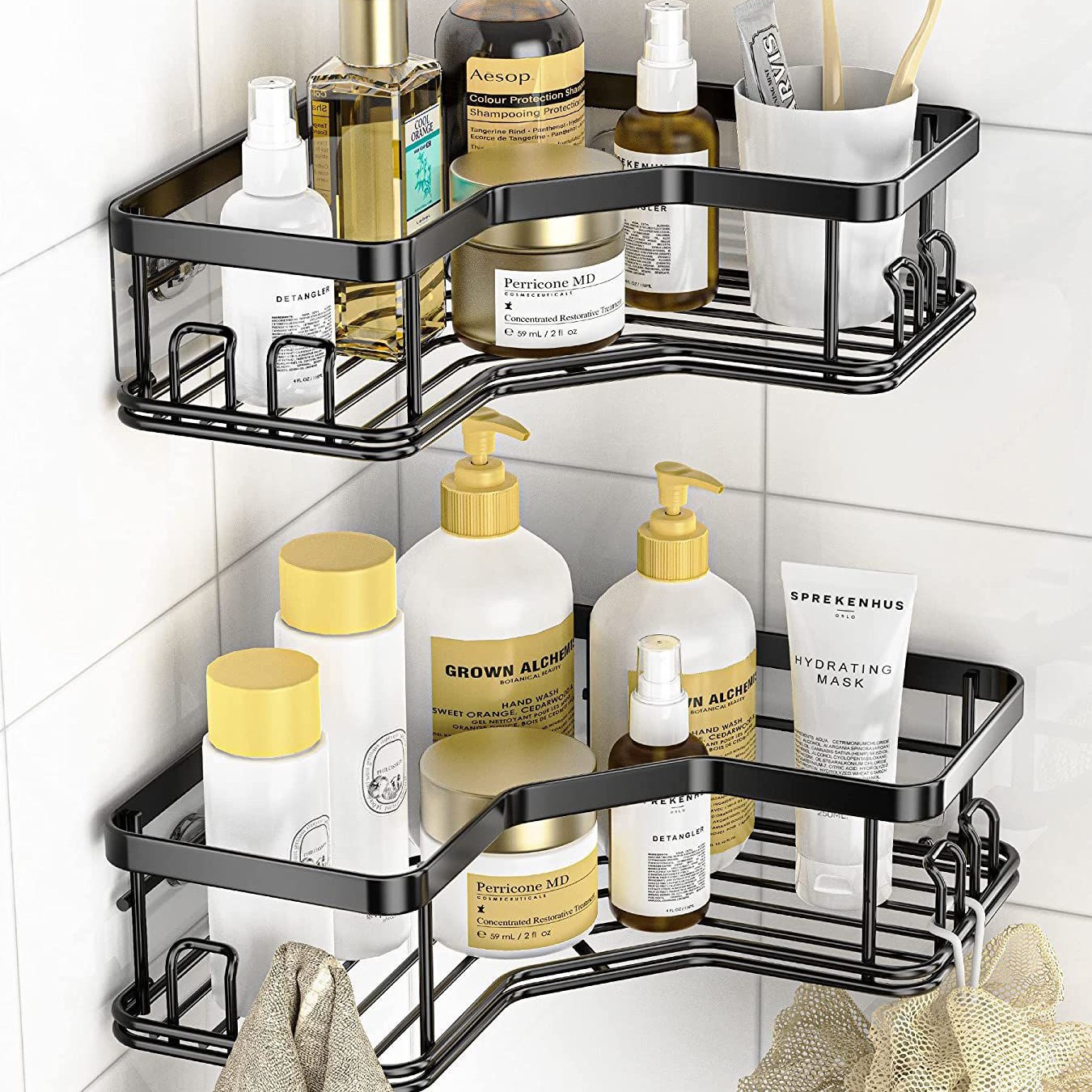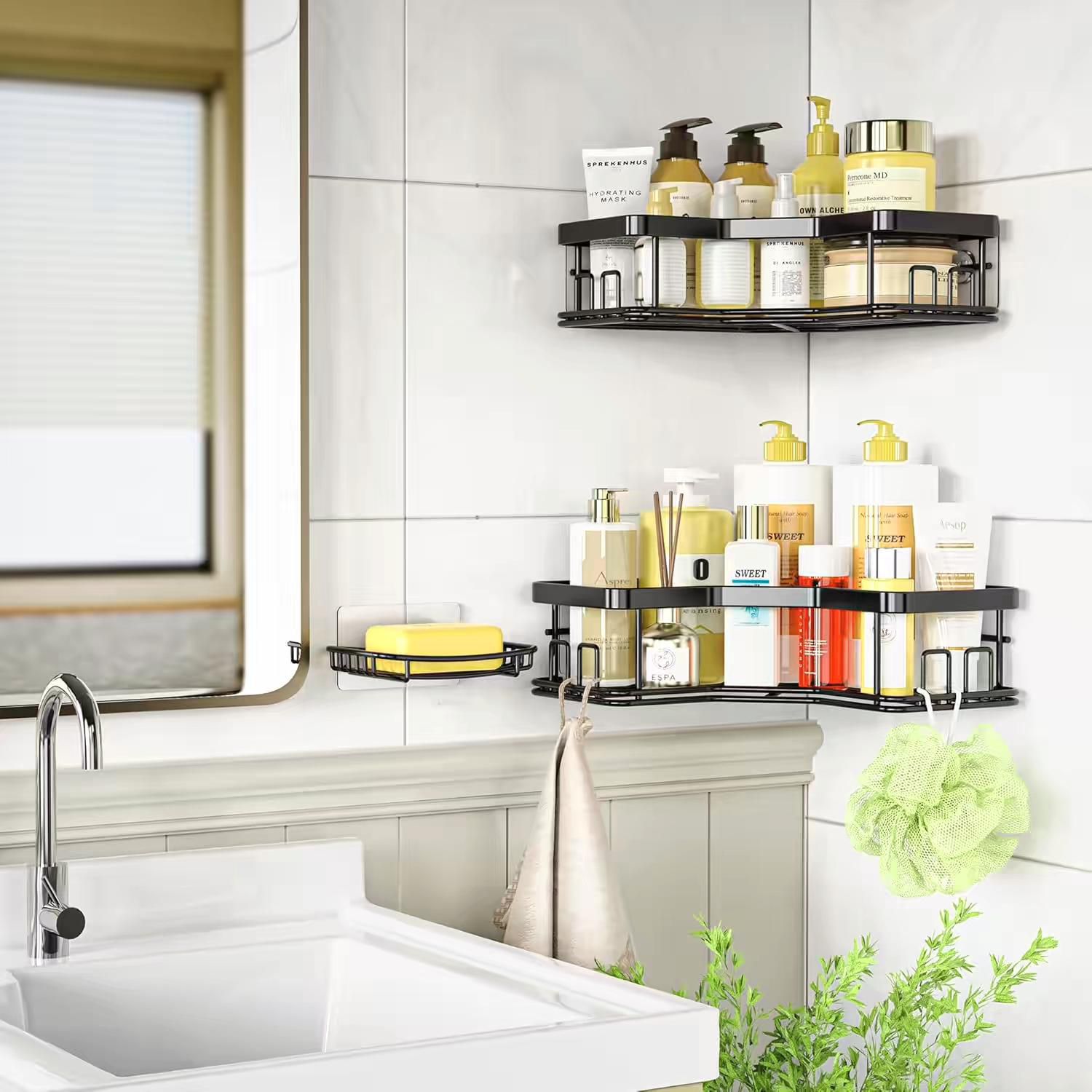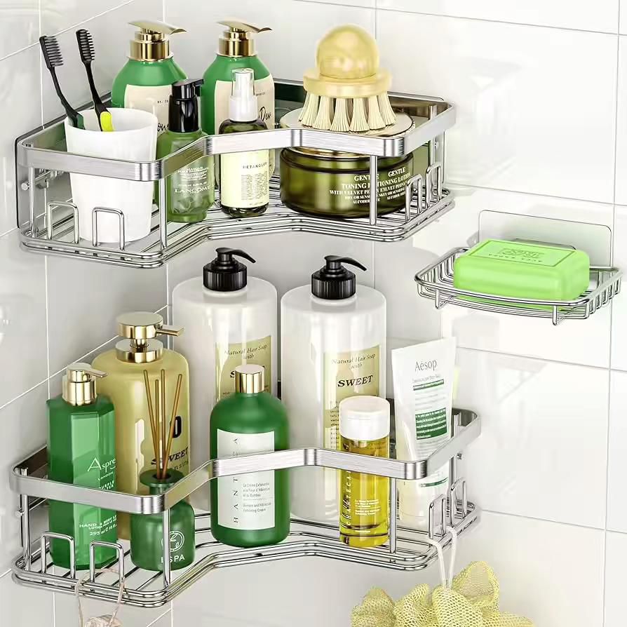 亚马逊不锈钢浴室厨房三角架整理架免打孔卫生间墙上淋浴房收纳架