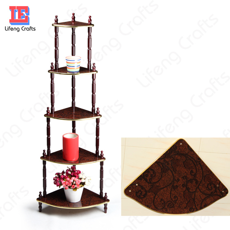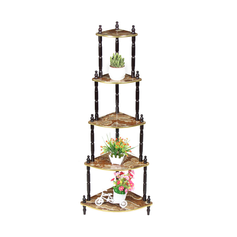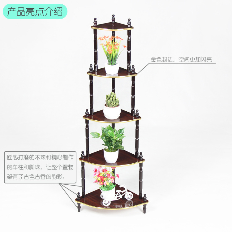 木制落地三角架五层角落置物架转角收纳架花盆架(每箱6个装)