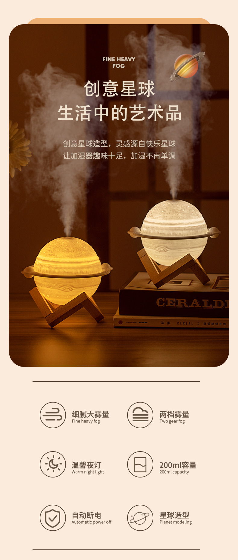 创意木星迷你办公室喷雾补水喷雾星球小夜灯加湿器USB小型加湿器
