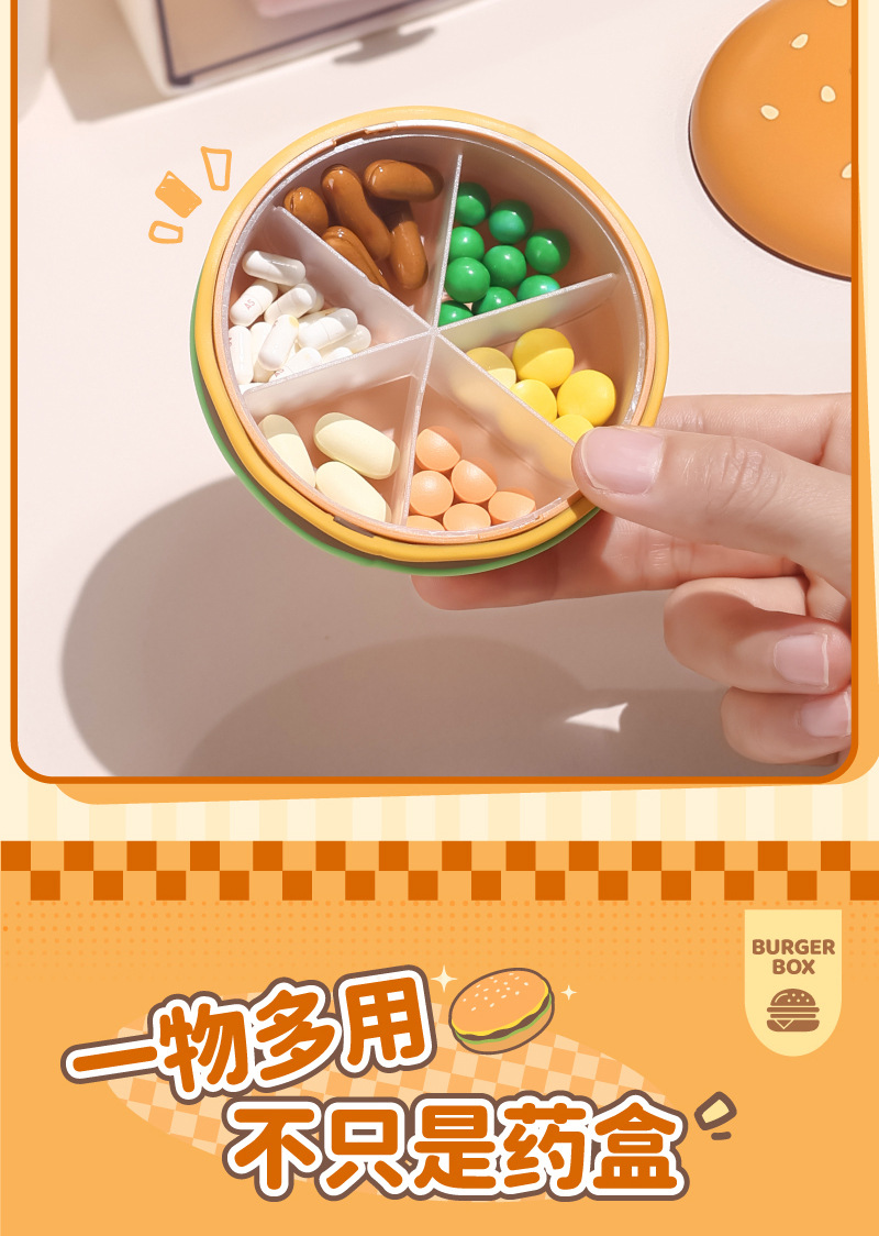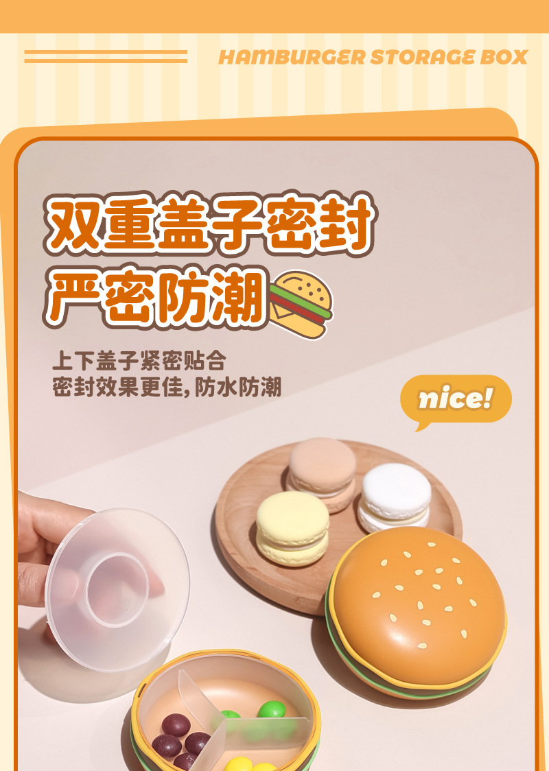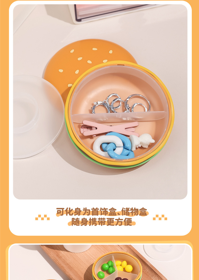 汉堡收纳盒迷你便携式药盒随身分装盒旅行分格收纳盒家用首饰盒