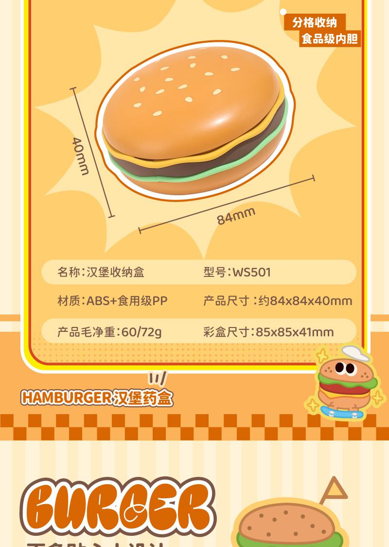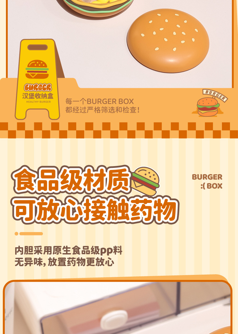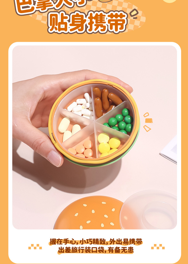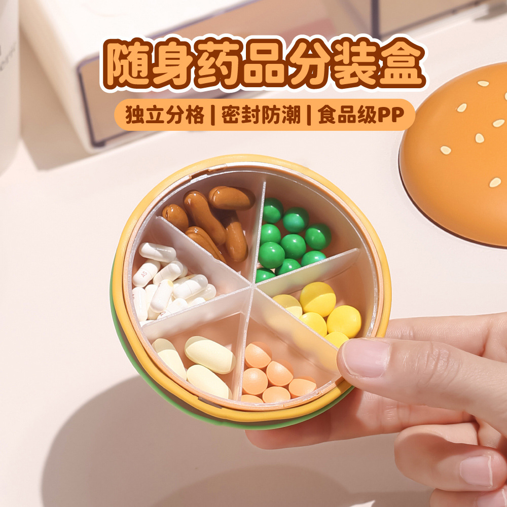 汉堡收纳盒迷你便携式药盒随身分装盒旅行分格收纳盒家用首饰盒