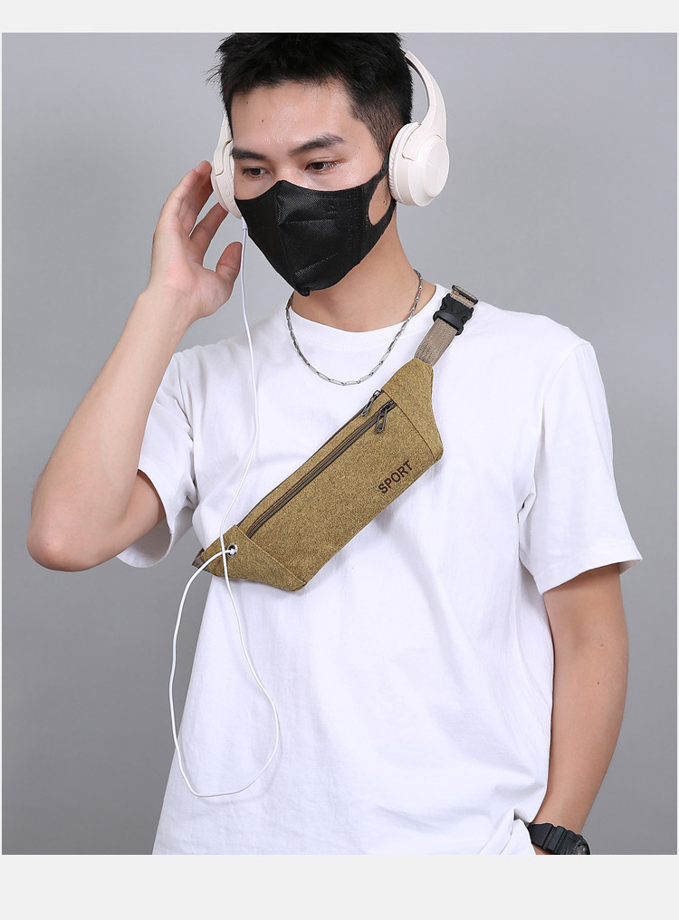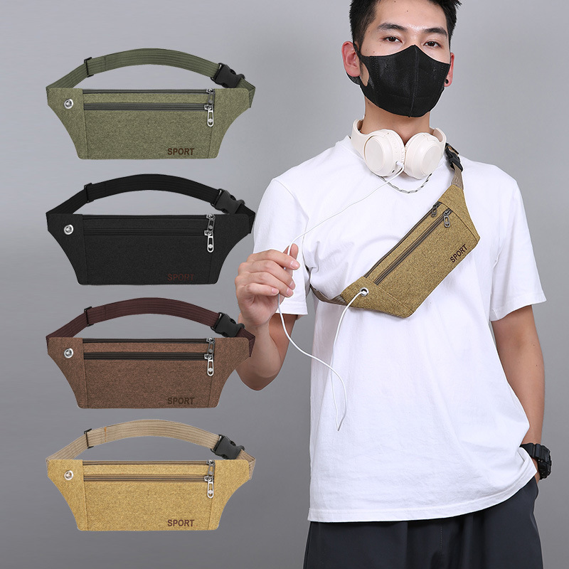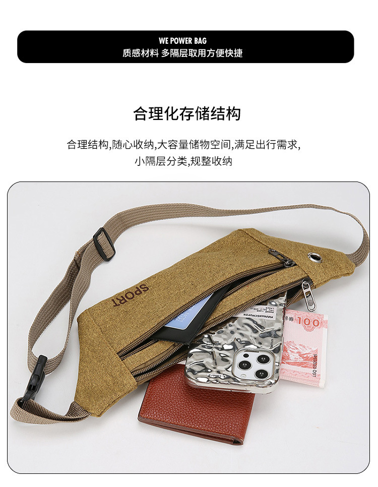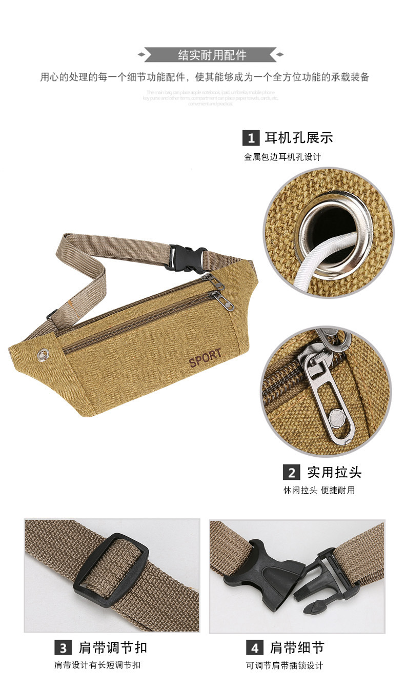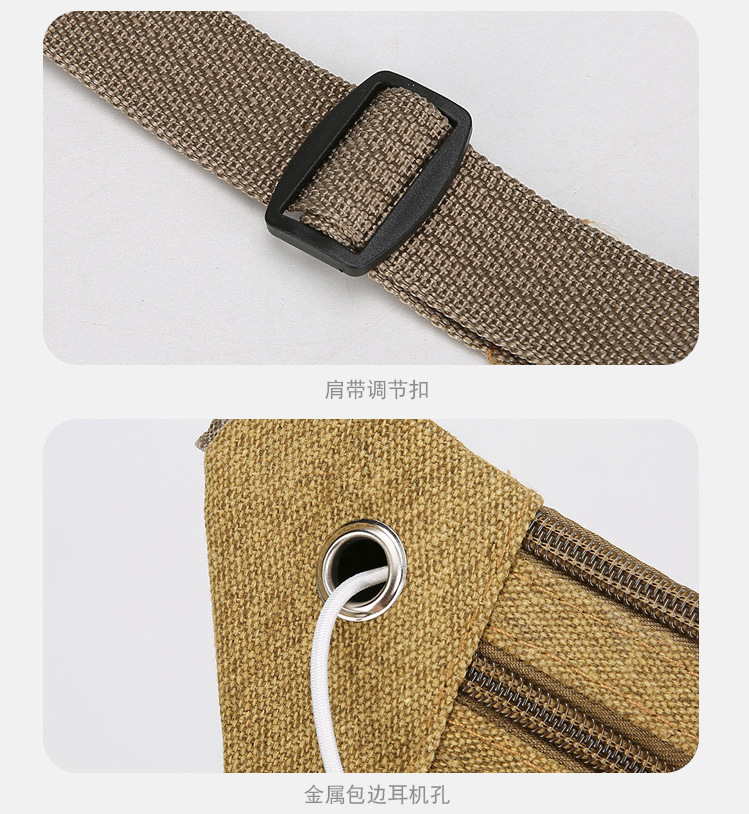 厂家批发三层运动手机3*3帆布腰包大容量多功能户外贴身跑步休闲