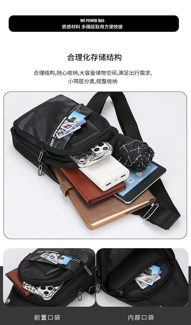 男士休闲百搭胸包时尚商务斜挎潮流胸包登山骑行斜挎胸前包批发