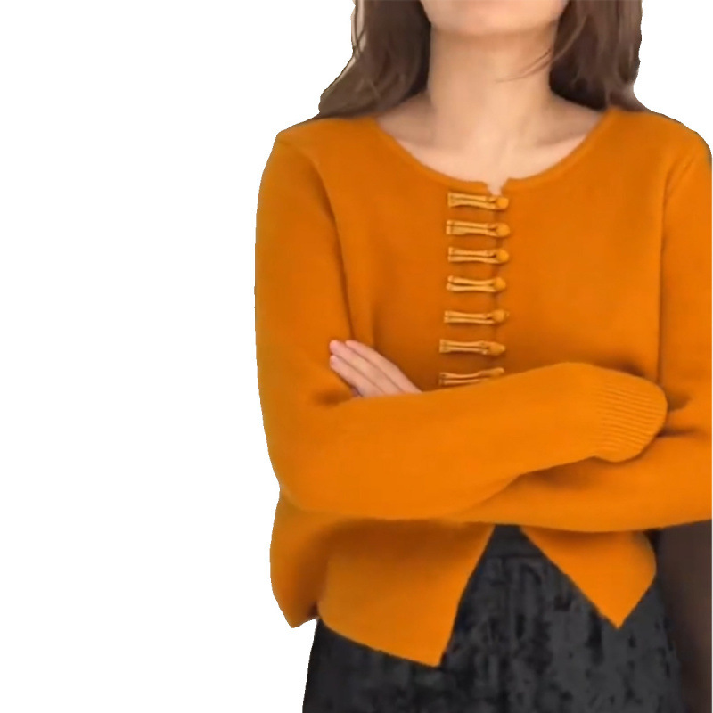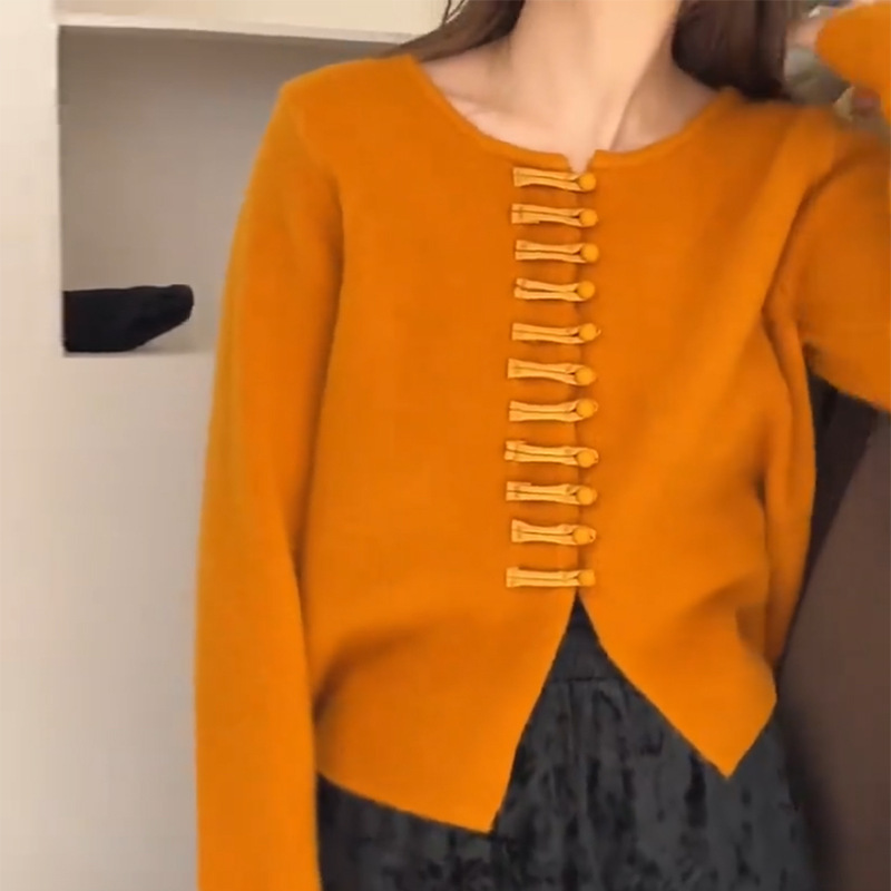 法式时尚设计感轻熟慵懒风橘色毛衣女装2023秋冬新款气质针织开衫