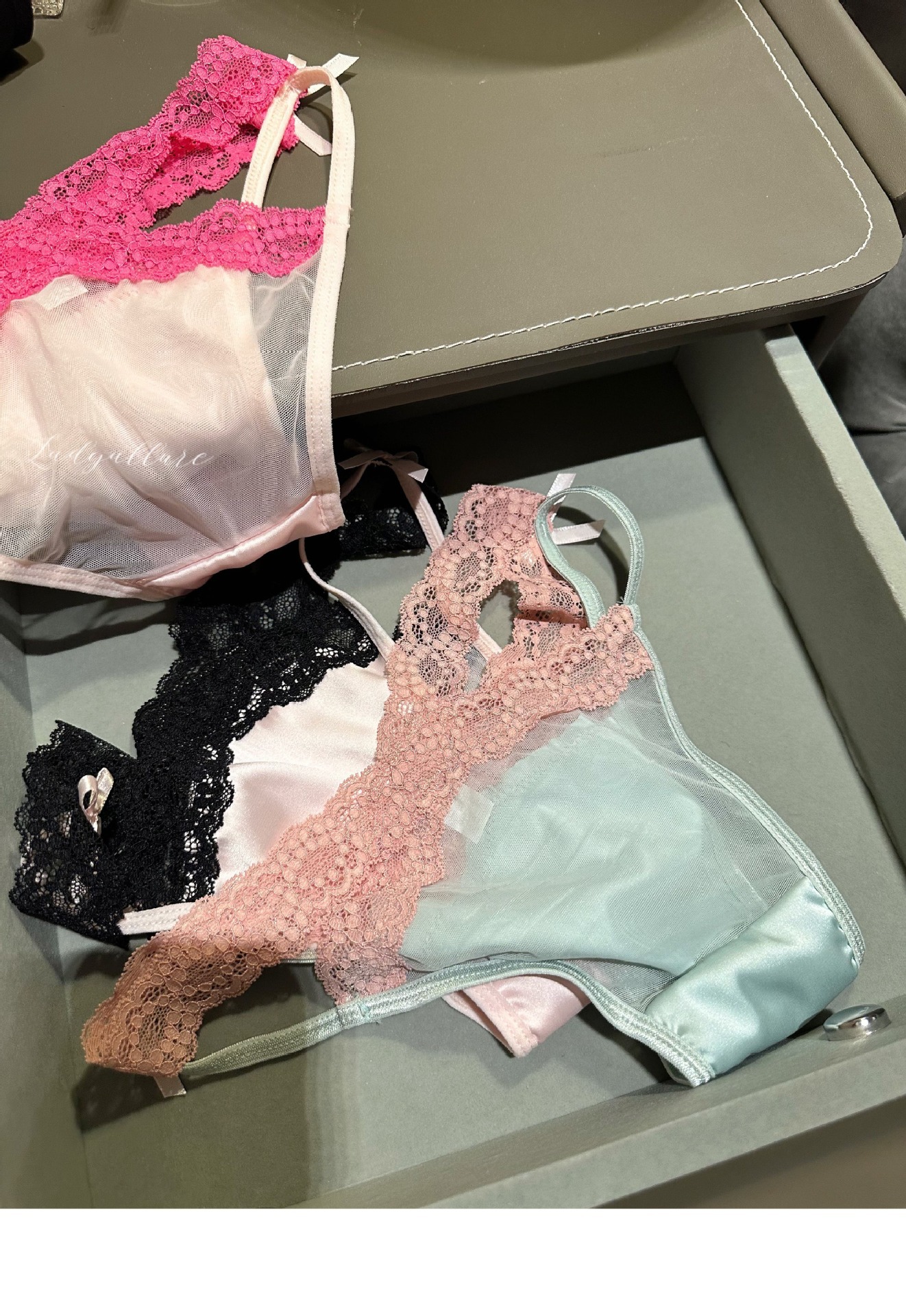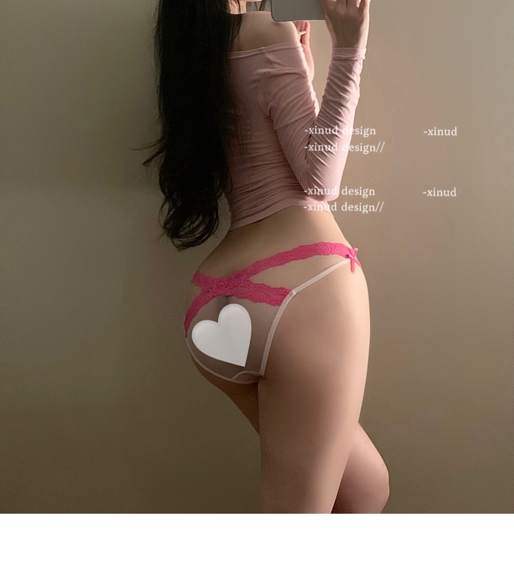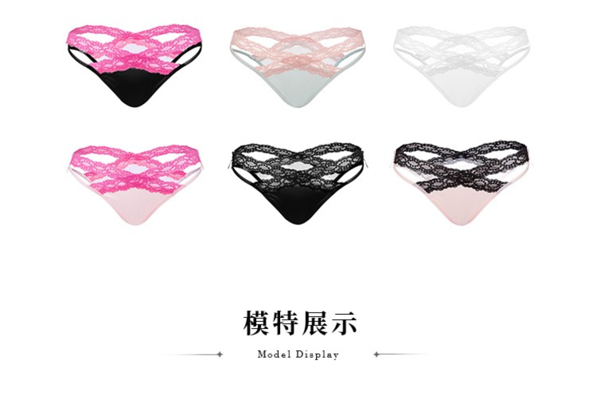 高级感绸面透明网纱拼接交叉镂空蕾丝内裤女士性感纯欲半包法式
