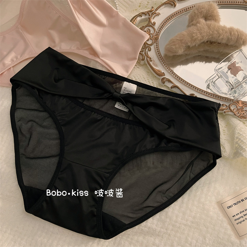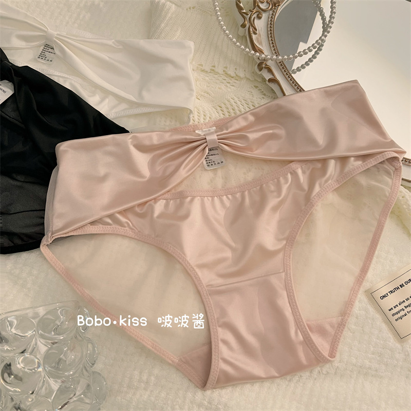夏季薄款性感纯欲风缎面镂空网纱内裤女生透气中腰舒适女士三角裤