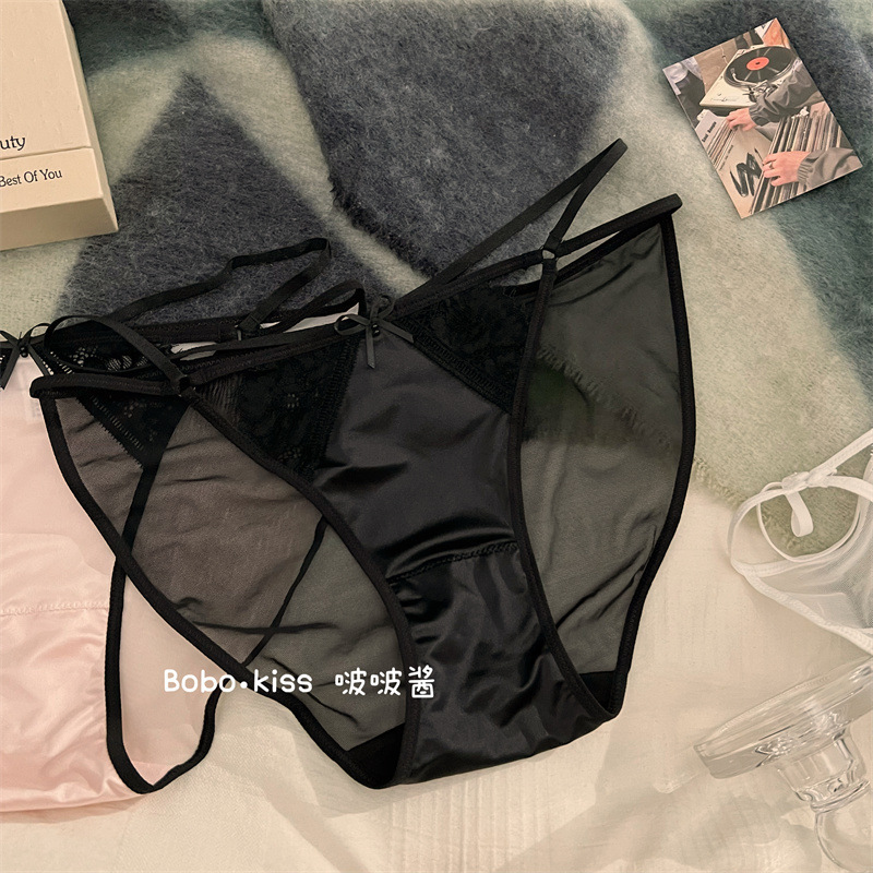 法式缎面纱网细带性感蕾丝女士内裤纯欲风时尚简约少女三角裤批发