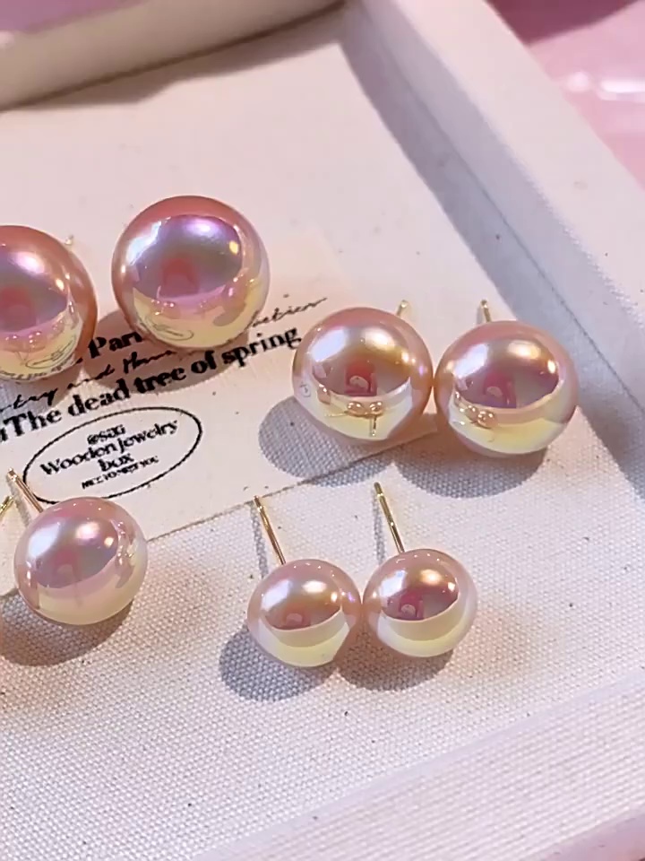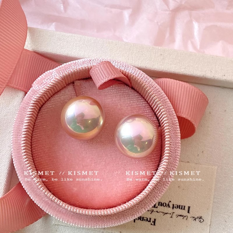 轻奢小众高级感施家珍珠耳环百搭气质耳饰品樱花粉馒头珍珠耳钉女