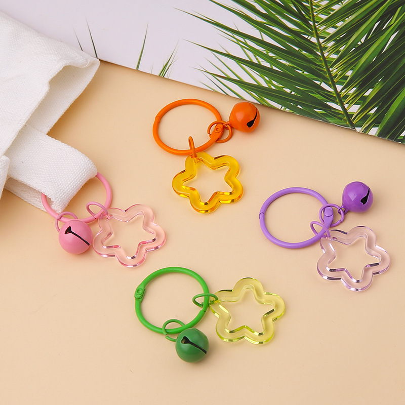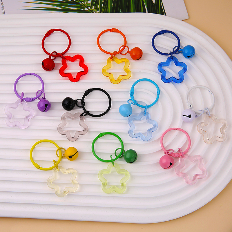 小清新亚克力透明五角星铃铛钥匙扣挂件多巴胺女包包DIY挂饰配件