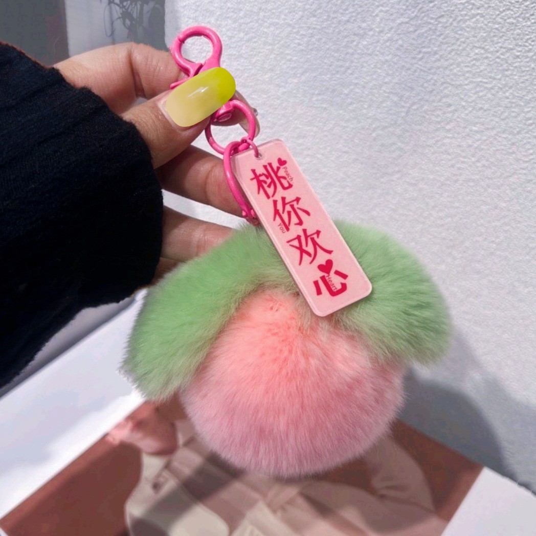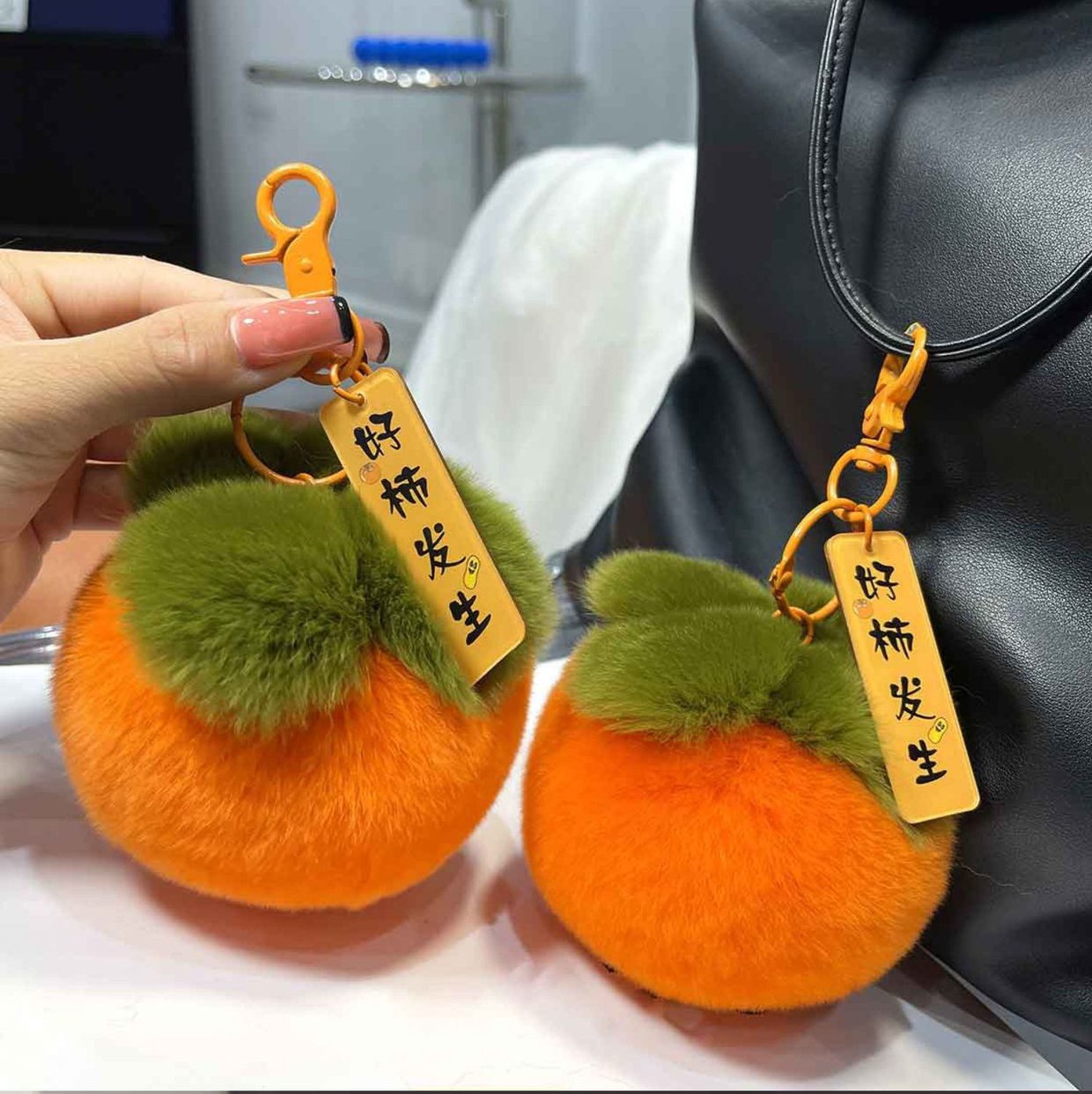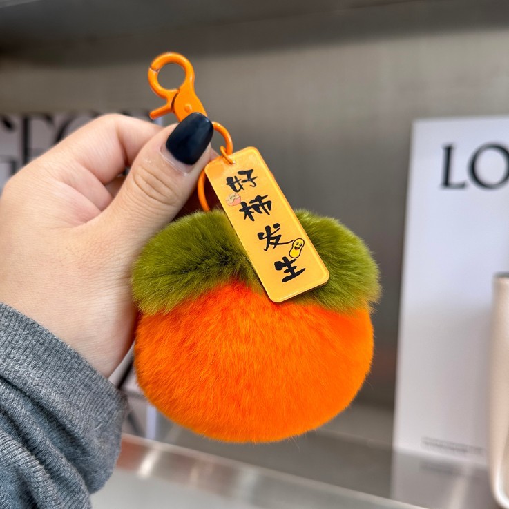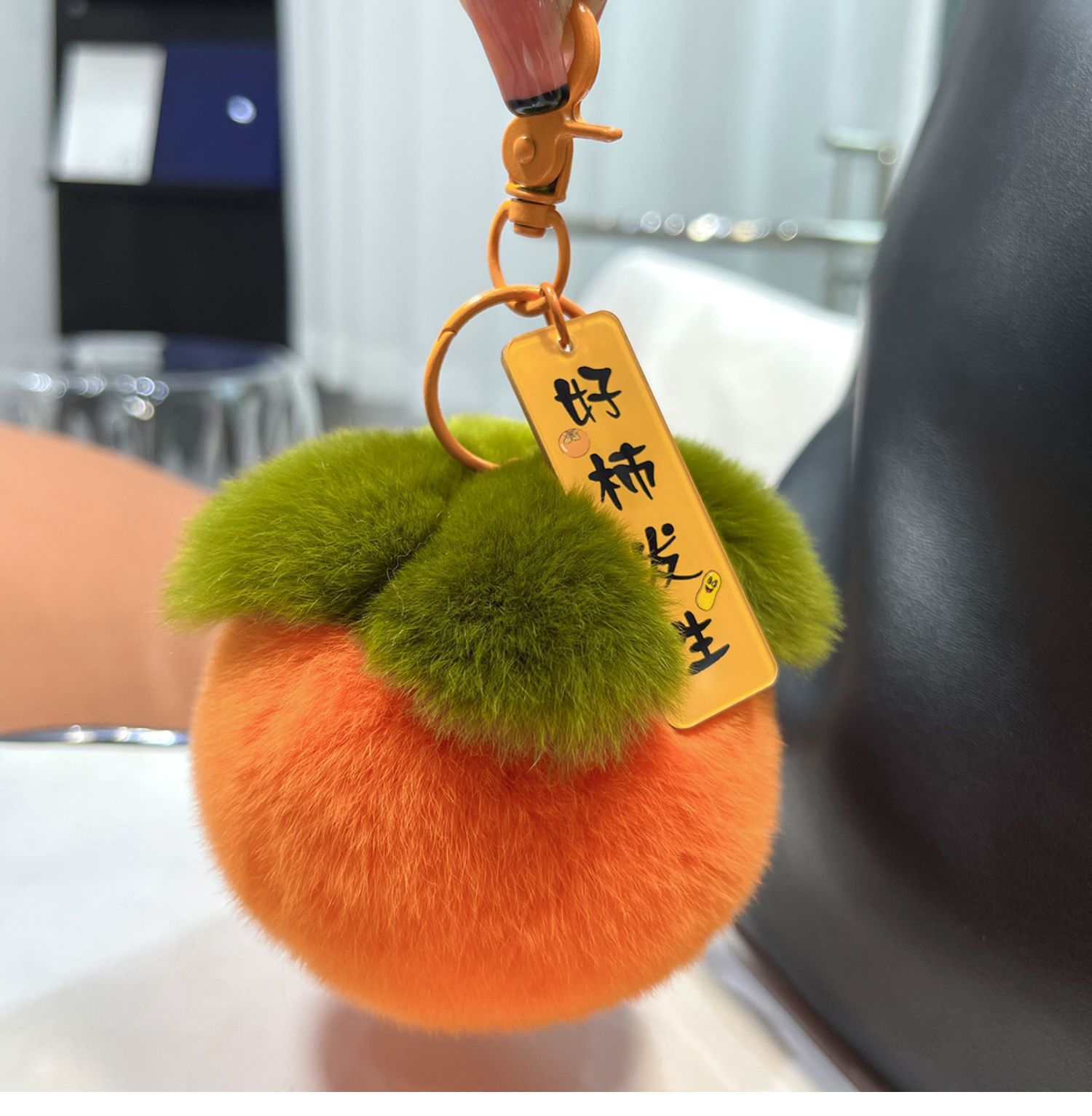新年好发生獭兔毛柿子挂件饰品汽车钥匙扣包包挂饰可爱毛绒创意