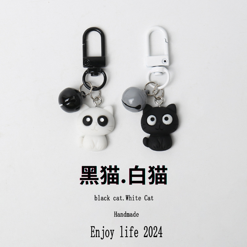 黑白小猫可爱百搭钥匙扣挂件背包书包挂饰日常简约少女饰品