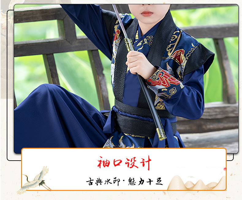 男童汉服秋季新款儿童古装男孩长袍国学唐装公子少爷古风演出代发