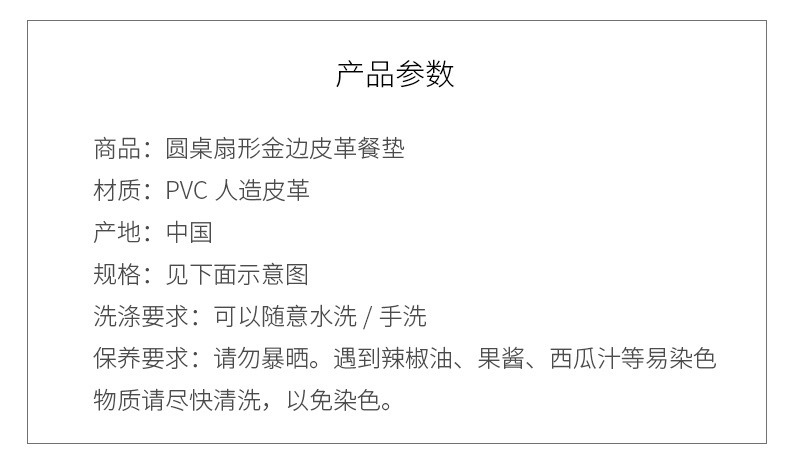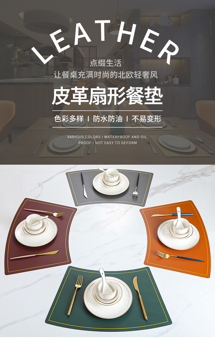 北欧风家用皮革餐垫酒店餐厅西餐垫隔油隔水隔热扇形餐桌垫餐盘垫