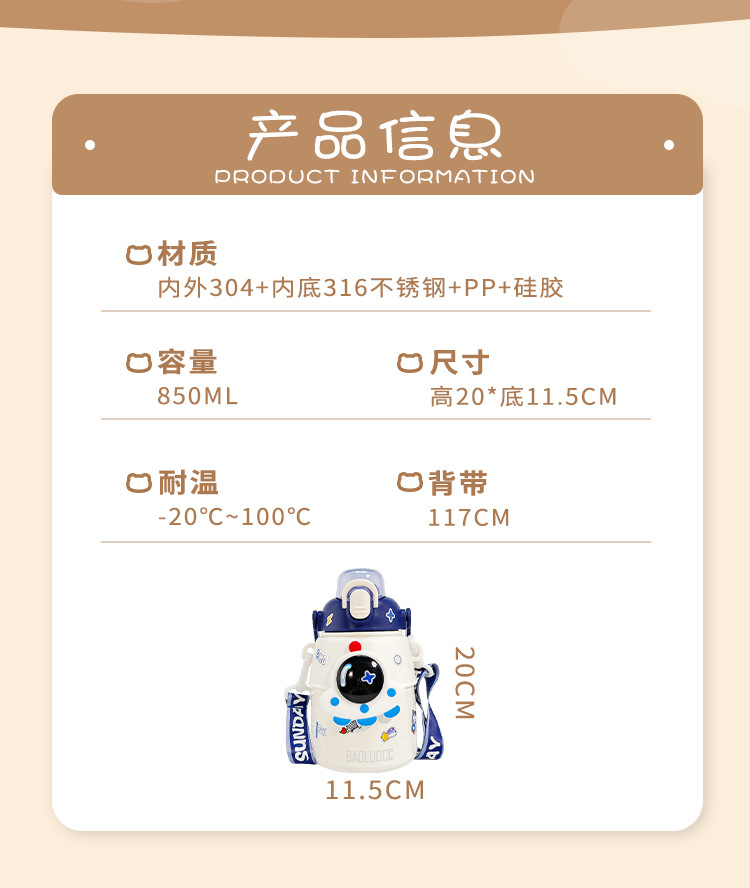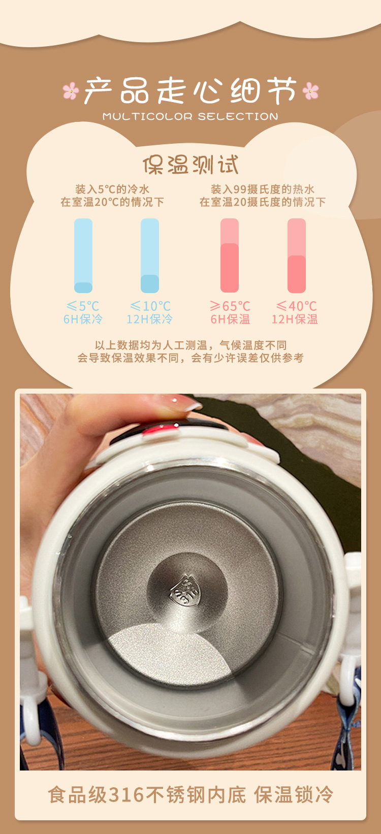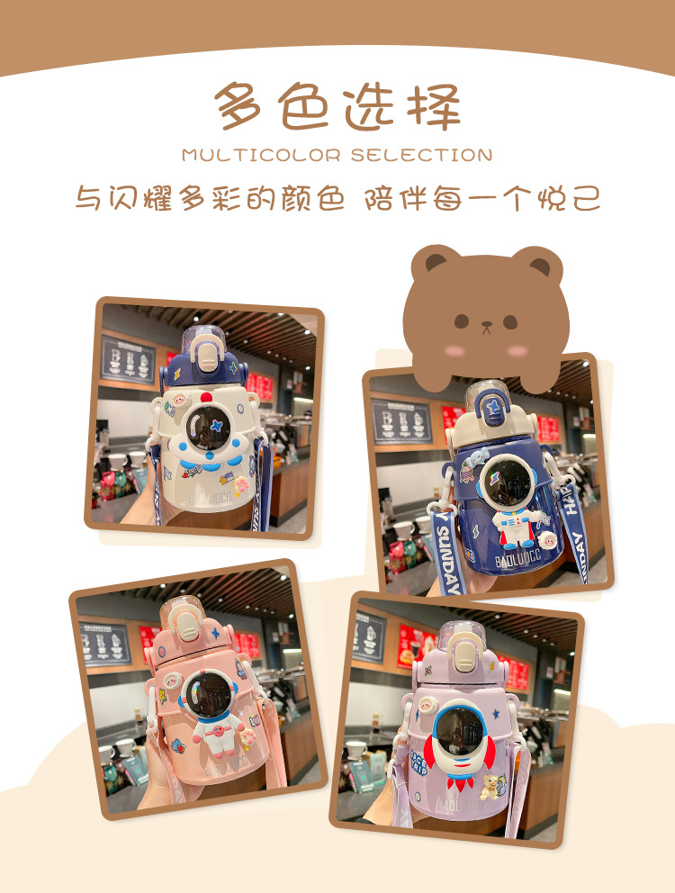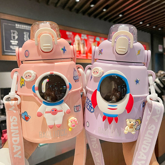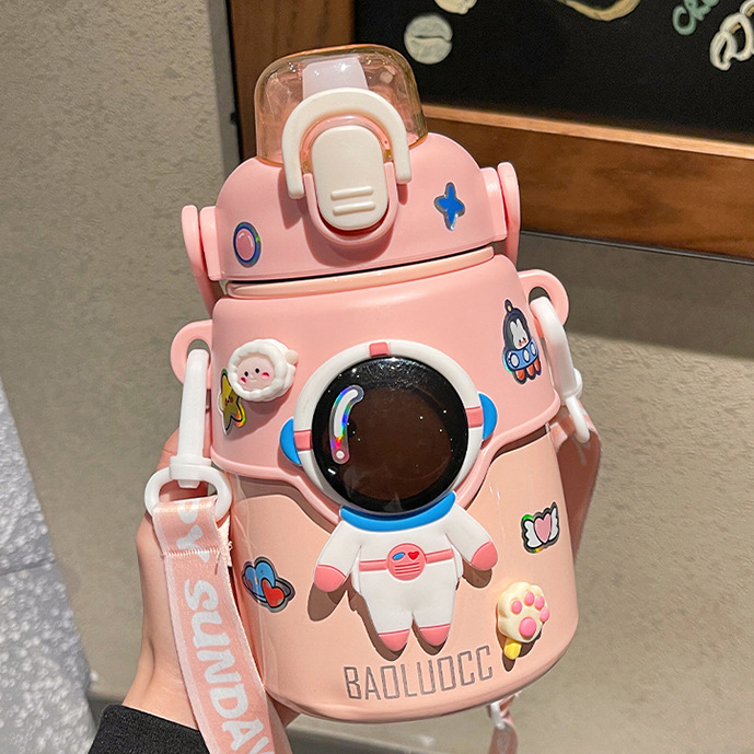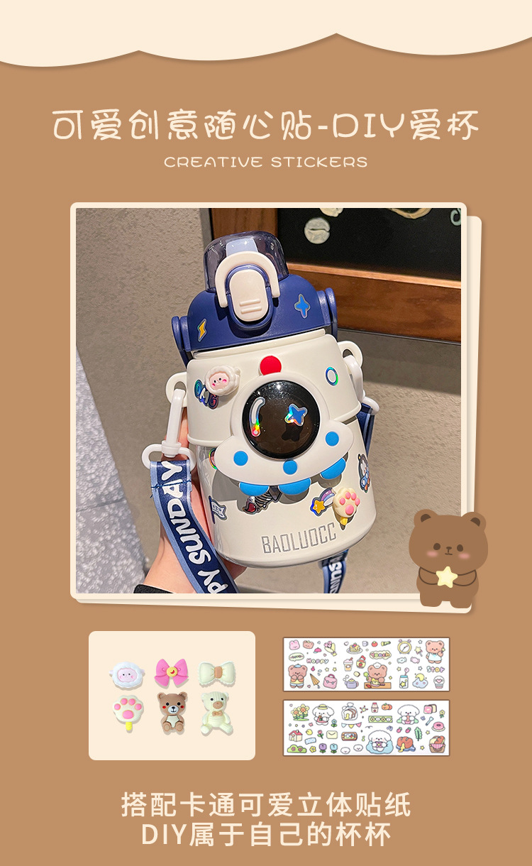 可爱超萌儿童保温杯女生高颜值316学生吸管水壶大容量便携大肚杯