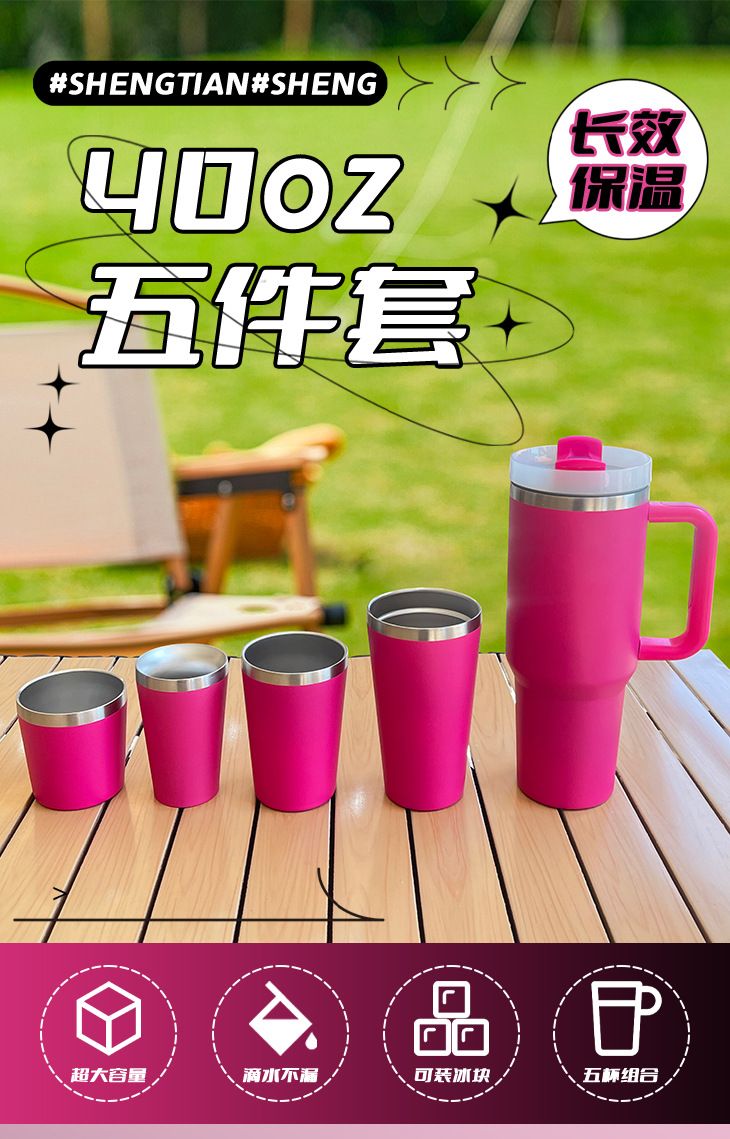 跨境新款40oz汽车杯五件套不锈钢保温保冷杯车载便携吸管冰霸杯