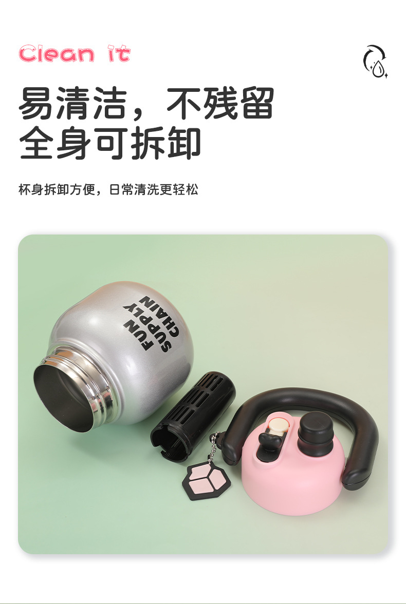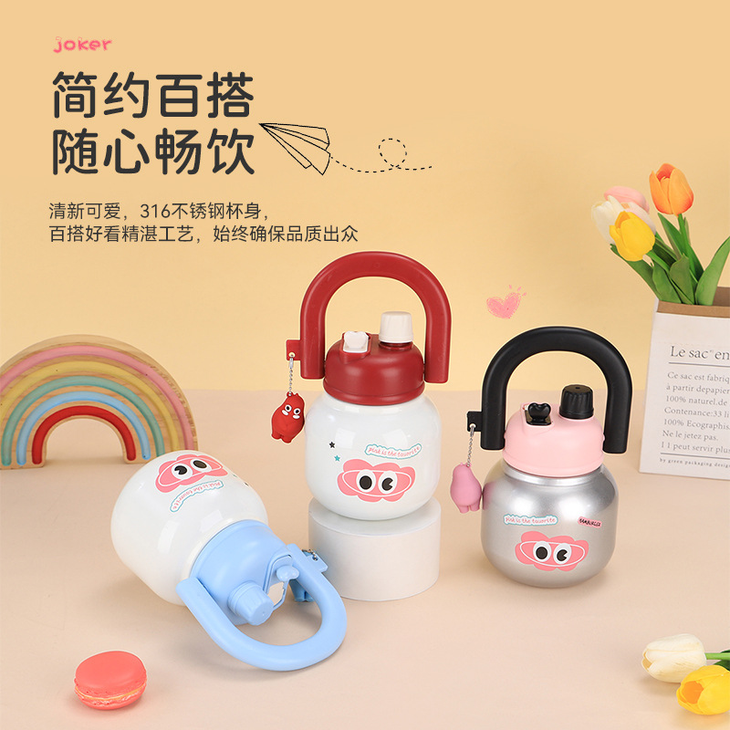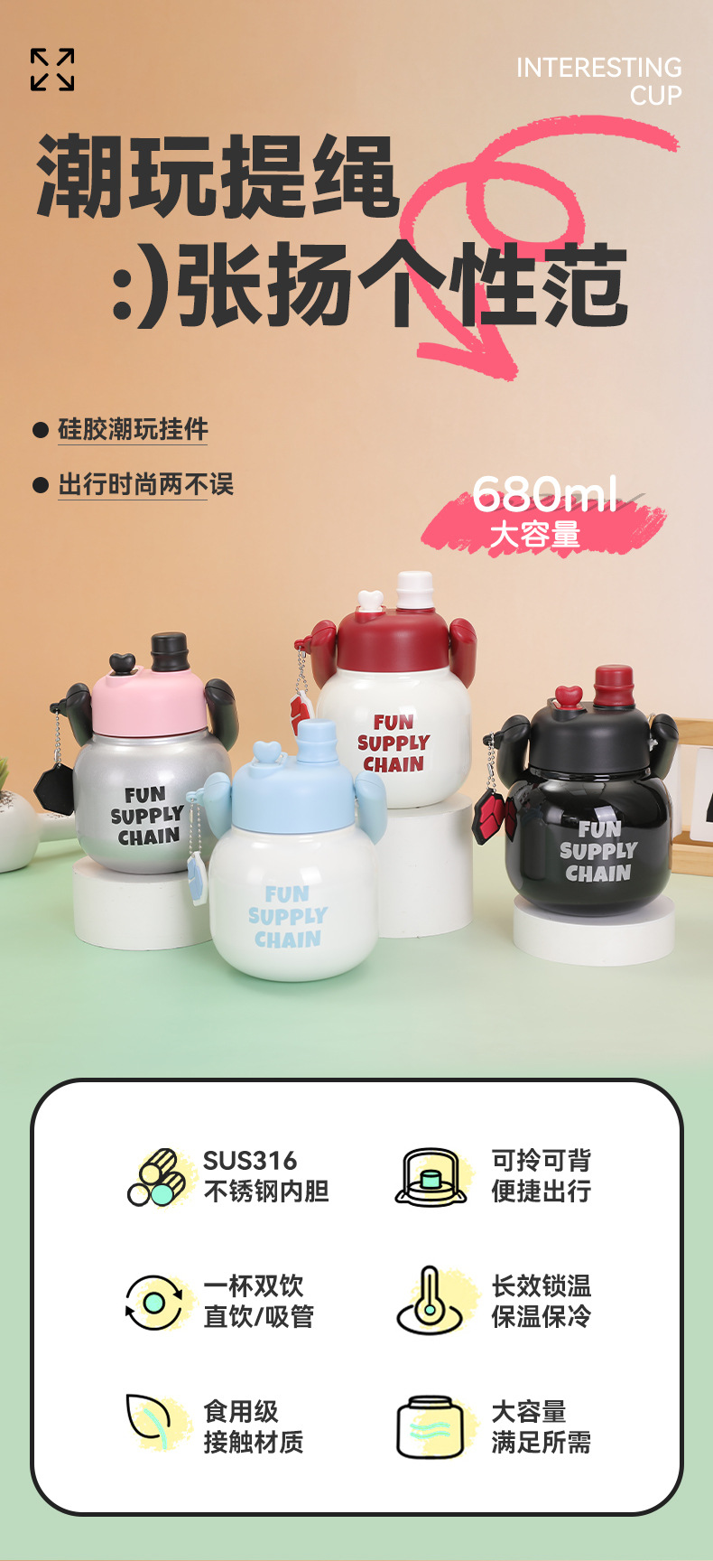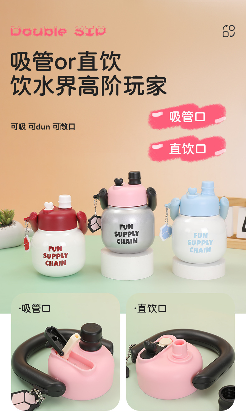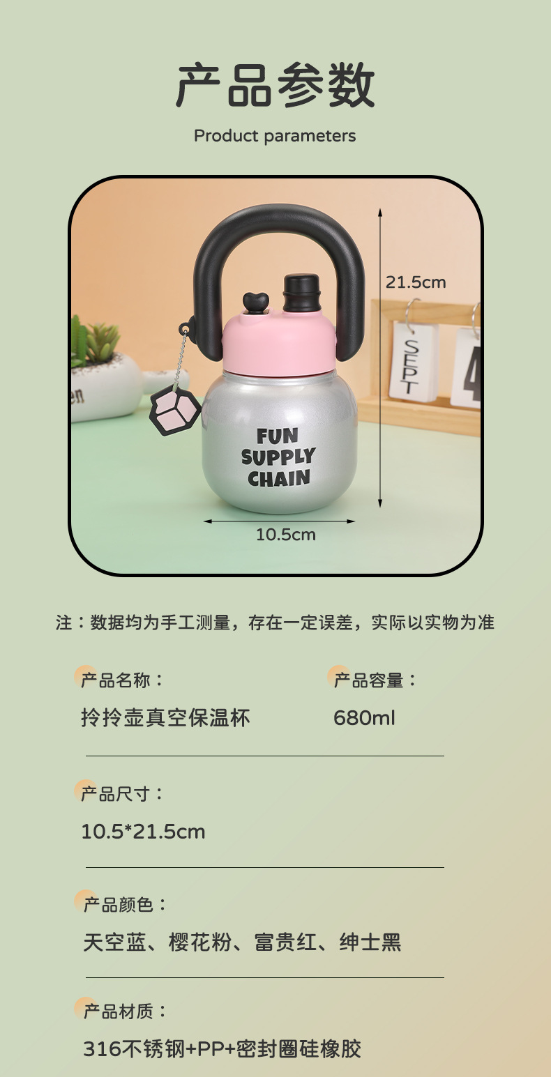 网红316不锈钢双饮拎拎壶高颜值手提吸管杯大容量带茶仓保温杯