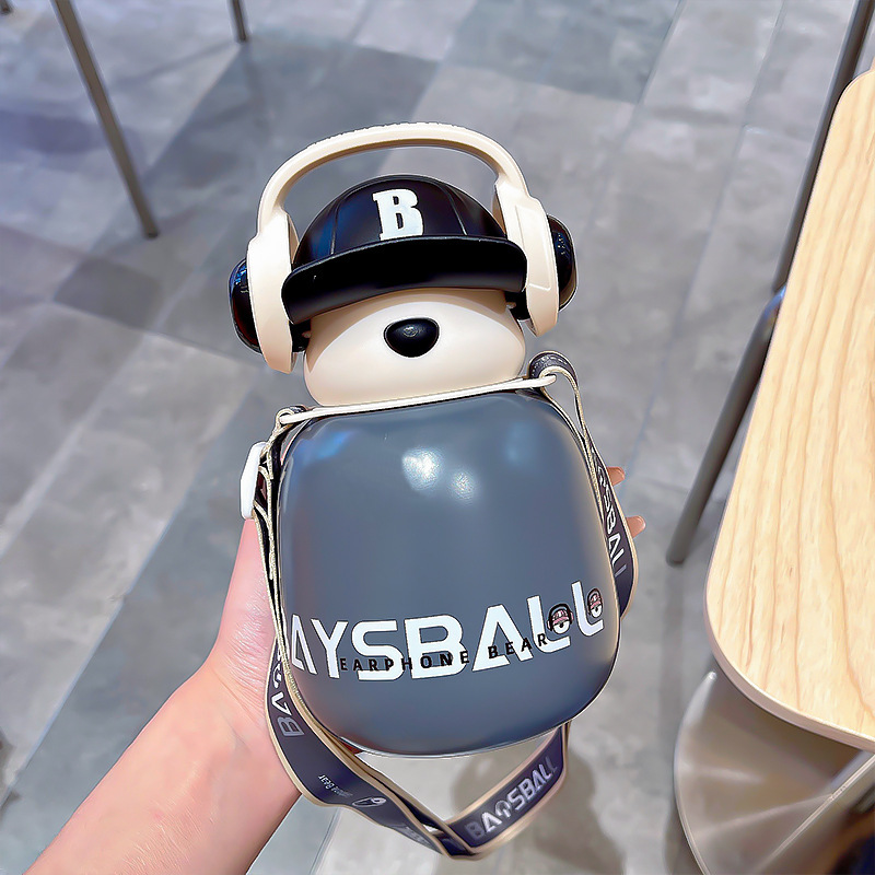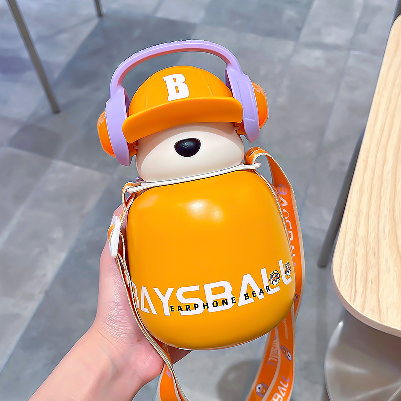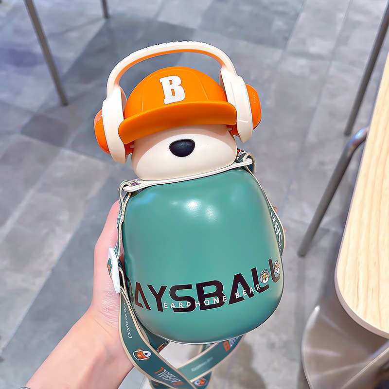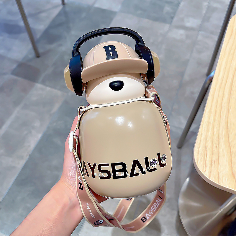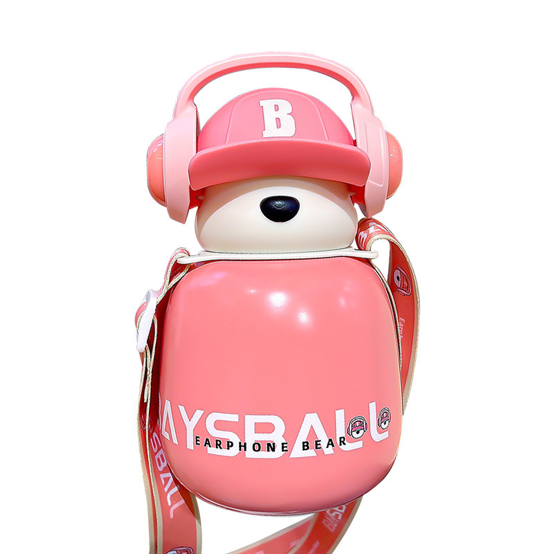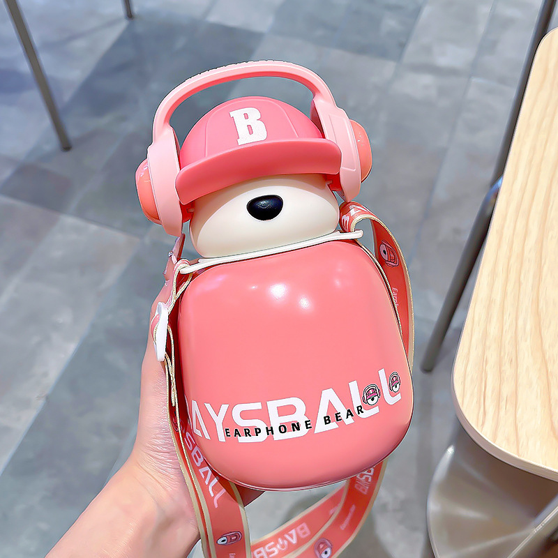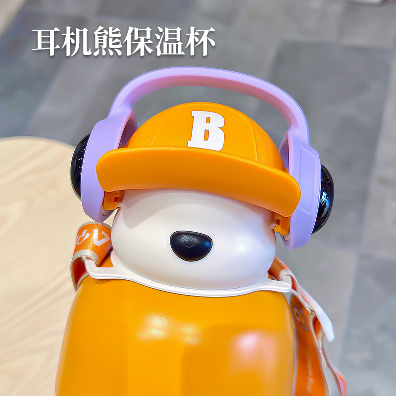 女生高颜值大肚杯儿童保温杯耳机熊保温杯可爱创意吸管杯小巧便携