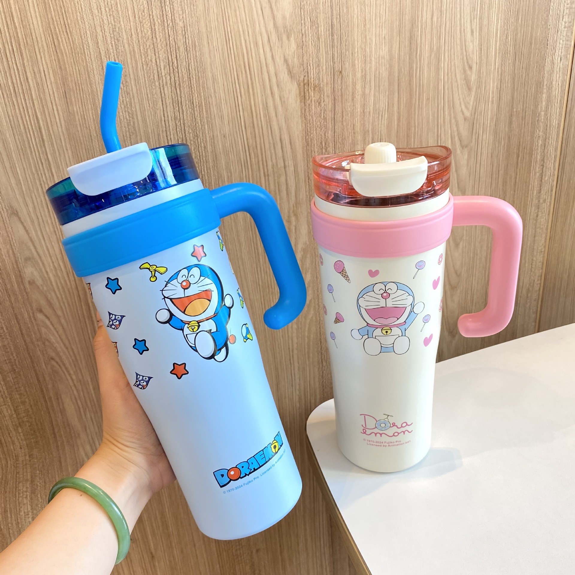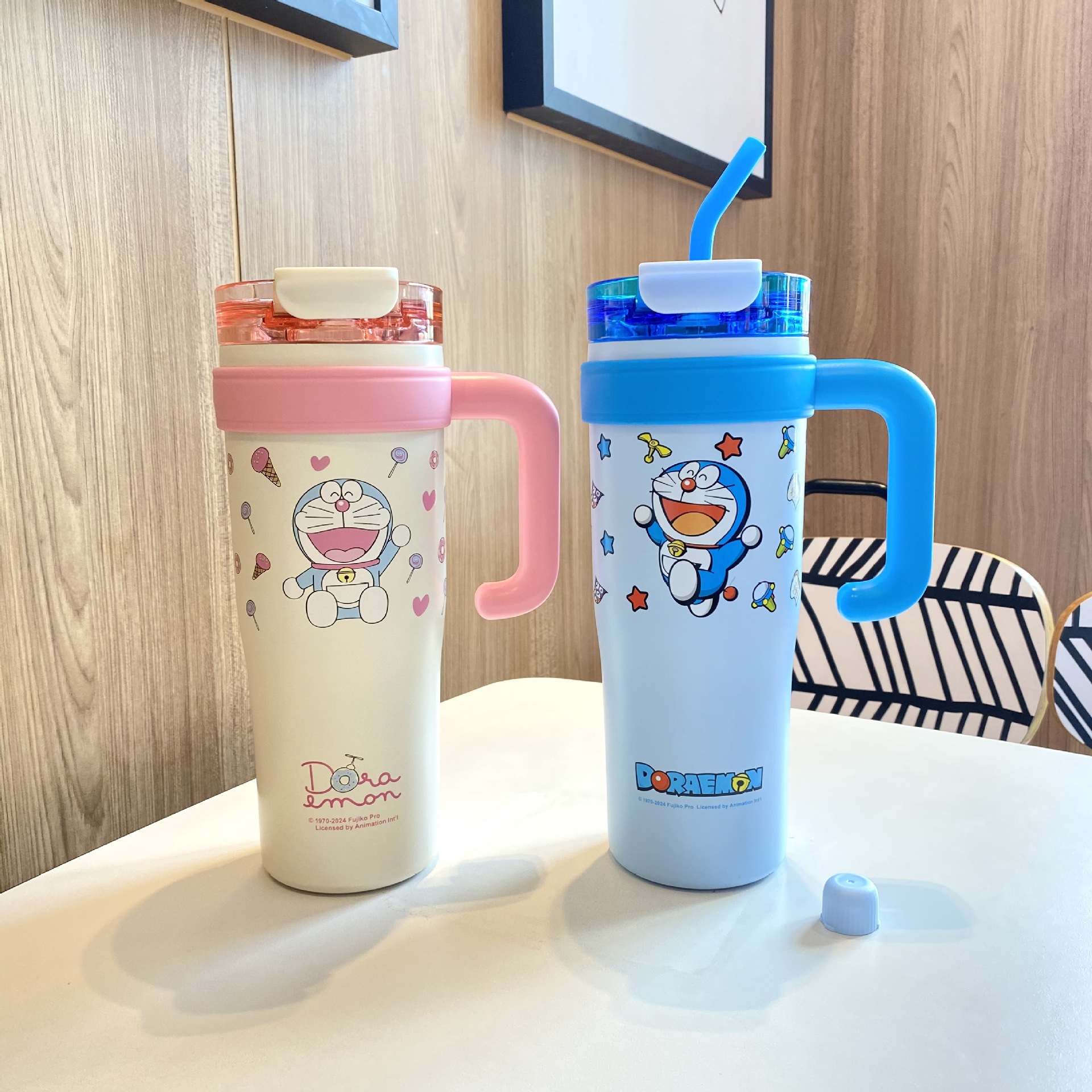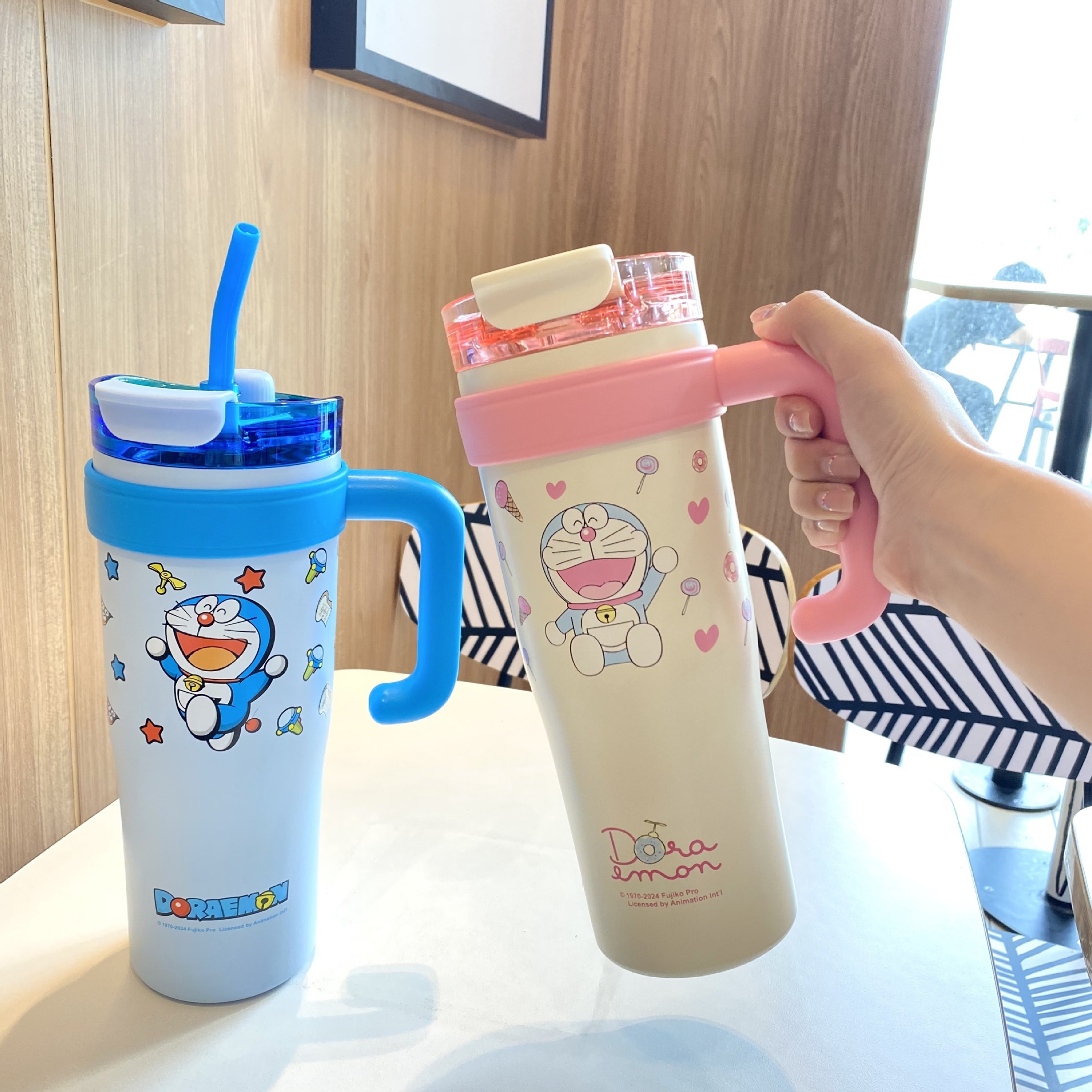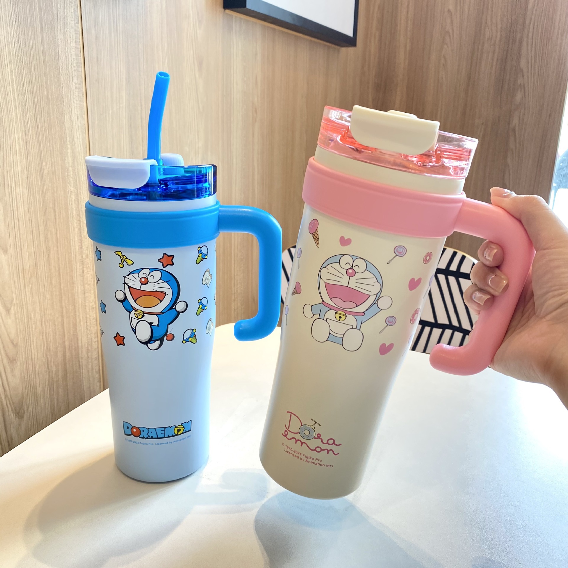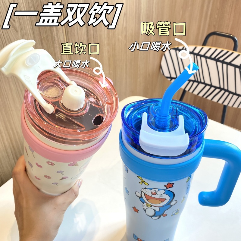 跨境爆款巨无霸保温杯大容量草莓熊叮当吸管杯女生水杯保冷冰霸杯